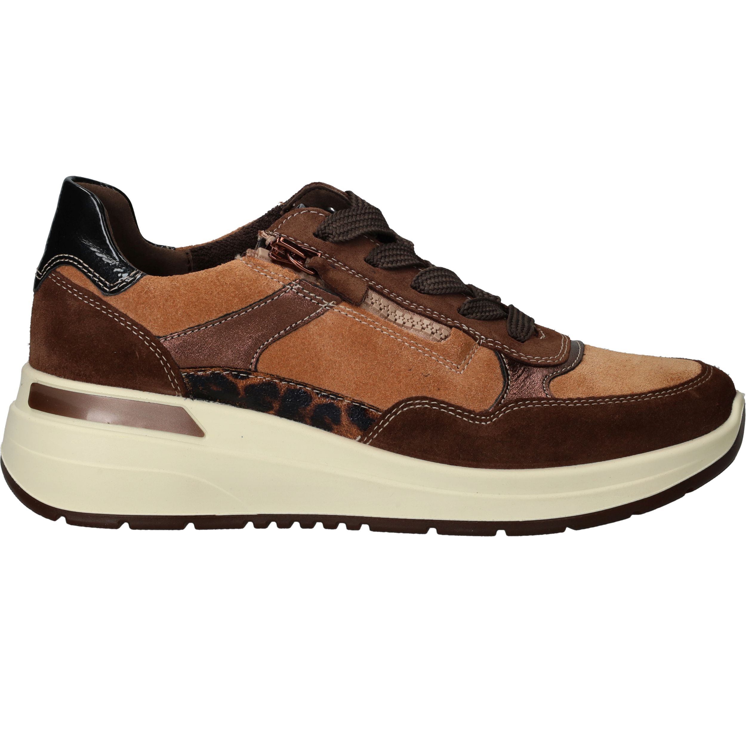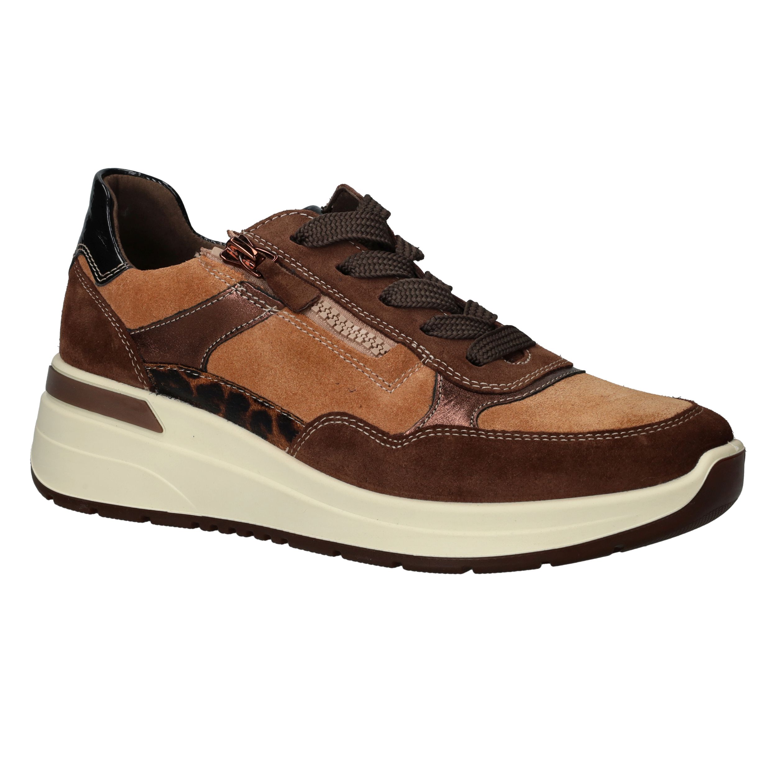 Deze Ara Garda sneaker voor dames is de perfecte mix van stijl en comfort. De warme bruin- en beigetinten geven deze sneaker een trendy uitstraling, terwijl het subtiele panteraccent een speels detail toevoegt. Dankzij de lichte zool en comfortabele pasvorm is deze schoen ideaal voor elke dag. Zoals je van Ara mag verwachten, zit hij heerlijk en is hij makkelijk aan te trekken met de handige ritssluiting.