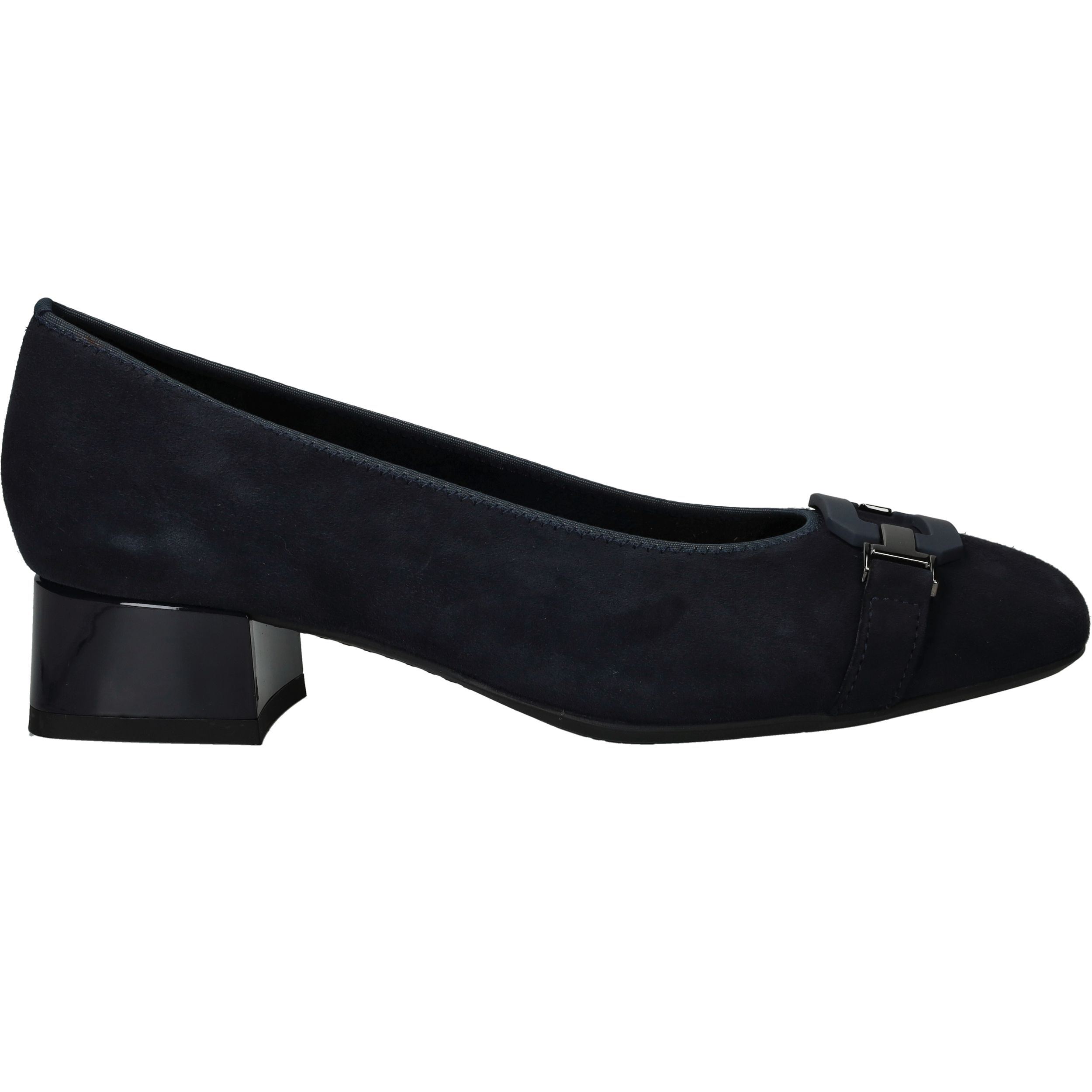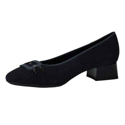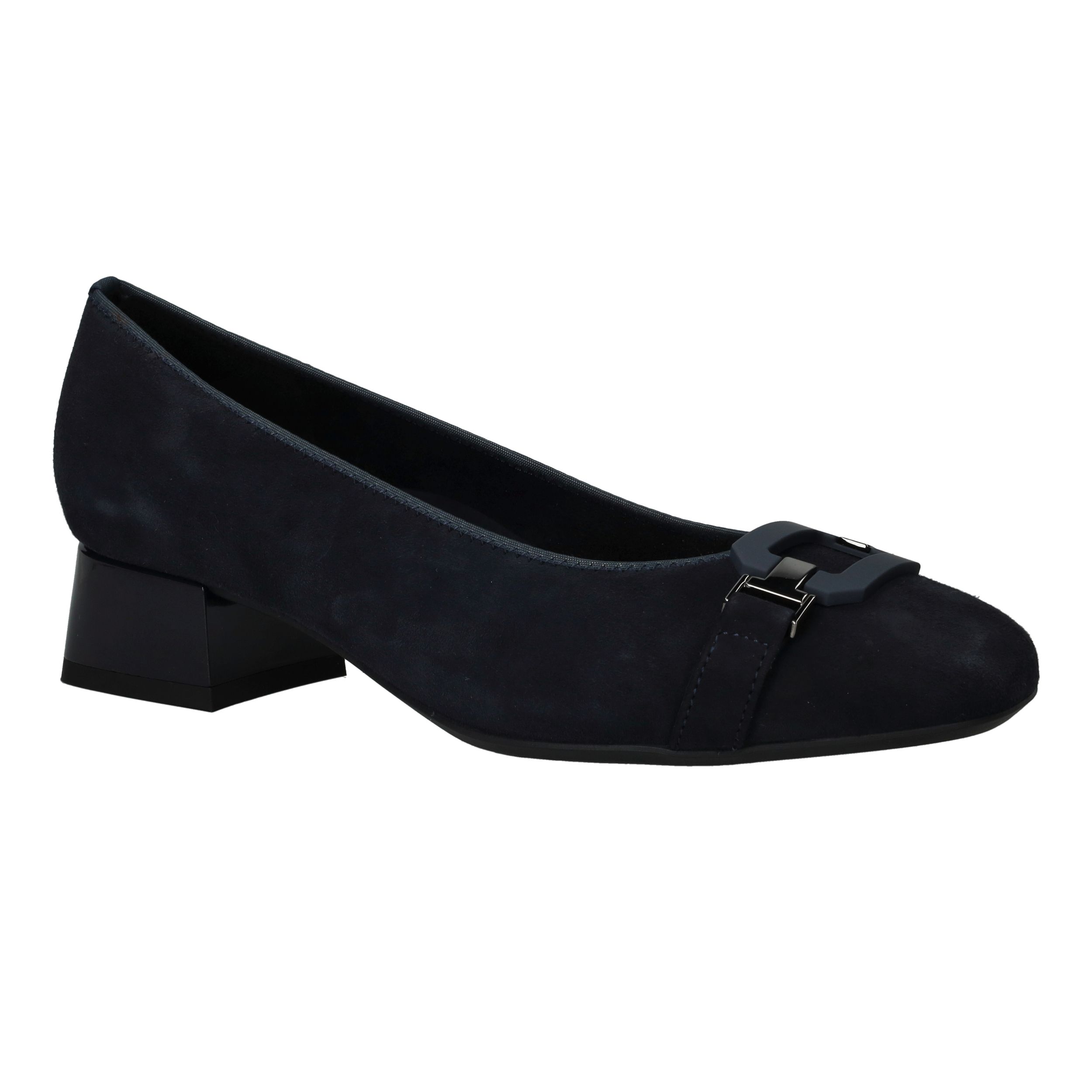 Elegant, comfortabel en veelzijdig: deze donkerblauwe Ara Graz 2.0 pumps voor dames passen perfect bij een nette werkoutfit of een chique gelegenheid. De buitenkant is gemaakt van soepel suède, met een zachte voering van kunstleer. De blokhak biedt net dat beetje extra hoogte zonder in te leveren op comfort.