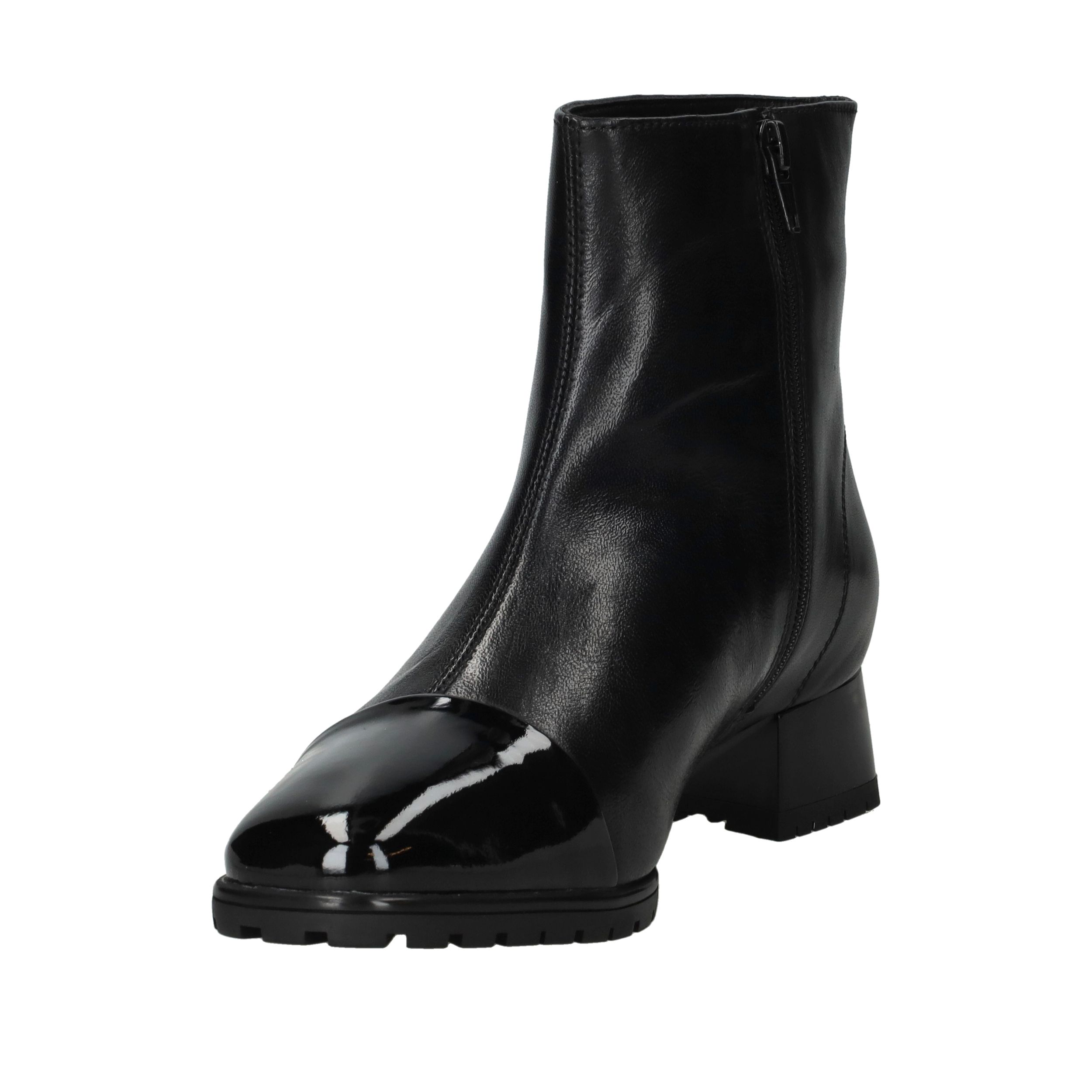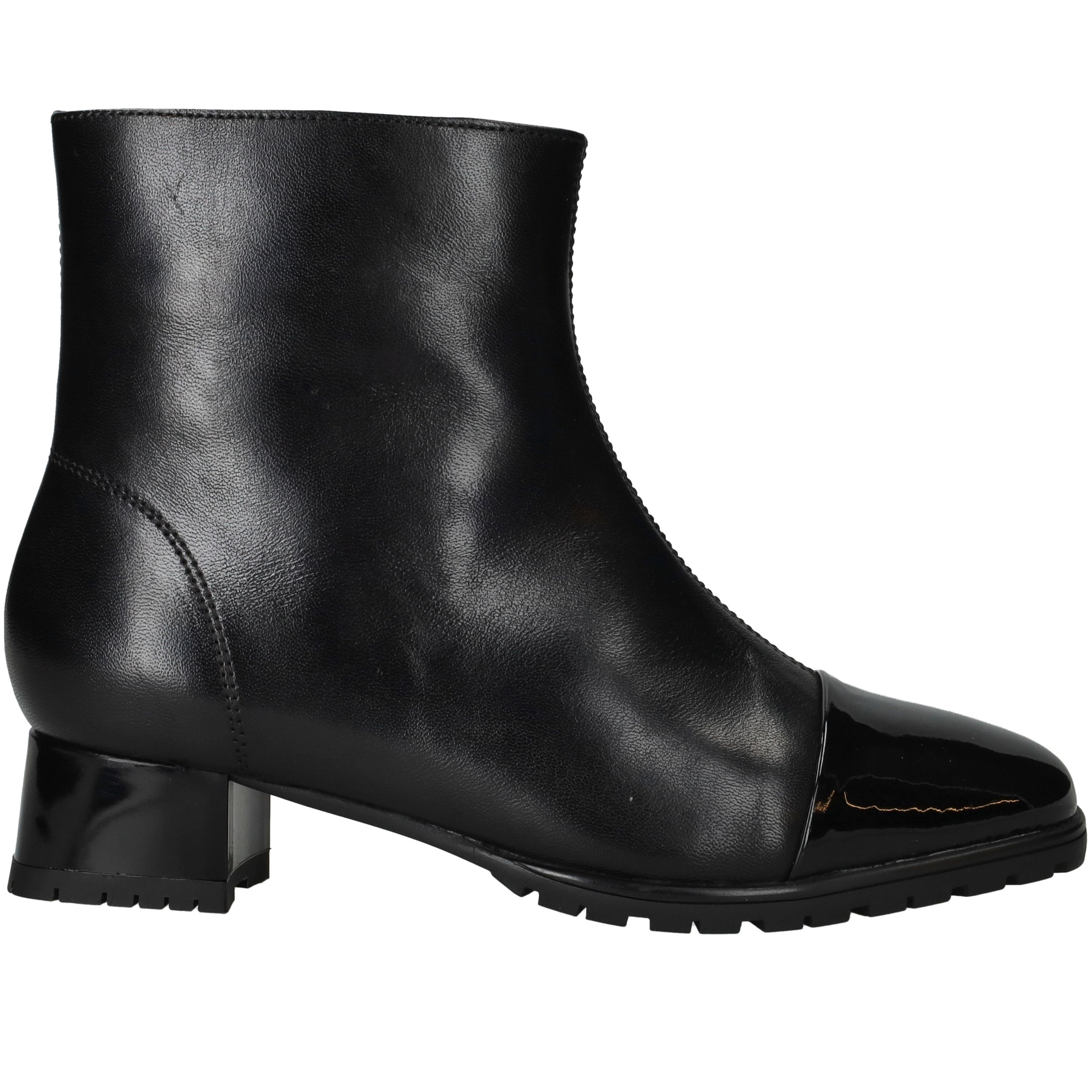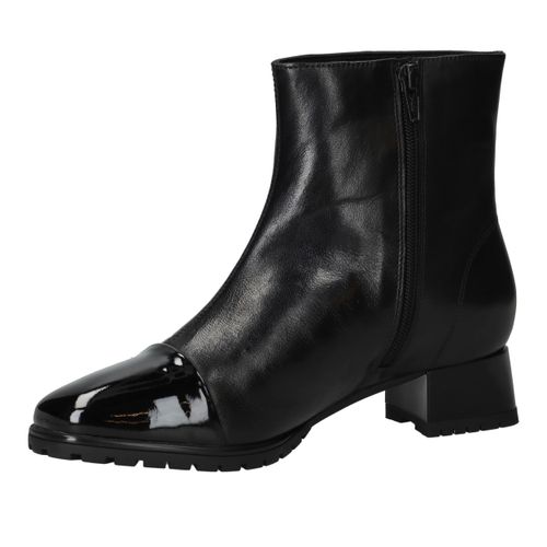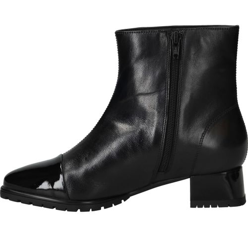 Deze elegante Ara Graz enkellaarsjes in zwart leer met lakdetail zijn een chique en comfortabele keuze. Dankzij de voetbreedte H bieden ze extra ruimte en draagcomfort, ideaal voor bredere voeten. Het gladde leer en de subtiele lakafwerking zorgen voor een stijlvolle uitstraling. Perfect voor dames die luxe en comfort willen combineren.