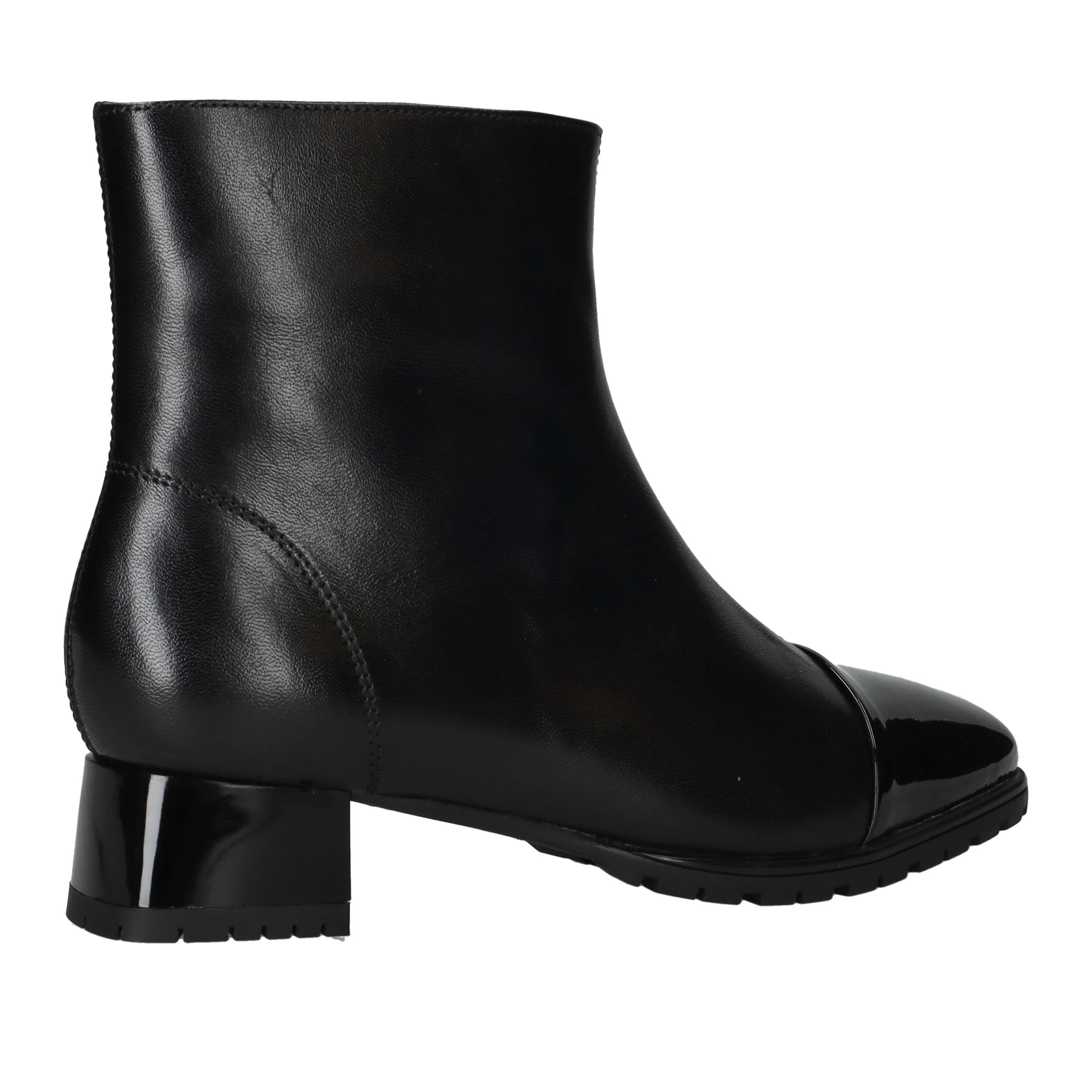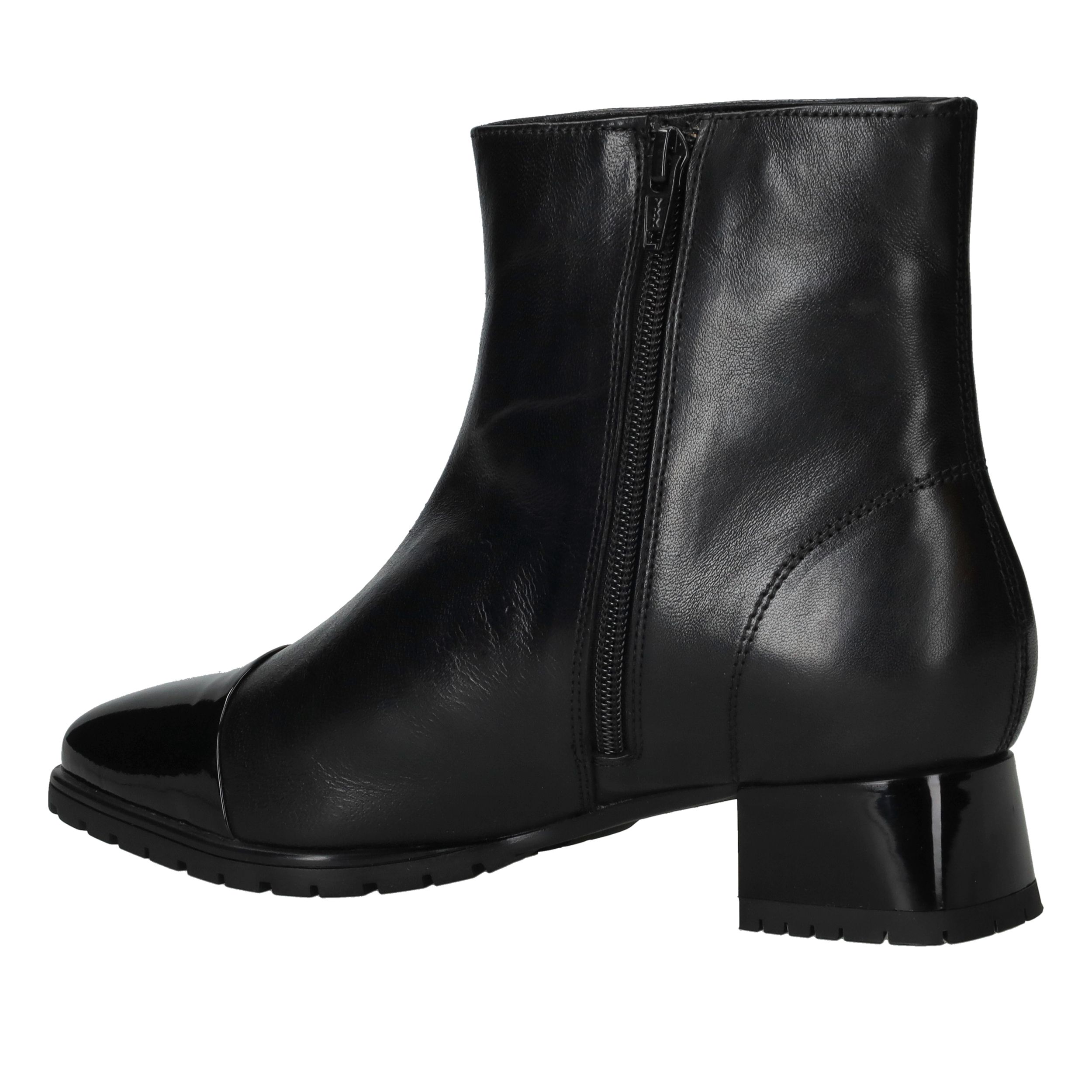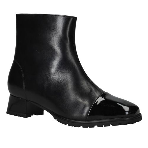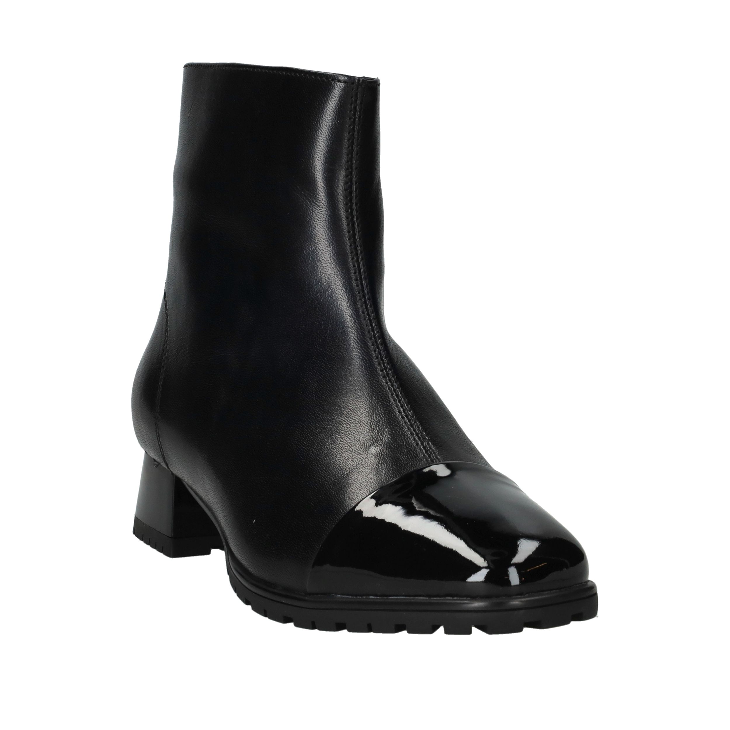 Deze elegante Ara Graz enkellaarsjes in zwart leer met lakdetail zijn een chique en comfortabele keuze. Dankzij de voetbreedte H bieden ze extra ruimte en draagcomfort, ideaal voor bredere voeten. Het gladde leer en de subtiele lakafwerking zorgen voor een stijlvolle uitstraling. Perfect voor dames die luxe en comfort willen combineren.