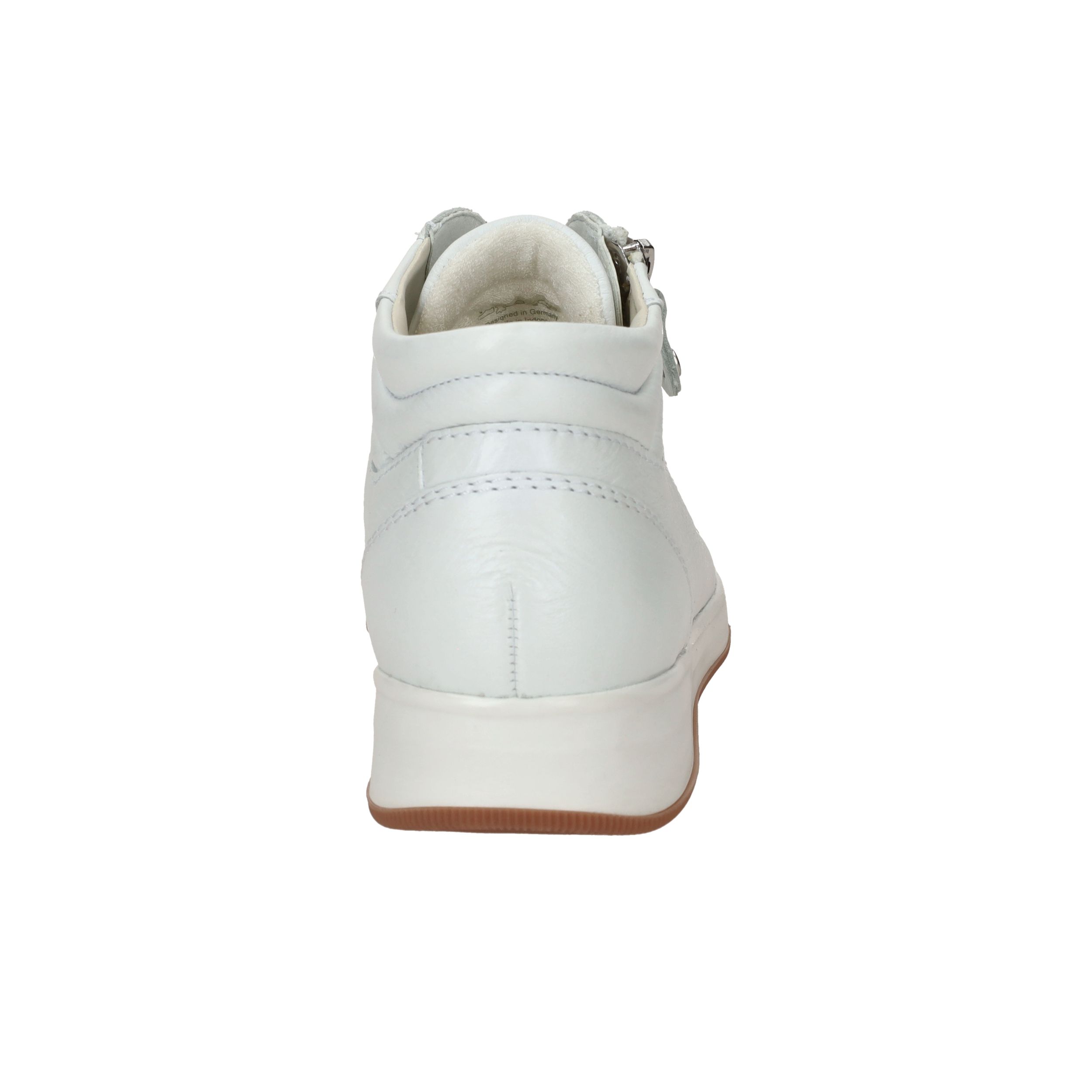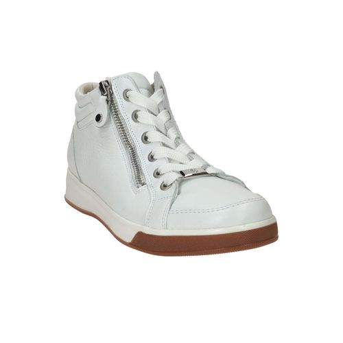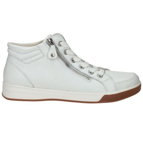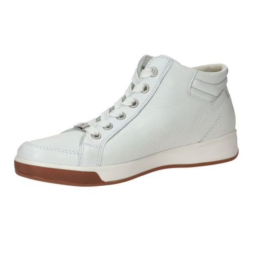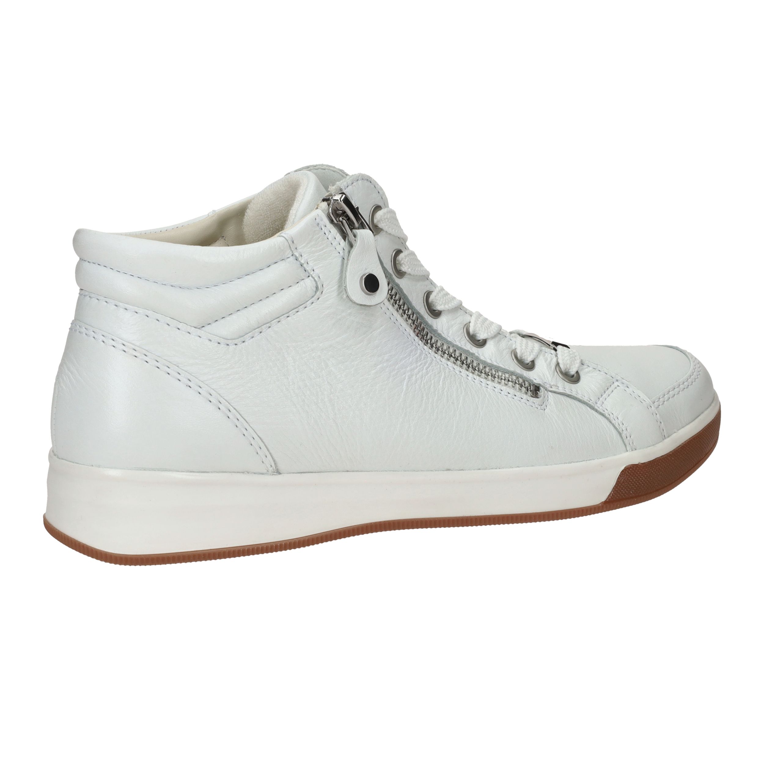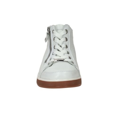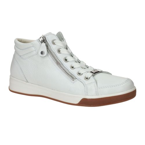 Fijne halfhoge Ara ROM-ST-HIGH-SOFT sneaker. De witte sneaker is gemaakt van leer en heeft een zachte bamboo voering. Door de veter- en ritssluiting stap je makkelijk in de schoen.