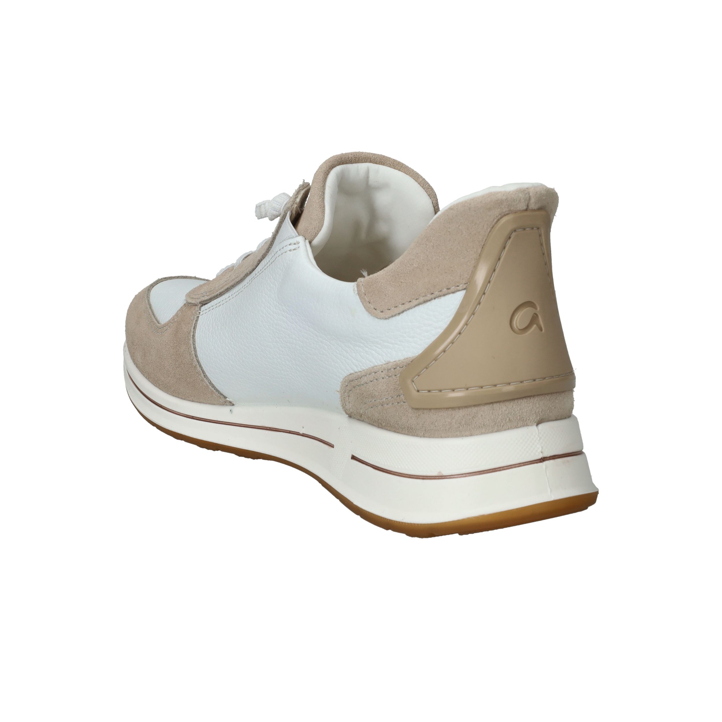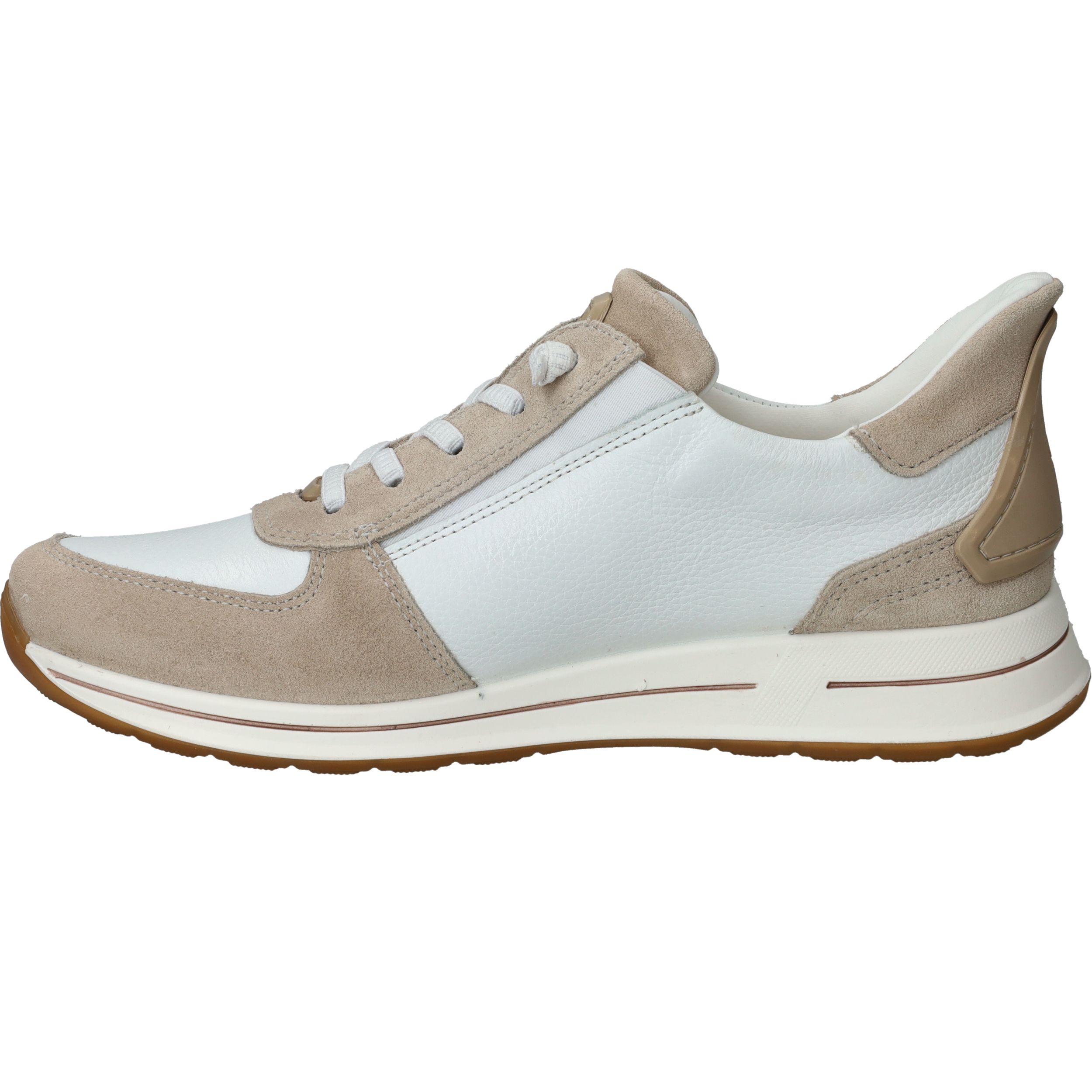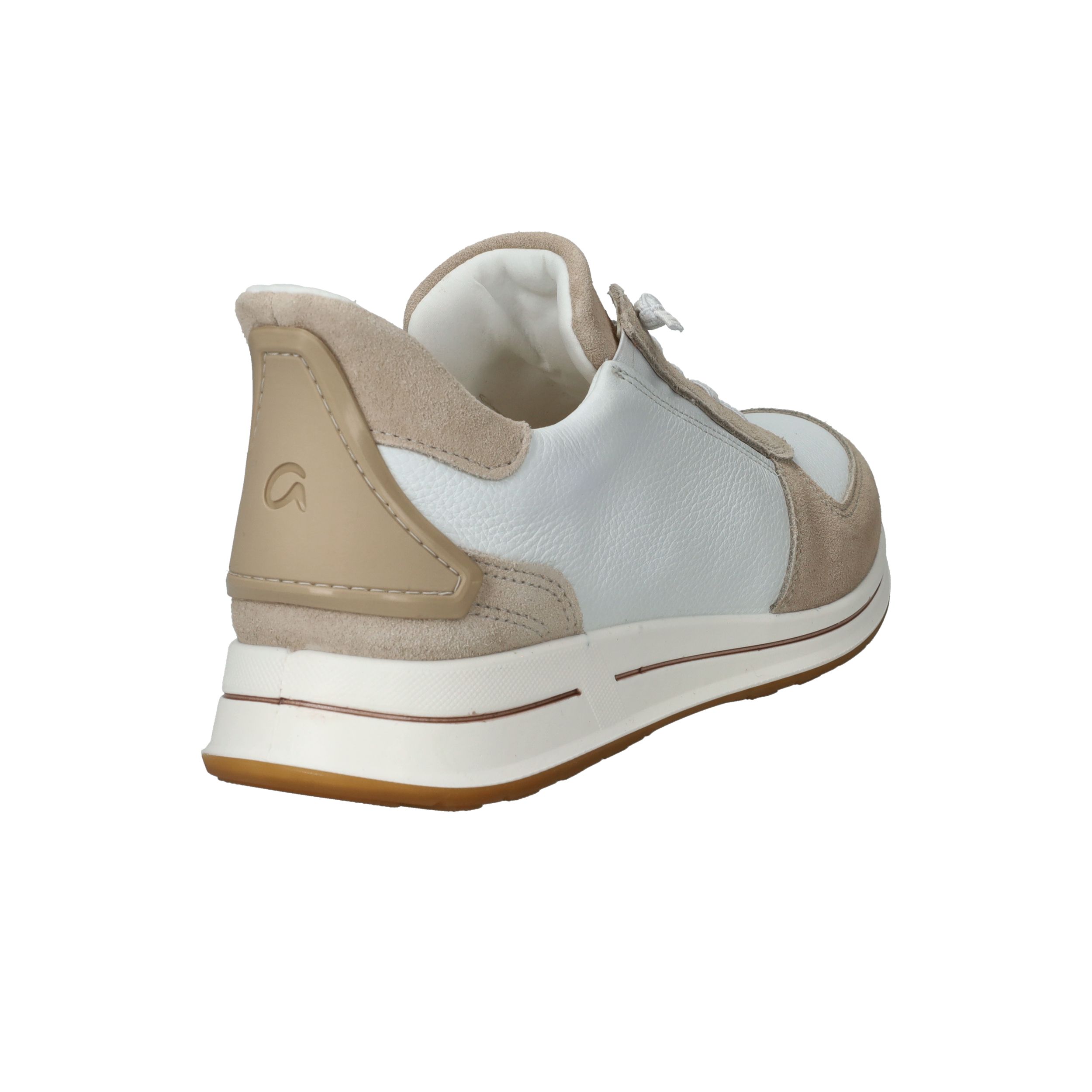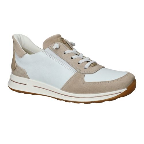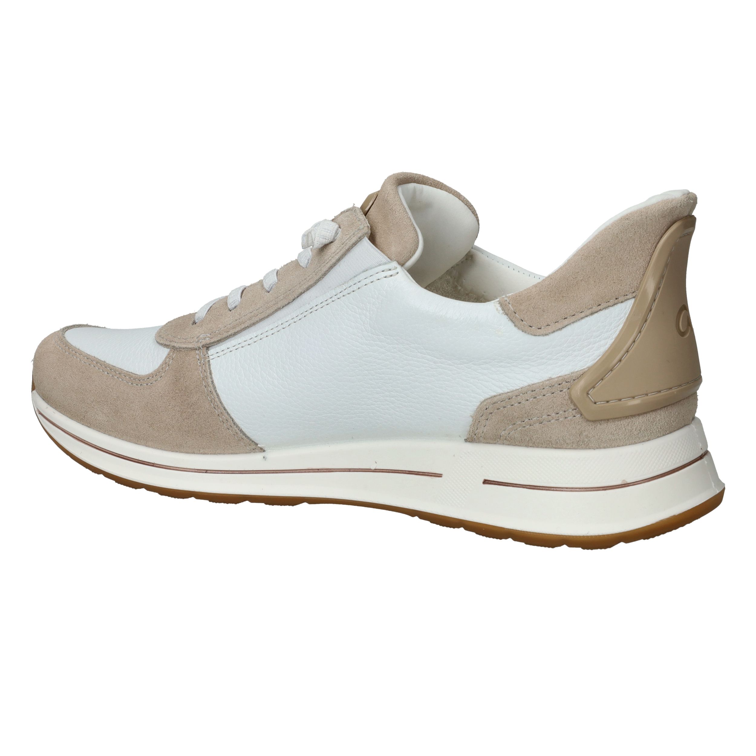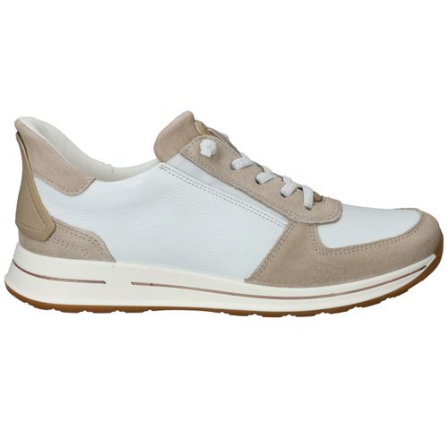 Stap makkelijk in deze comfortabele Ara Osaka 2.0 sneaker door de sluiting van elastiek. Nooit meer bukken met deze Ara Easy2Go instappers. De witte schoen met beige details is gemaakt van leer en heeft een zachte bamboo voering.