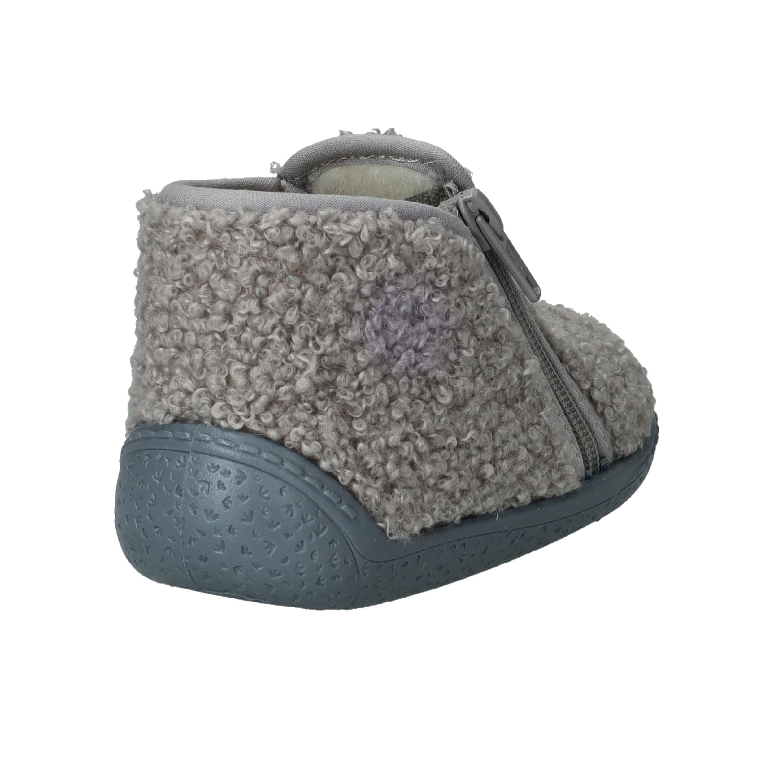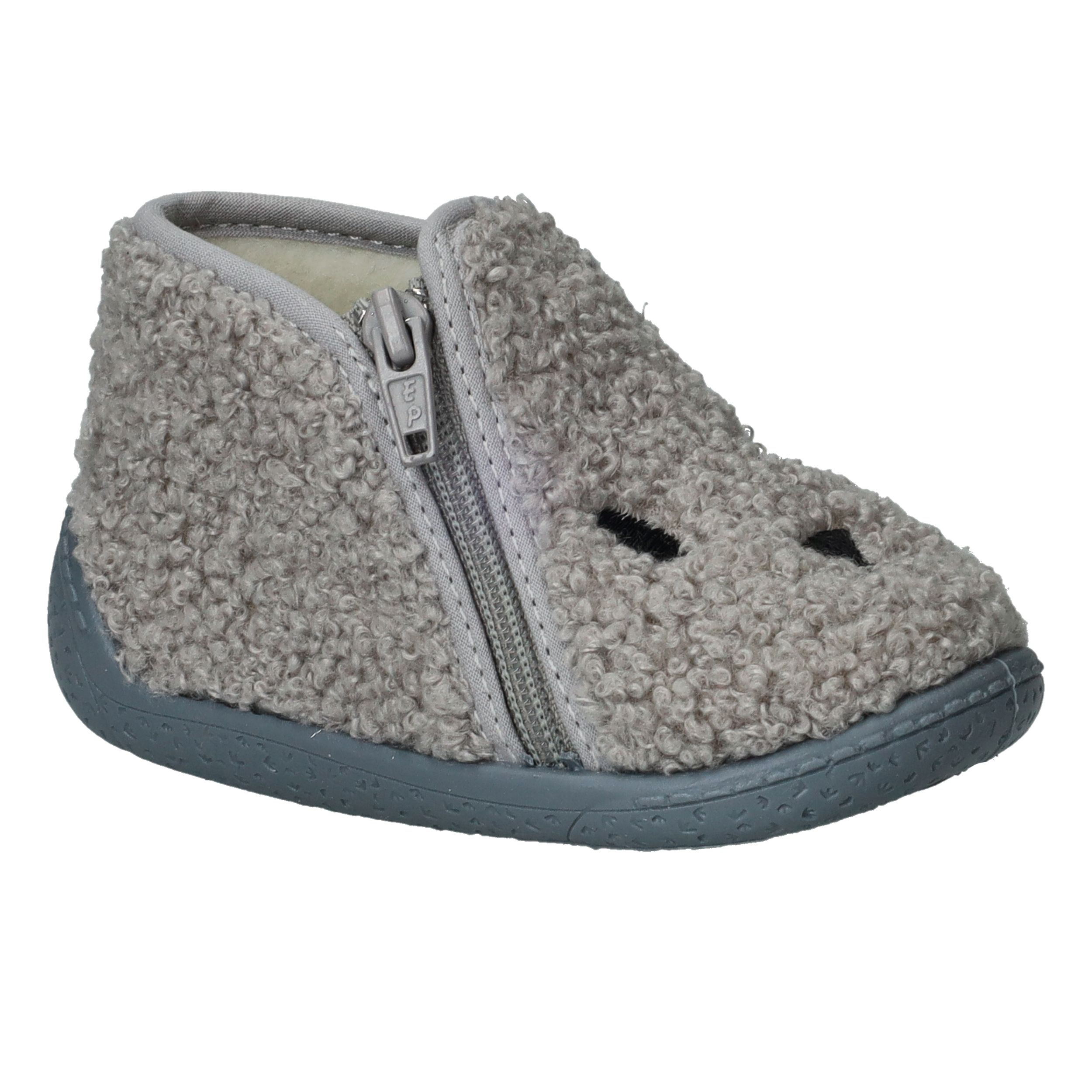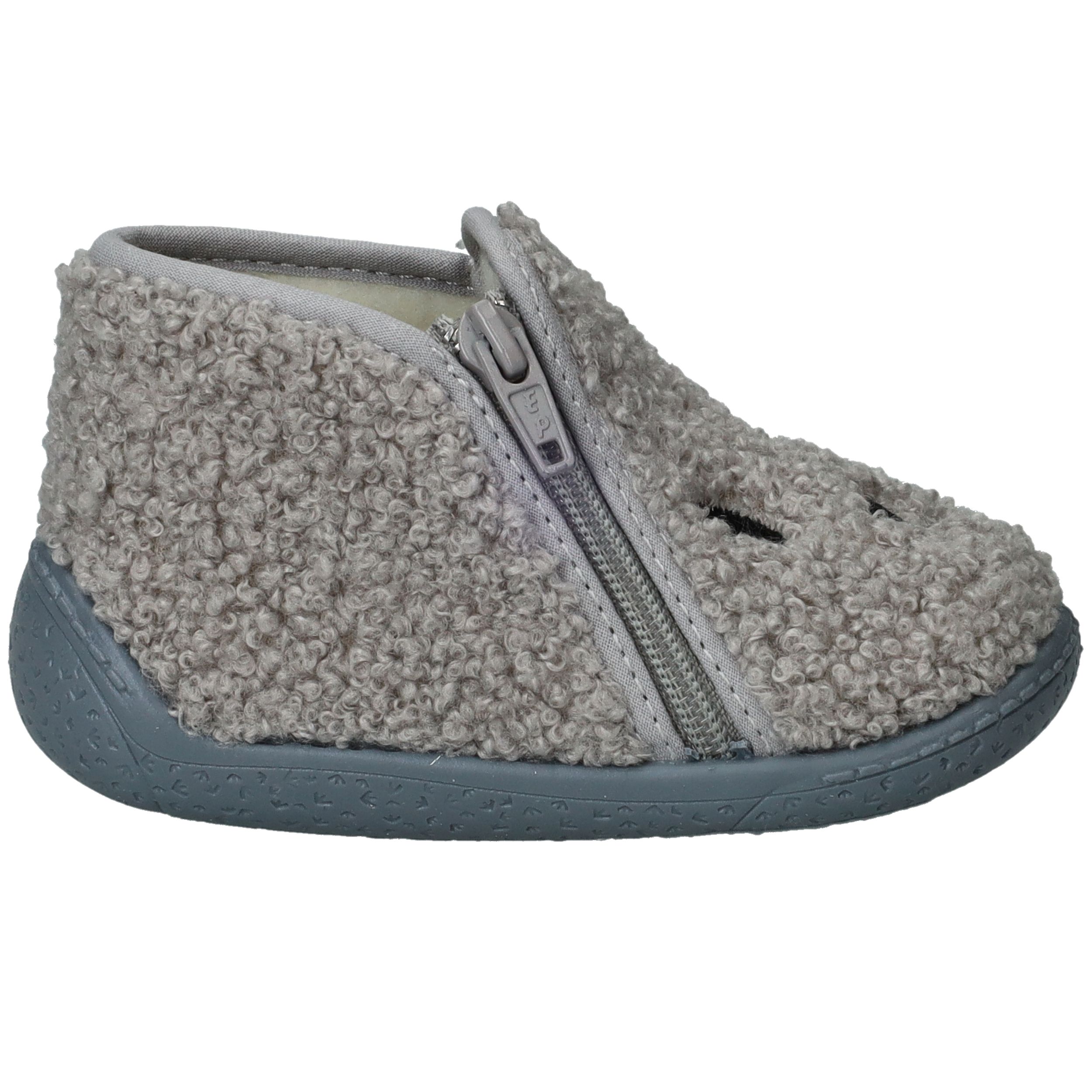 Deze grijze Belizia pantoffels zijn heerlijk warm en zacht – perfect voor jongens én meisjes die graag met comfortabele voetjes binnenshuis spelen. Het zachte textiel voelt knuffelig aan en biedt fijne warmte, zelfs op koude vloeren. Dankzij de praktische rits aan de zijkant trek je ze makkelijk aan en uit, ideaal voor kleintjes (en ouders) die van gemak houden. De flexibele zool zorgt voor grip en bewegingsvrijheid in huis.