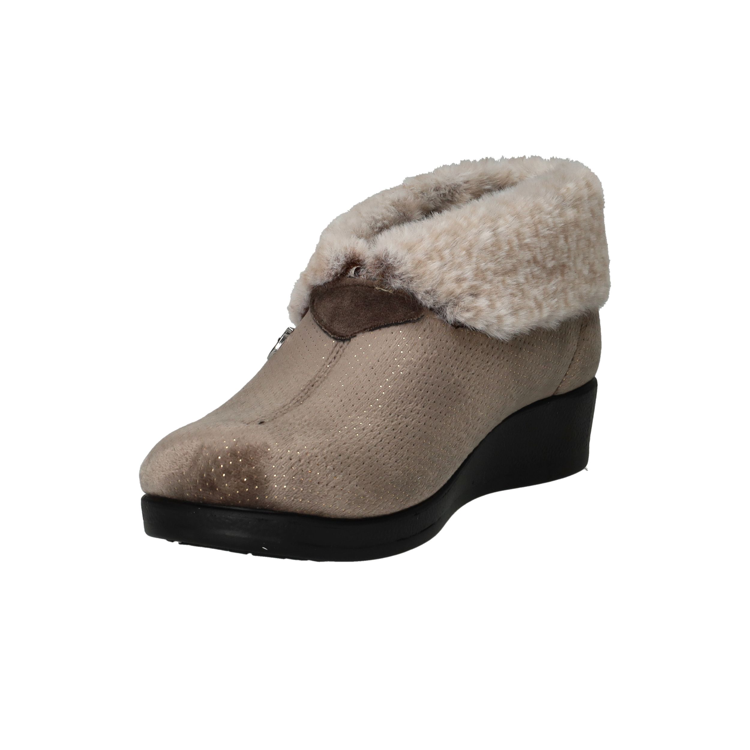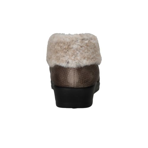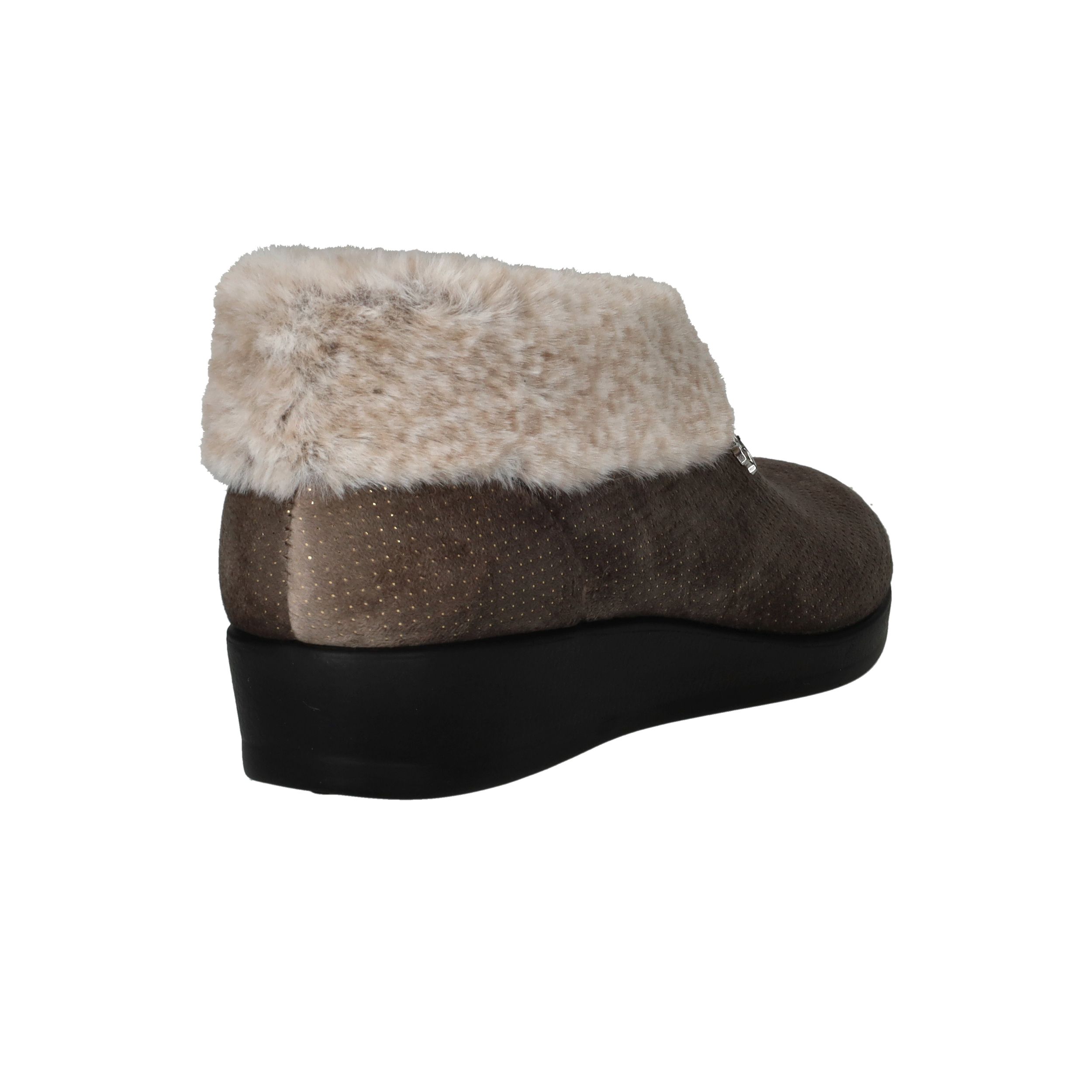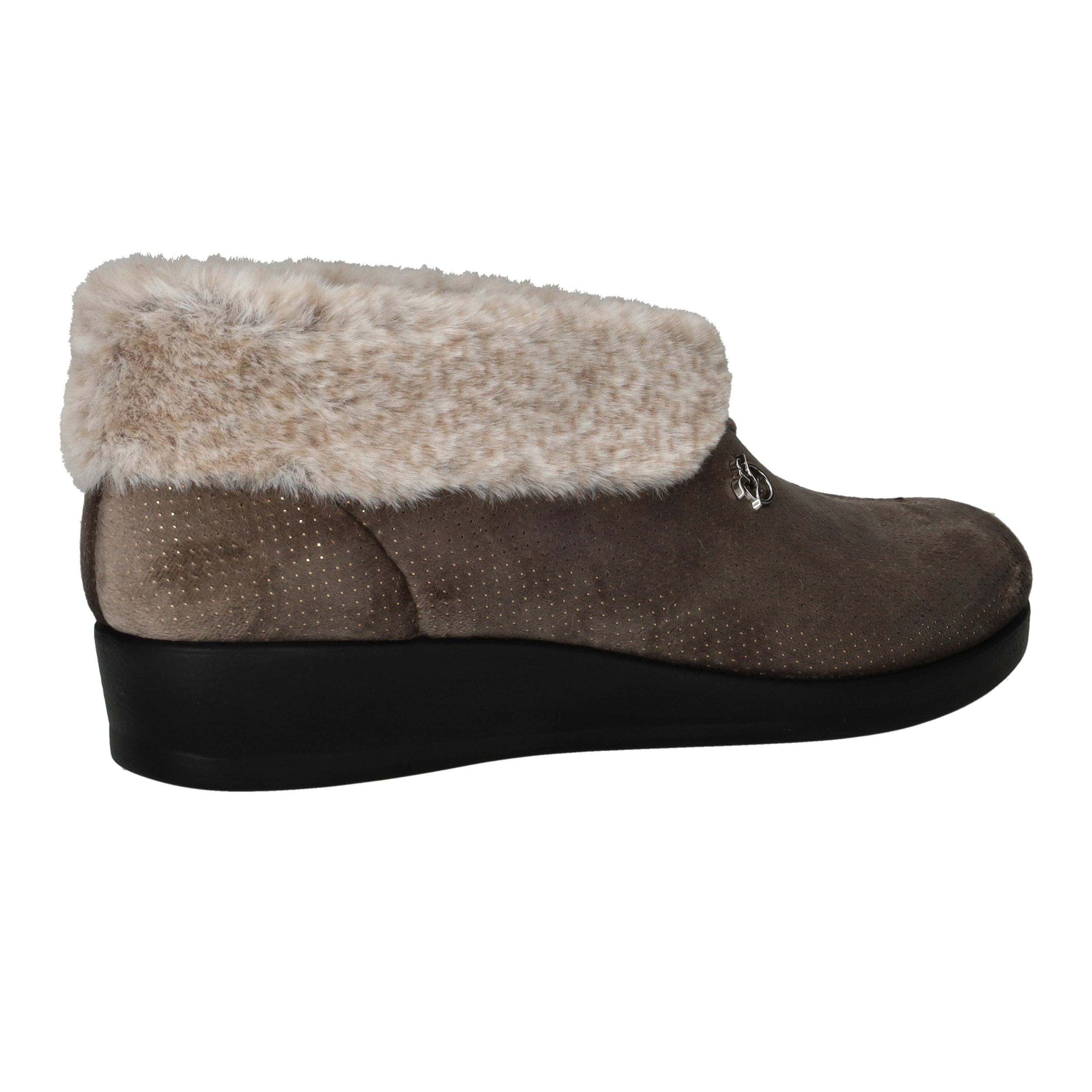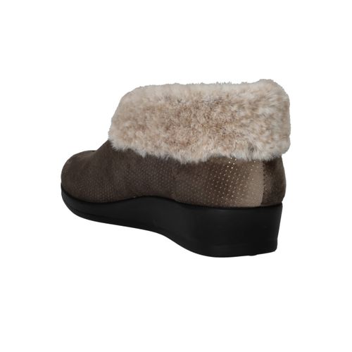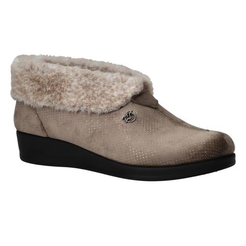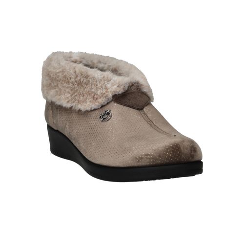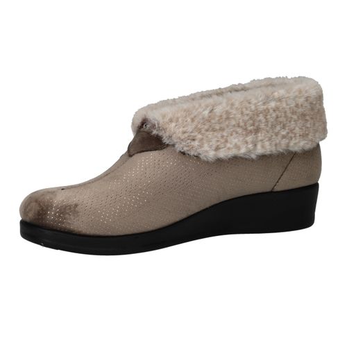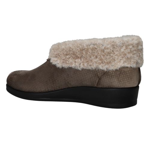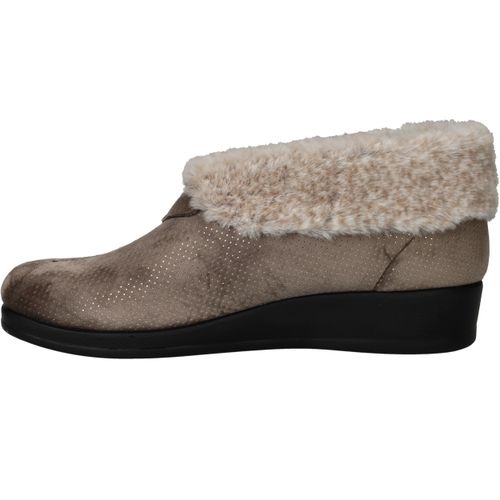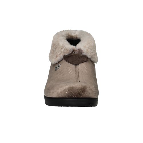 Deze Belizia pantoffel voor dames biedt het perfecte evenwicht tussen comfort en elegantie. De zachte textielen buitenkant voelt prettig aan en heeft een subtiele glans, terwijl de gevoerde binnenzijde van zacht textiel zorgt voor heerlijke warmte op koude dagen. De pantoffel is voorzien van een zachte, opstaande kraag van imitatiebont die extra knusheid toevoegt. Dankzij de lichtgewicht zool met lichte verhoging geniet je van goede steun en loopcomfort in huis.