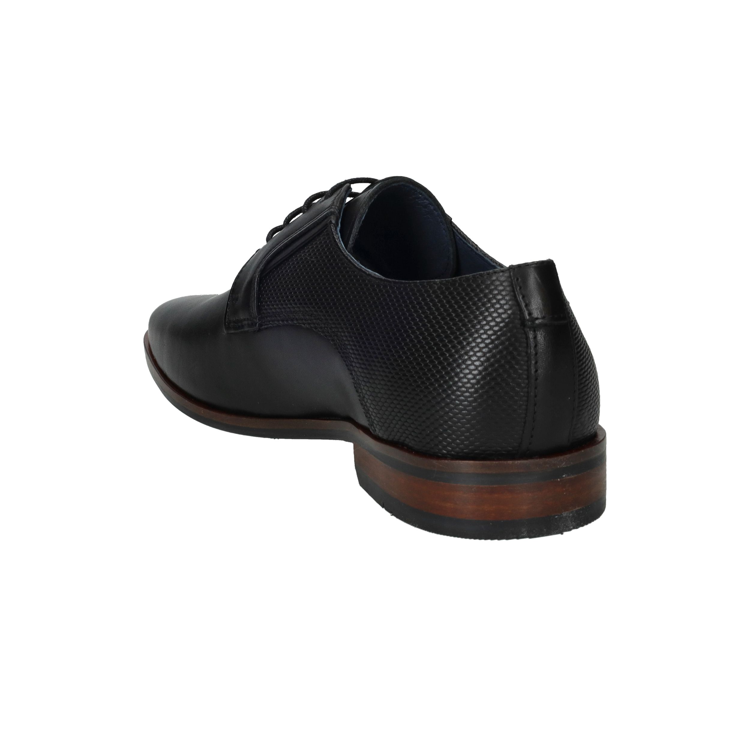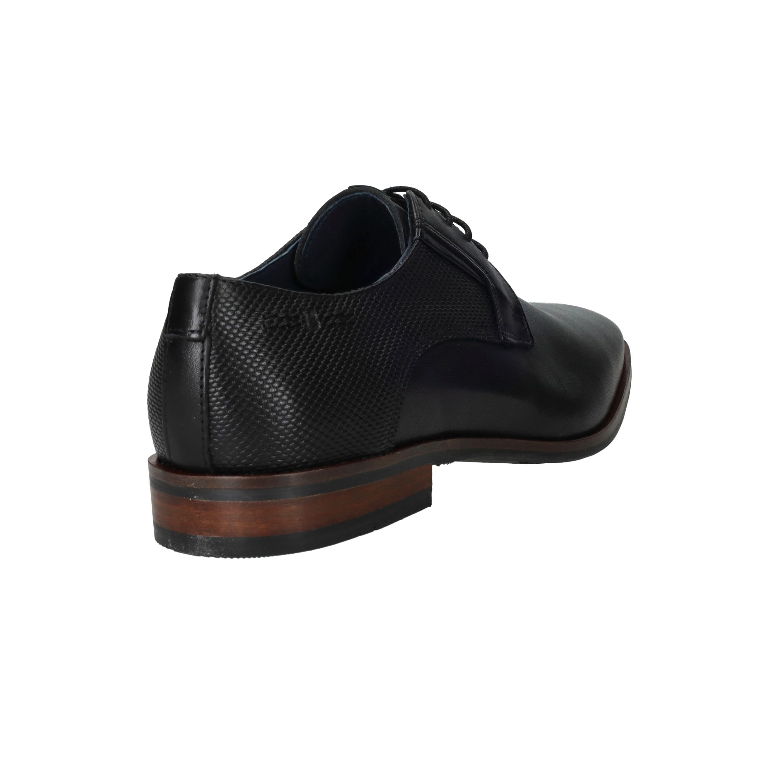 Deze zwarte Berkelmans veterschoen voor heren is uitgevoerd in hoogwaardig leer en heeft een luxe uitstraling. De schoen is voorzien van een uitneembaar voetbed, waardoor hij geschikt is voor eigen inlegzolen en extra draagcomfort biedt. De subtiele structuurdetails geven het model een moderne en verfijnde look.