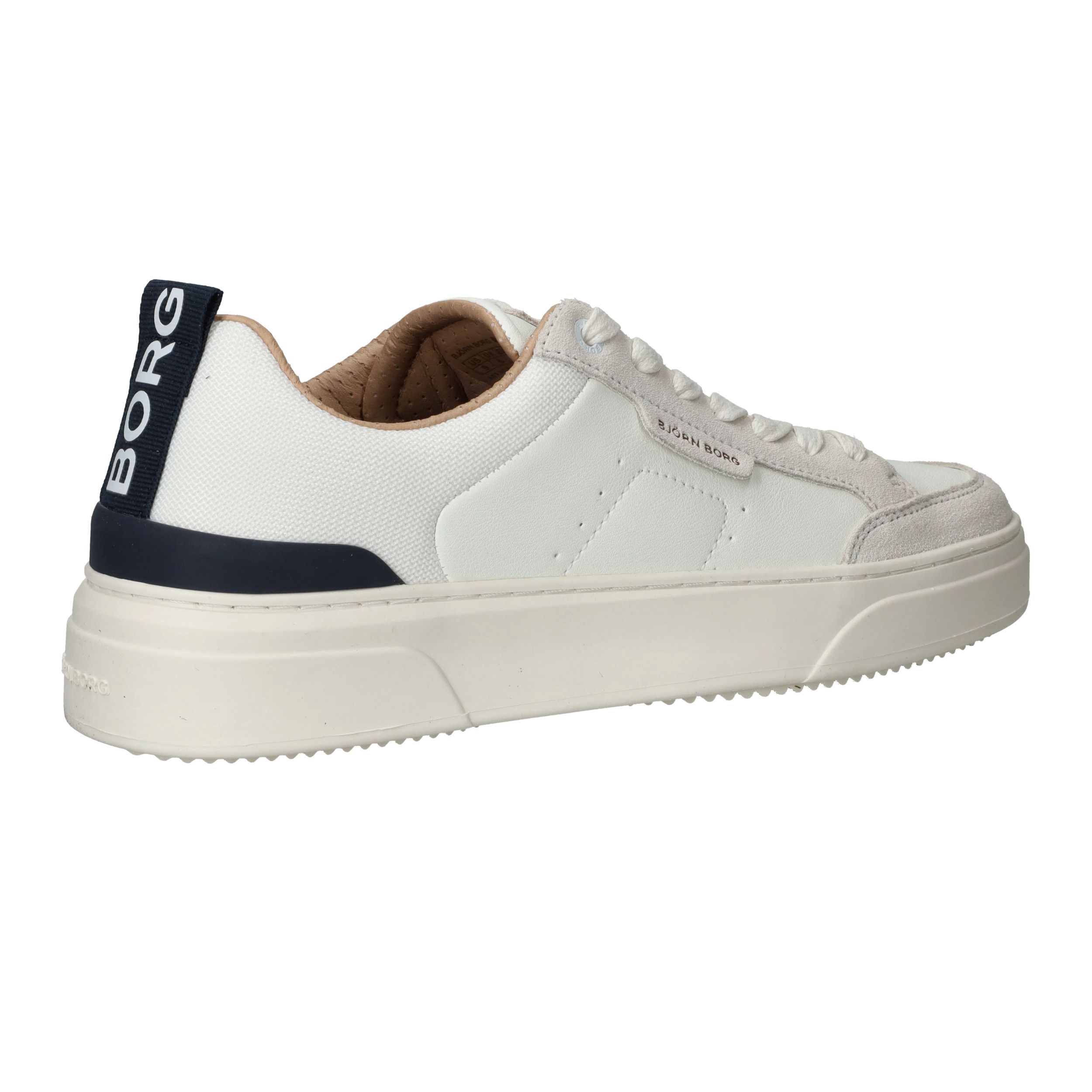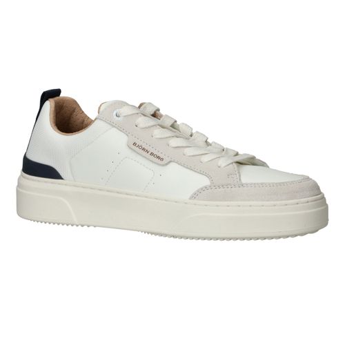 Deze witte Bjorn Borg T1930 sneaker mag niet ontbreken in je schoenencollectie! De herensneaker heeft blauw accenten en een hippe zool.