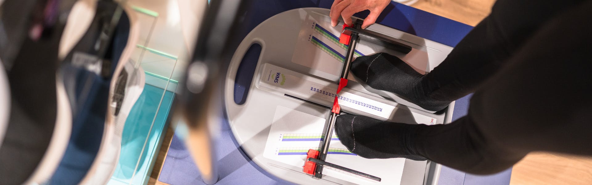 Meet voor de laatste stap de afstand tussen de twee streepjes en kies de afmetingen van het grootste voetje. Bekijk daarna onderstaande tabel en ga voor de maat die overeen komt met het aantal gemeten centimeters van het grootste voetje. Dit is de maat die je nodig hebt!
