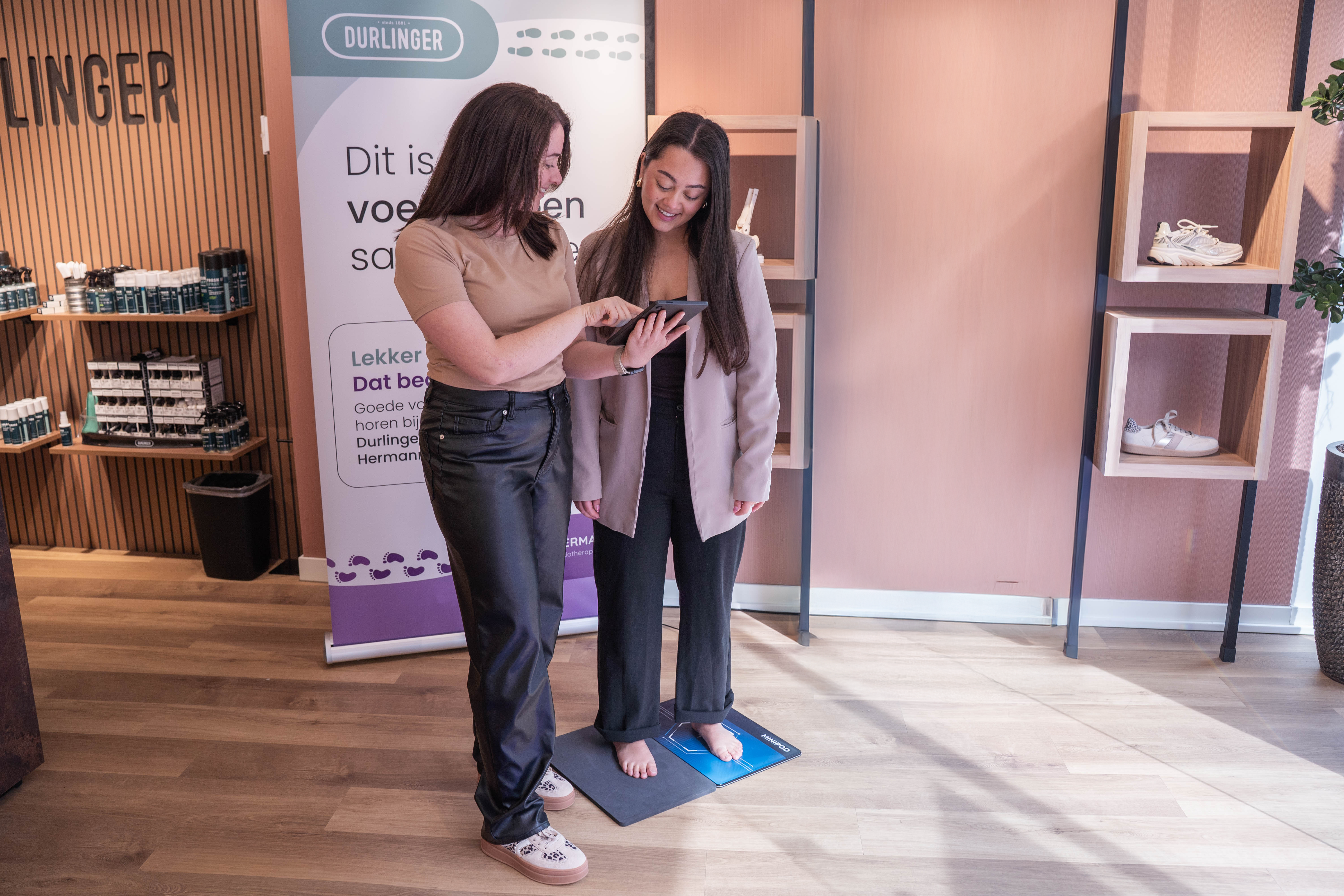 Vanaf april organiseren we scandagen in verschillende Durlinger-winkels. Tijdens zo'n scandag wordt jouw voet geanalyseerd met een voetscan, krijg je inzicht in je voetstand en de mogelijke oorzaak van je klachten, en kijken we samen naar de beste combinatie van schoen én steunzool. Je ontvangt een persoonlijk schoenrecept, afgestemd op jóuw voet.