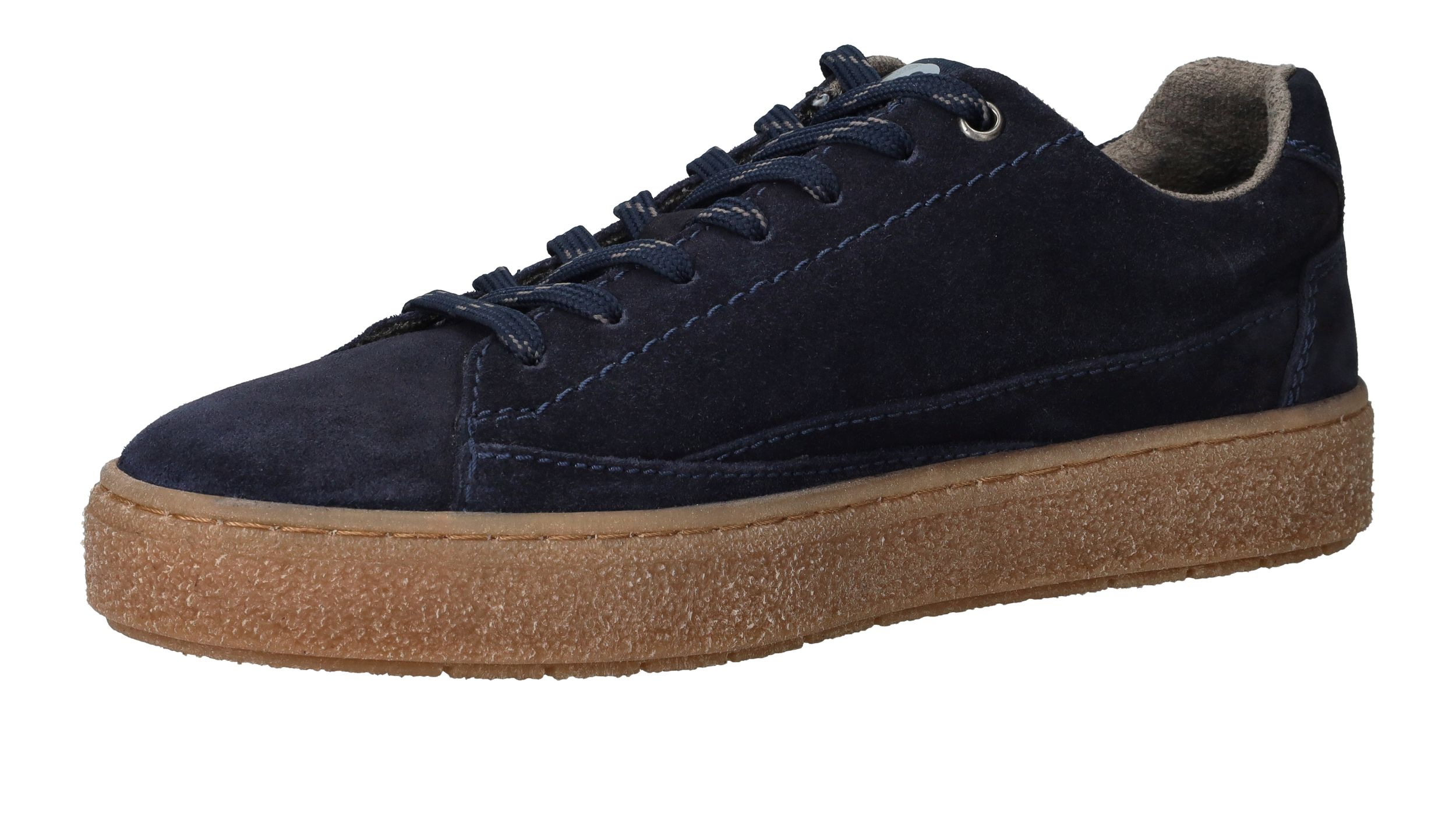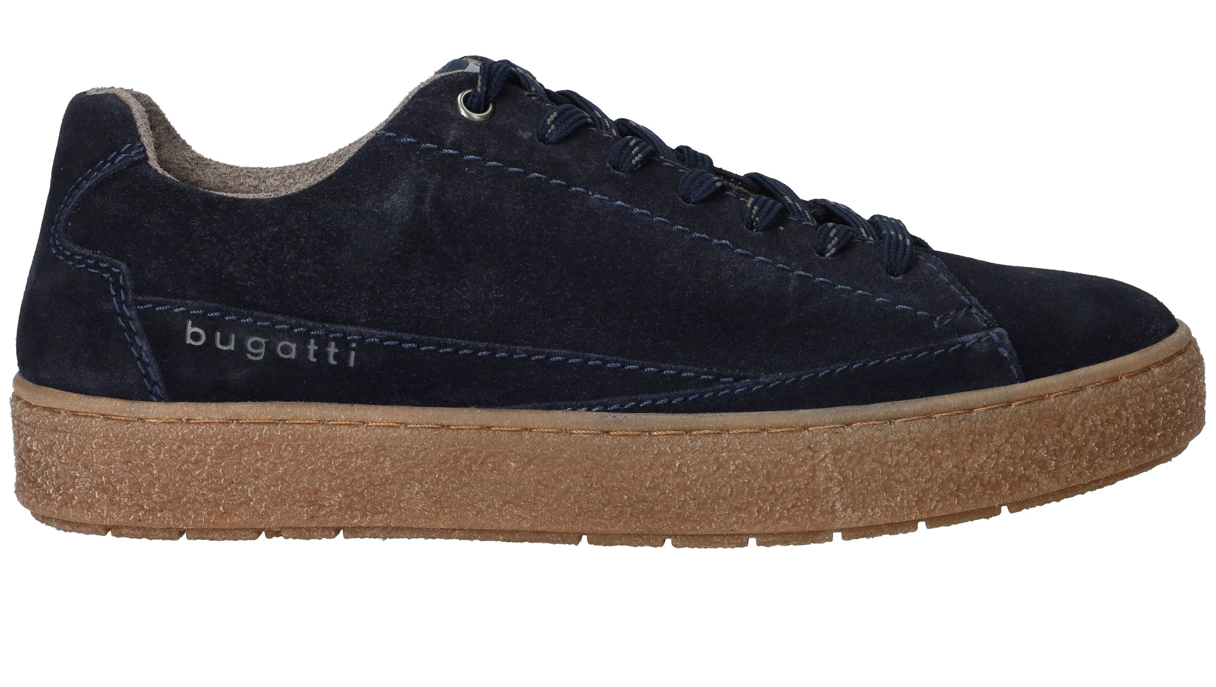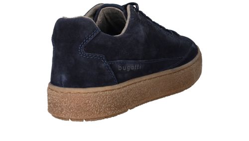 Casual Bugatti Hube sneaker voor heren. De sneaker is gemaakt van blauw suède.
