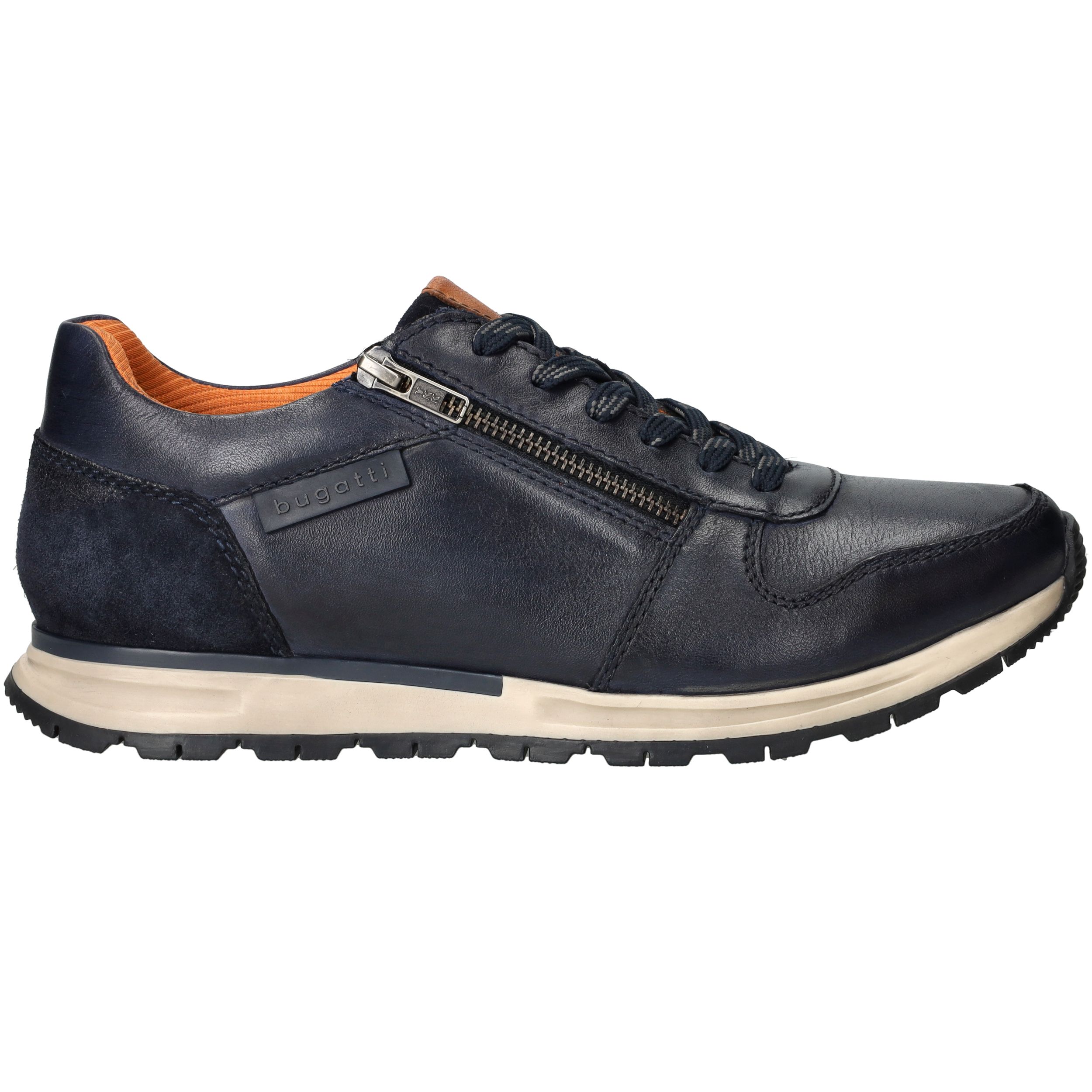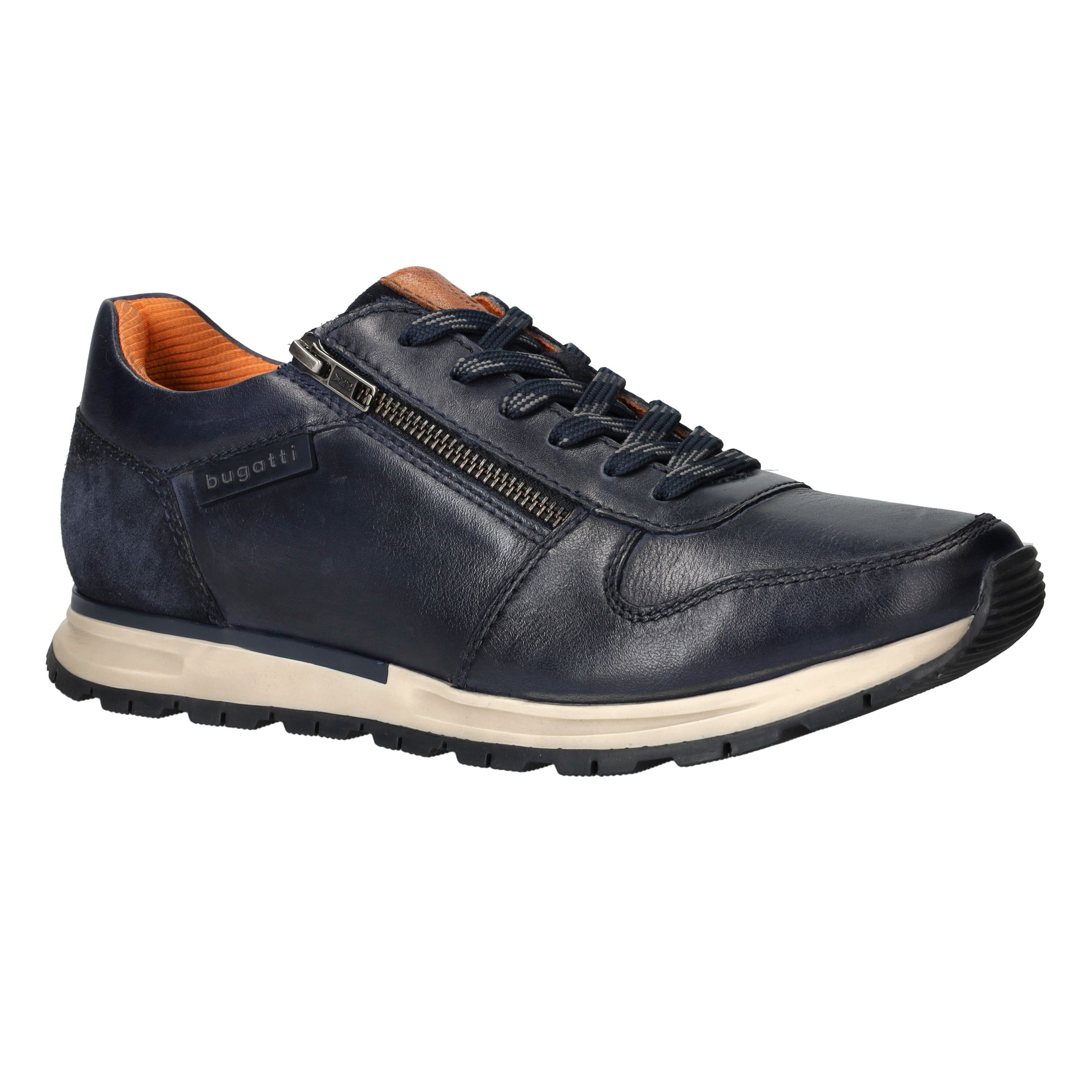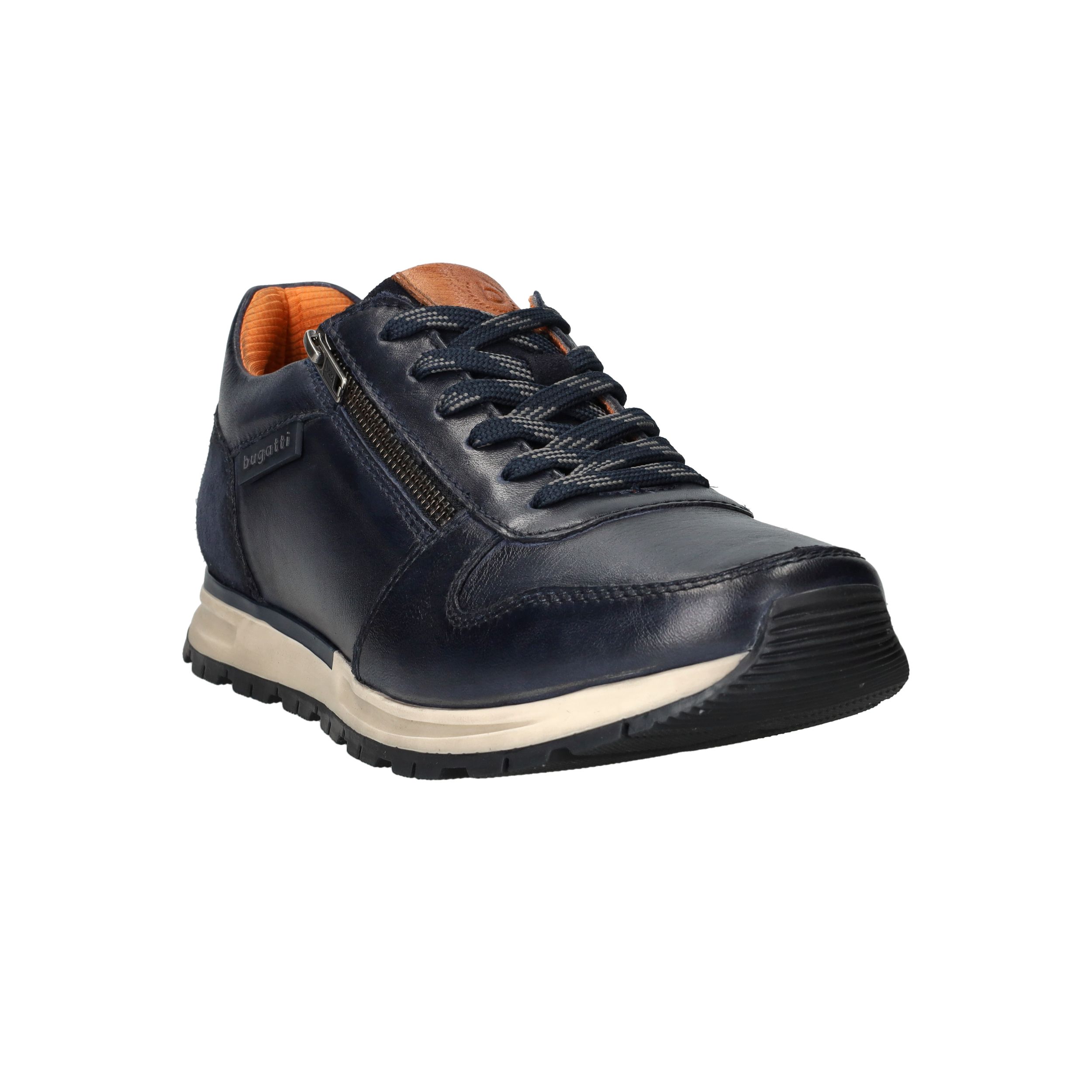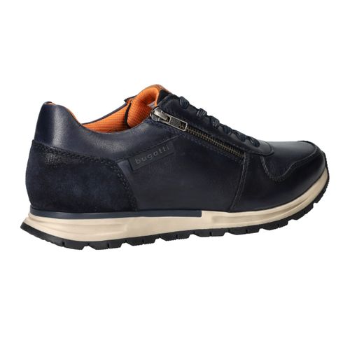 Met deze donkerblauwe sneaker van Bugatti ga je stijlvol én comfortabel op pad. Het bovenwerk is volledig uitgevoerd in soepel leer, wat zorgt voor een luxe uitstraling en een fijne pasvorm. De handige ritssluiting aan de zijkant maakt instappen extra makkelijk, en dankzij het uitneembare voetbed is deze schoen ook geschikt voor steunzolen.