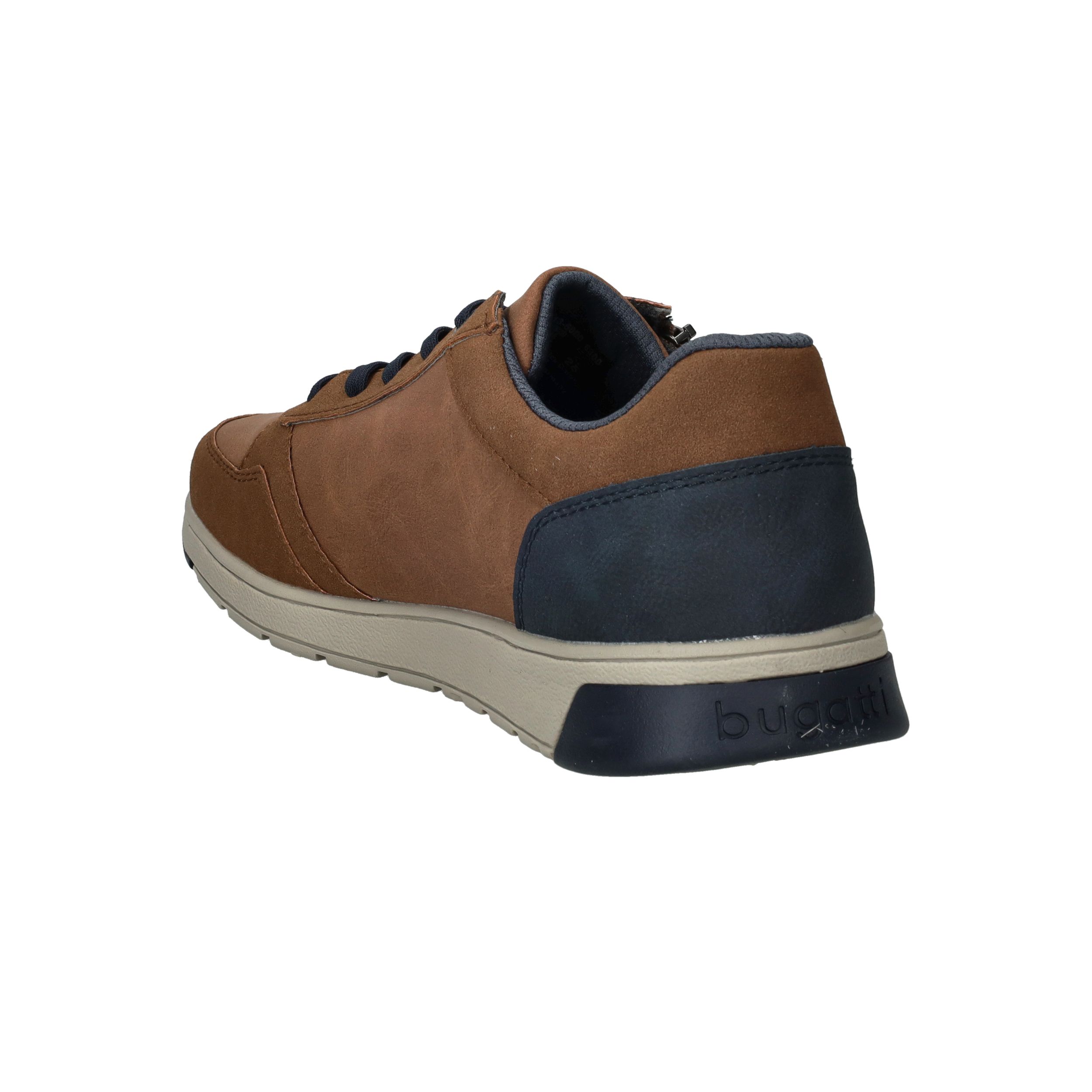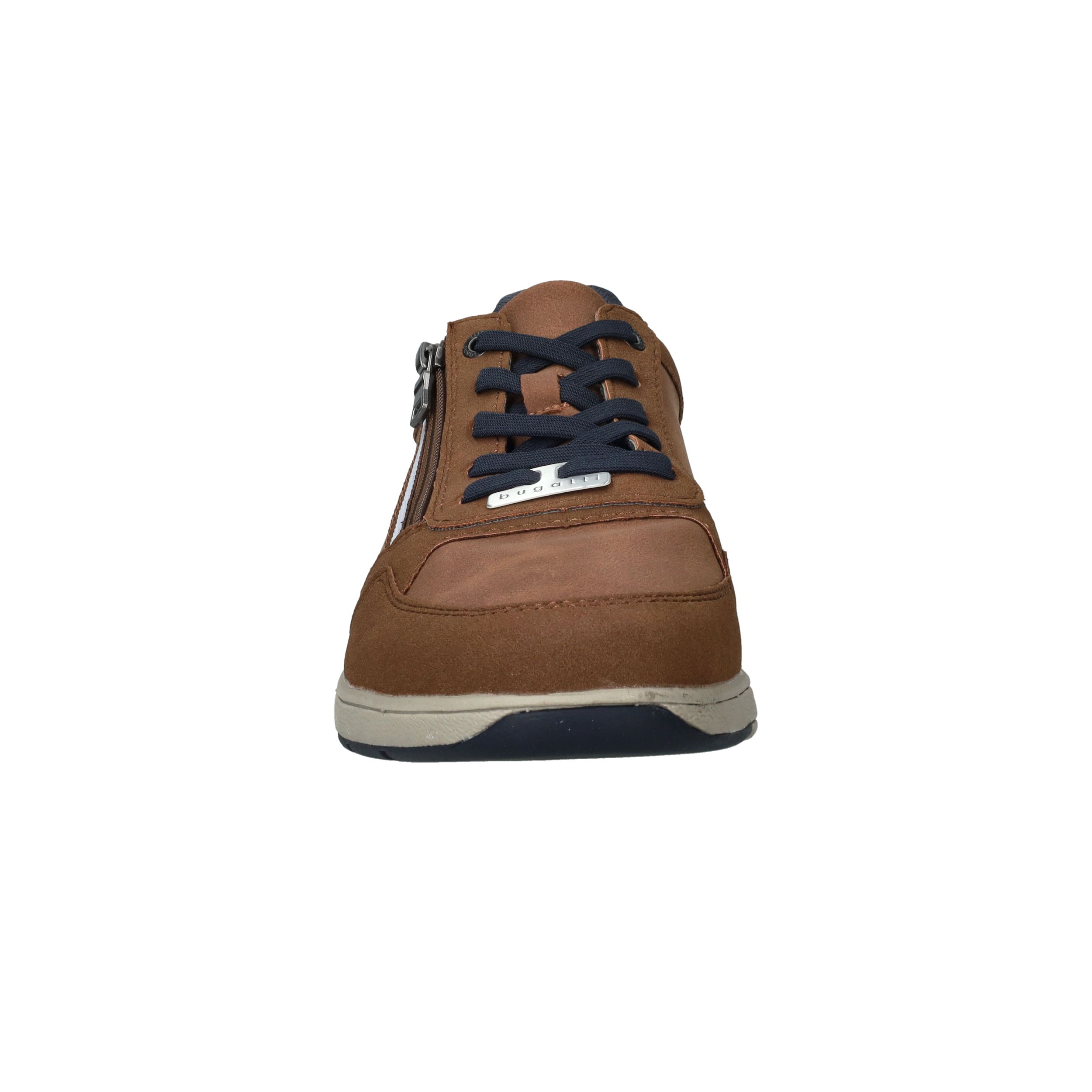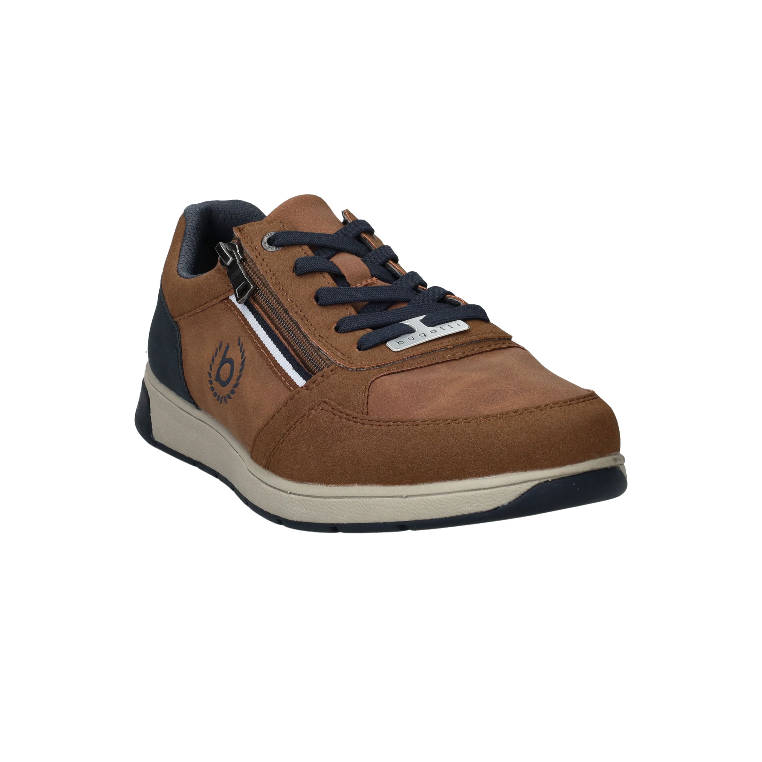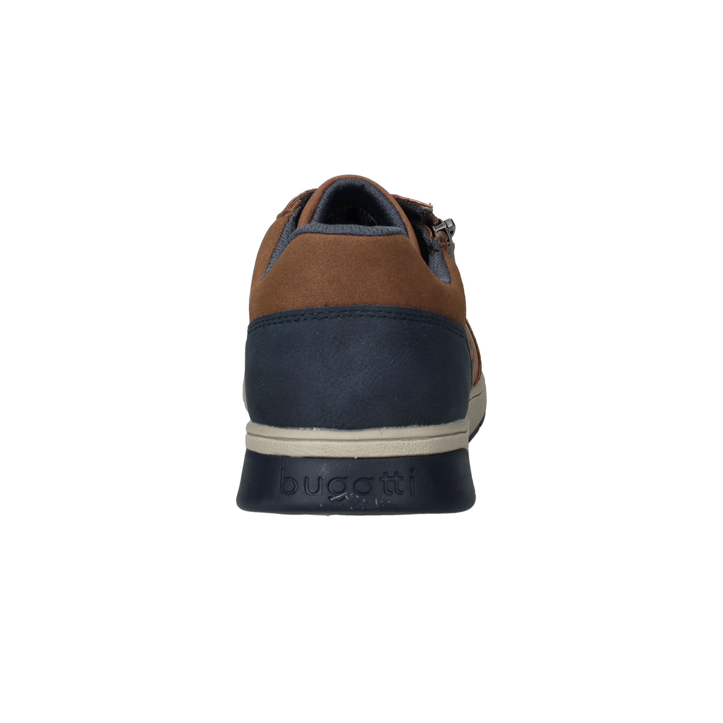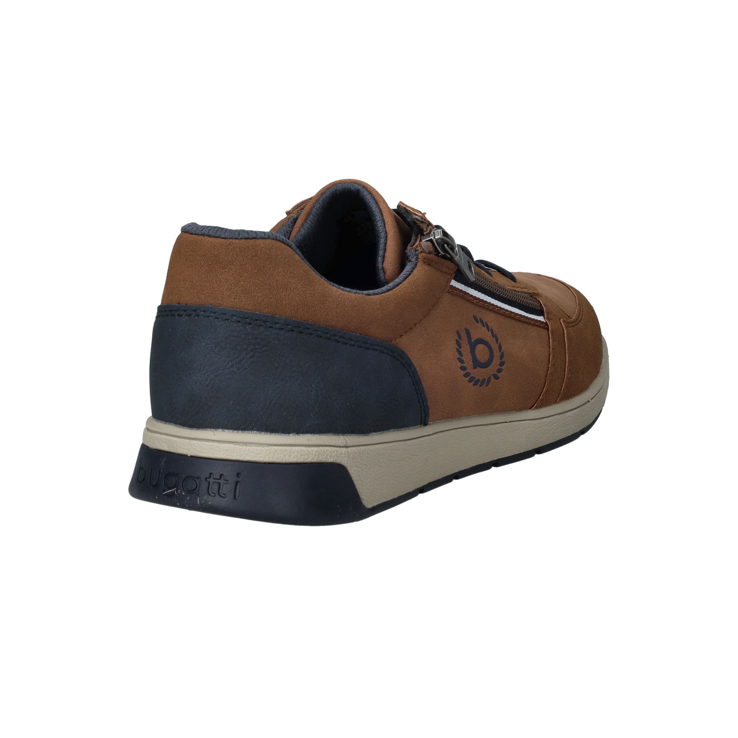 Deze bruine Bugatti veterschoen voor heren is licht van gewicht en gemaakt van een combinatie van kunstleer en textiel. Dankzij de veter- en ritssluiting trek je de schoen eenvoudig aan en uit. De donkerblauwe details geven het model een sportieve en eigentijdse uitstraling.
