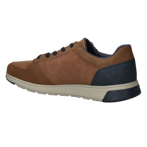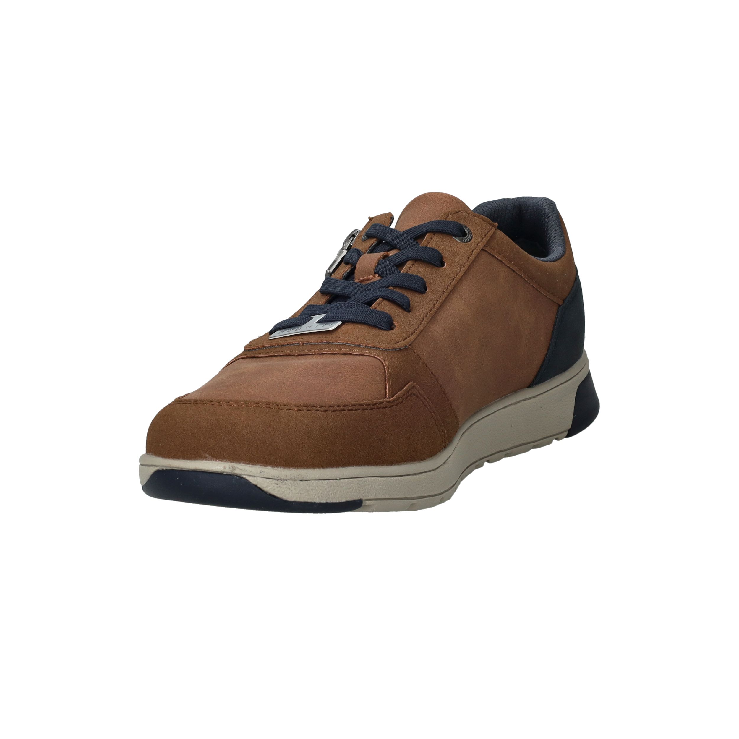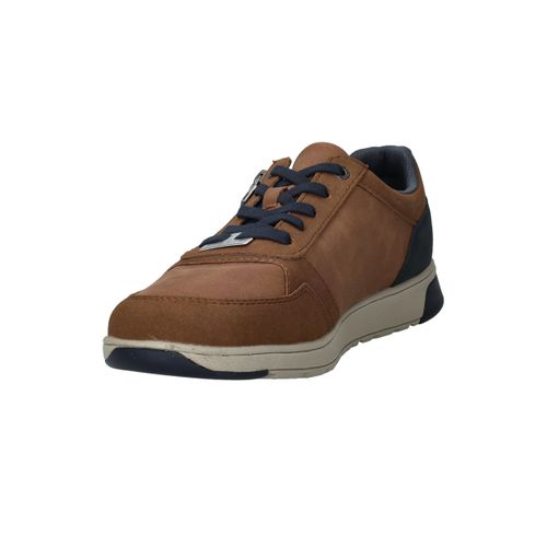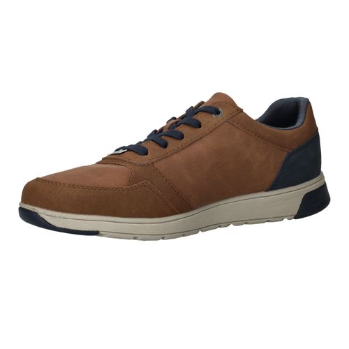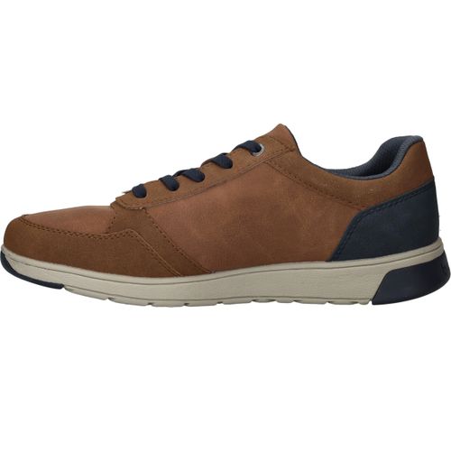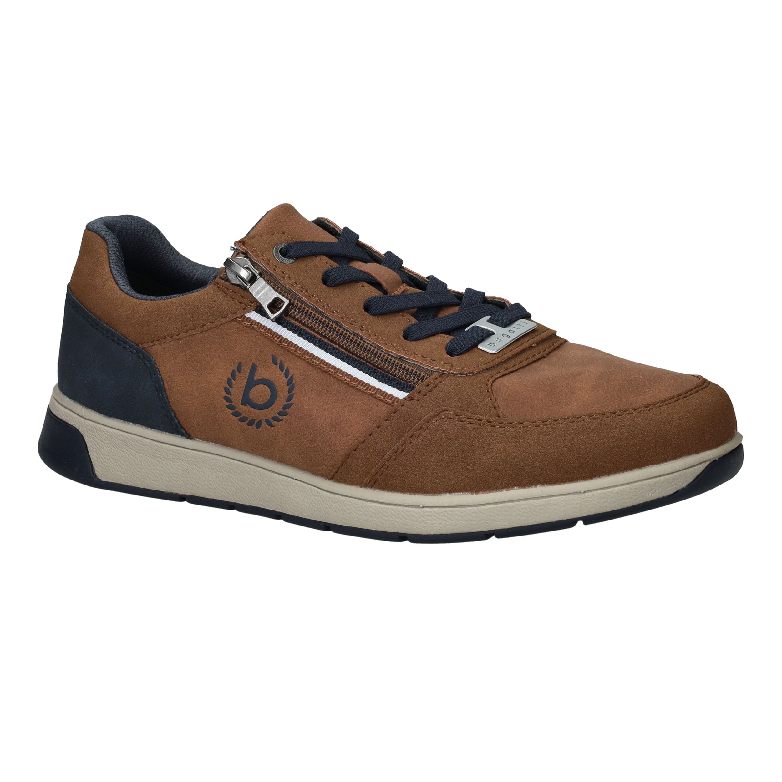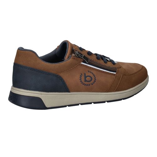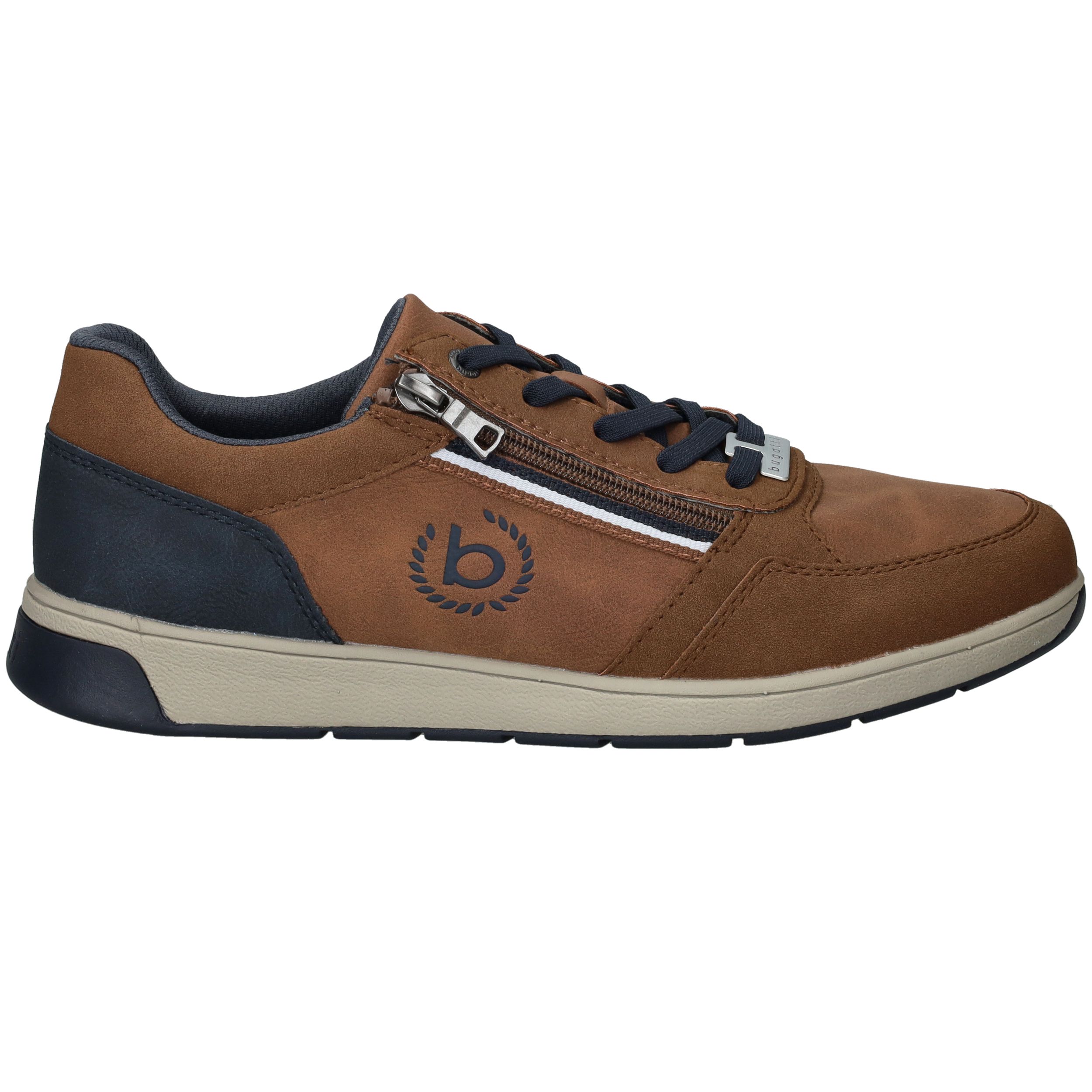 Deze bruine Bugatti veterschoen voor heren is licht van gewicht en gemaakt van een combinatie van kunstleer en textiel. Dankzij de veter- en ritssluiting trek je de schoen eenvoudig aan en uit. De donkerblauwe details geven het model een sportieve en eigentijdse uitstraling.