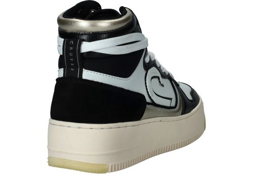 Gave Cruyff Campo High Lux Tall sneaker voor dames. De zwarte halfhoge sneaker heeft een toffe platformzool.