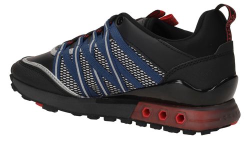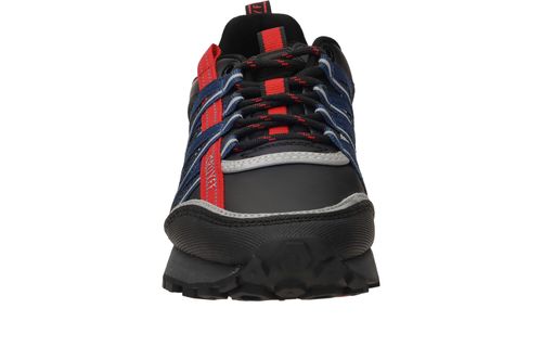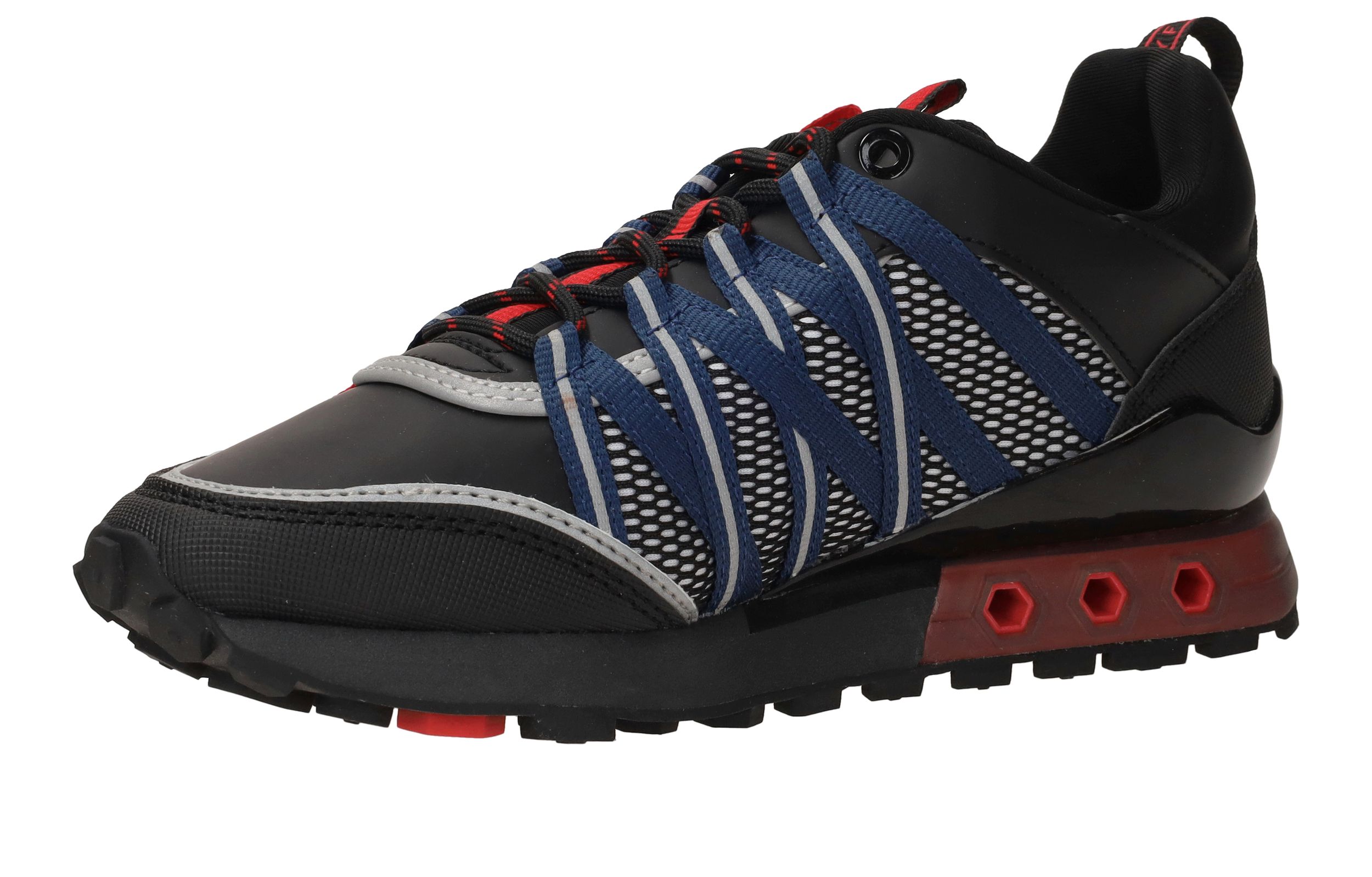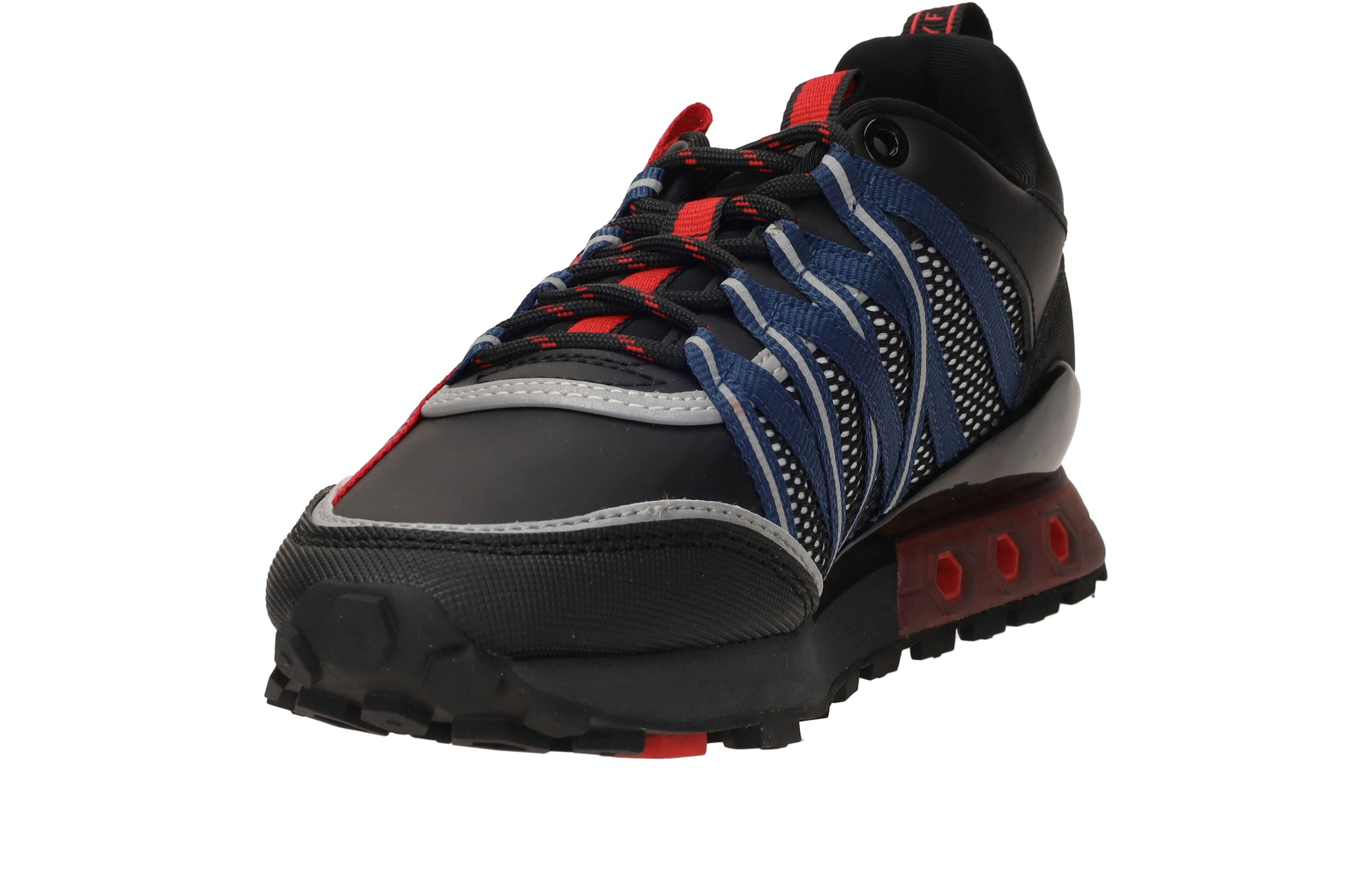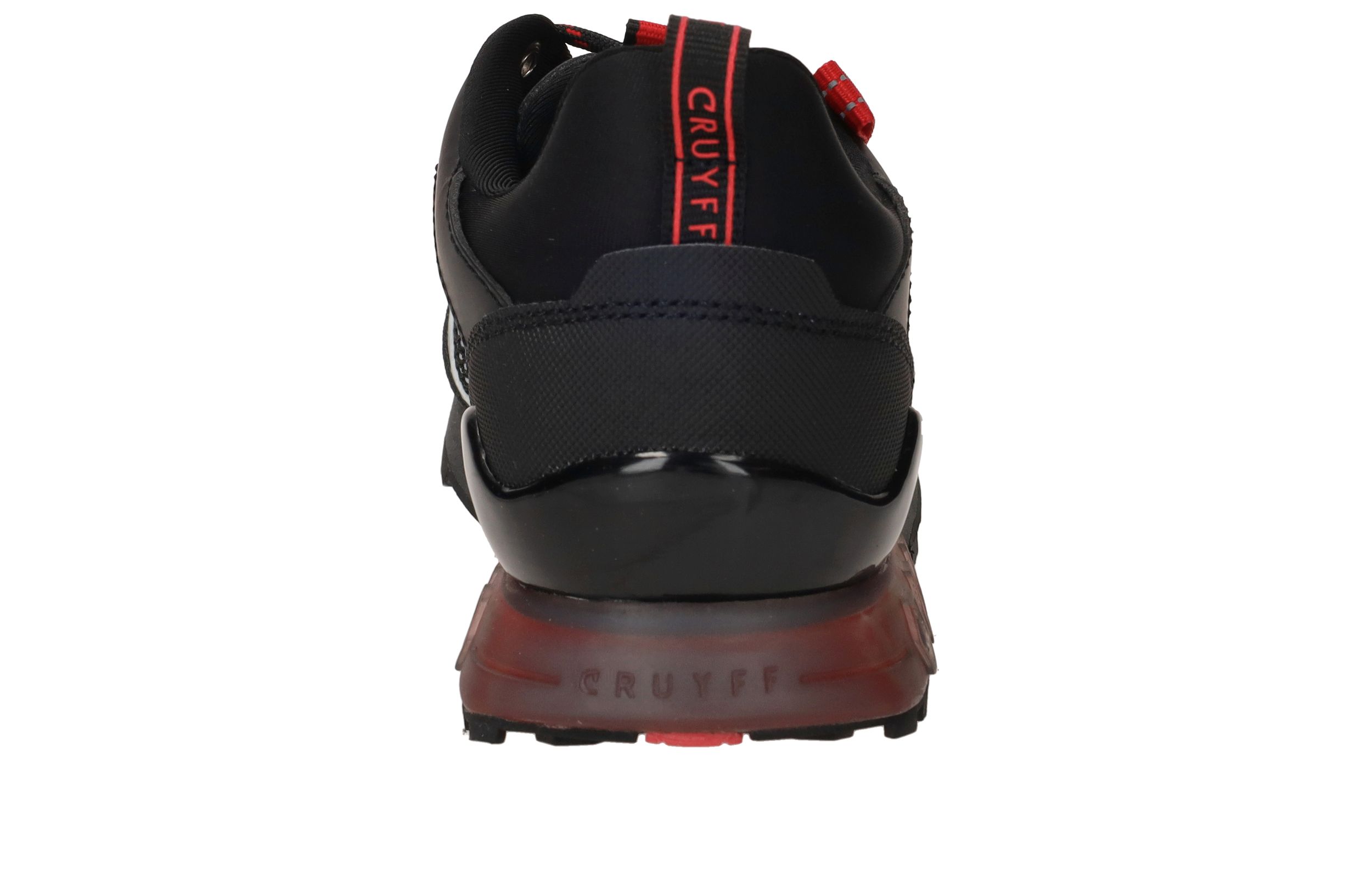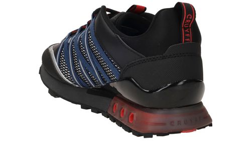 Sportieve Cruyff Fearia sneaker voor jongens met toffe blauwe en rode accenten. Deze zwarte sneaker combineer je makkelijk met al je outfits en is geschikt om alle seizoenen te dragen.
