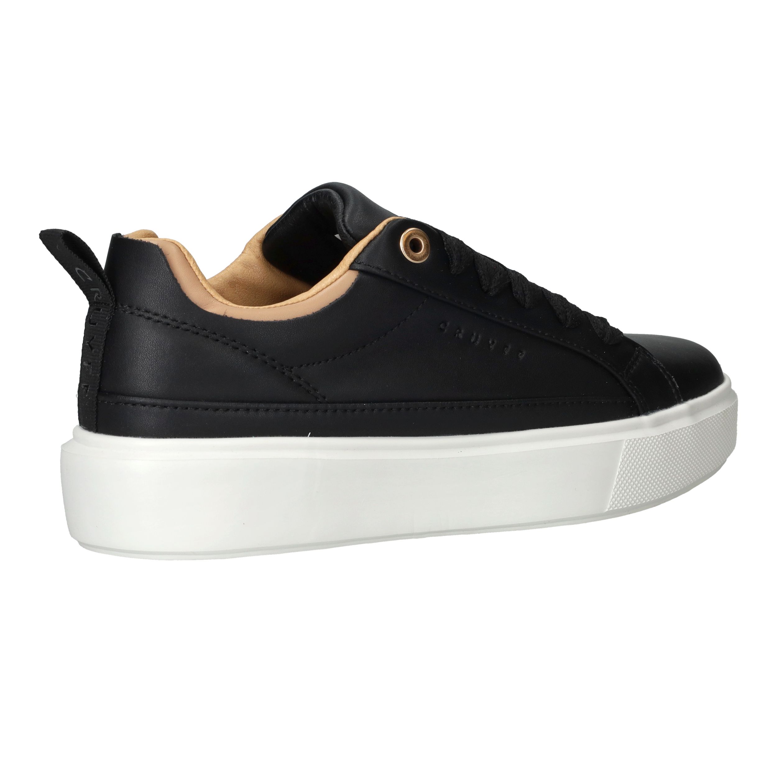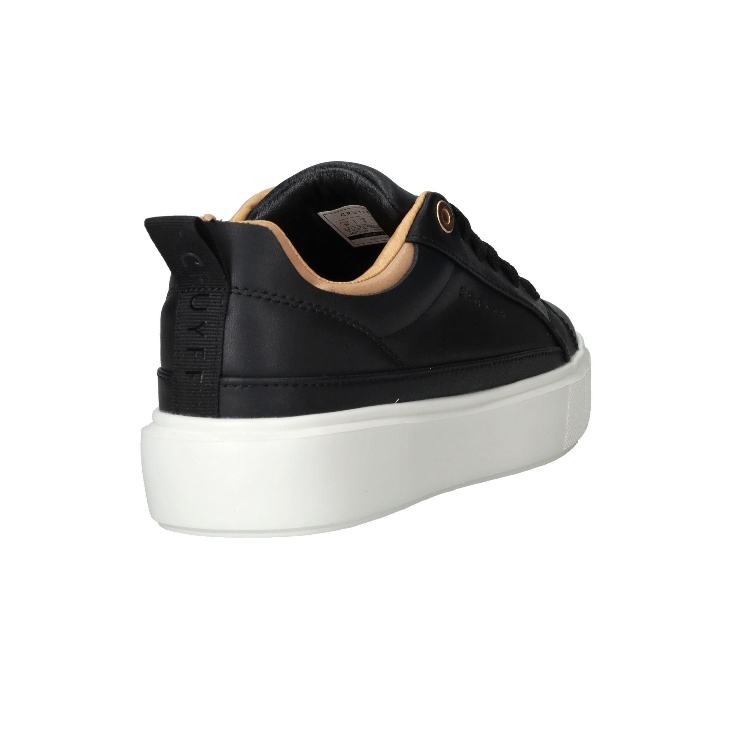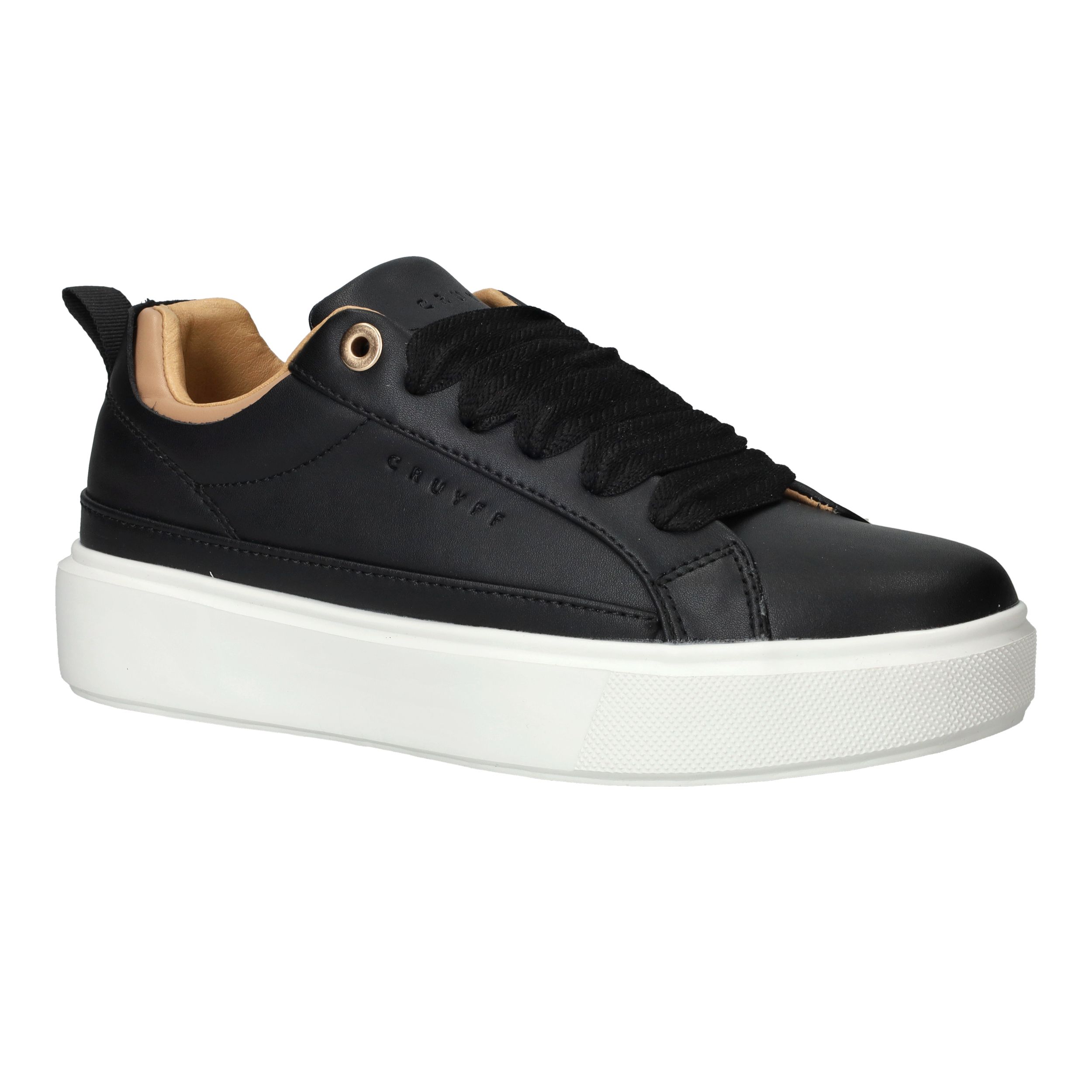 Deze basic zwarte Cruyff Palco sneaker mag niet ontbreken in je collectie! De damessneaker heeft mooie cognac accenten en een witte platformzool.
