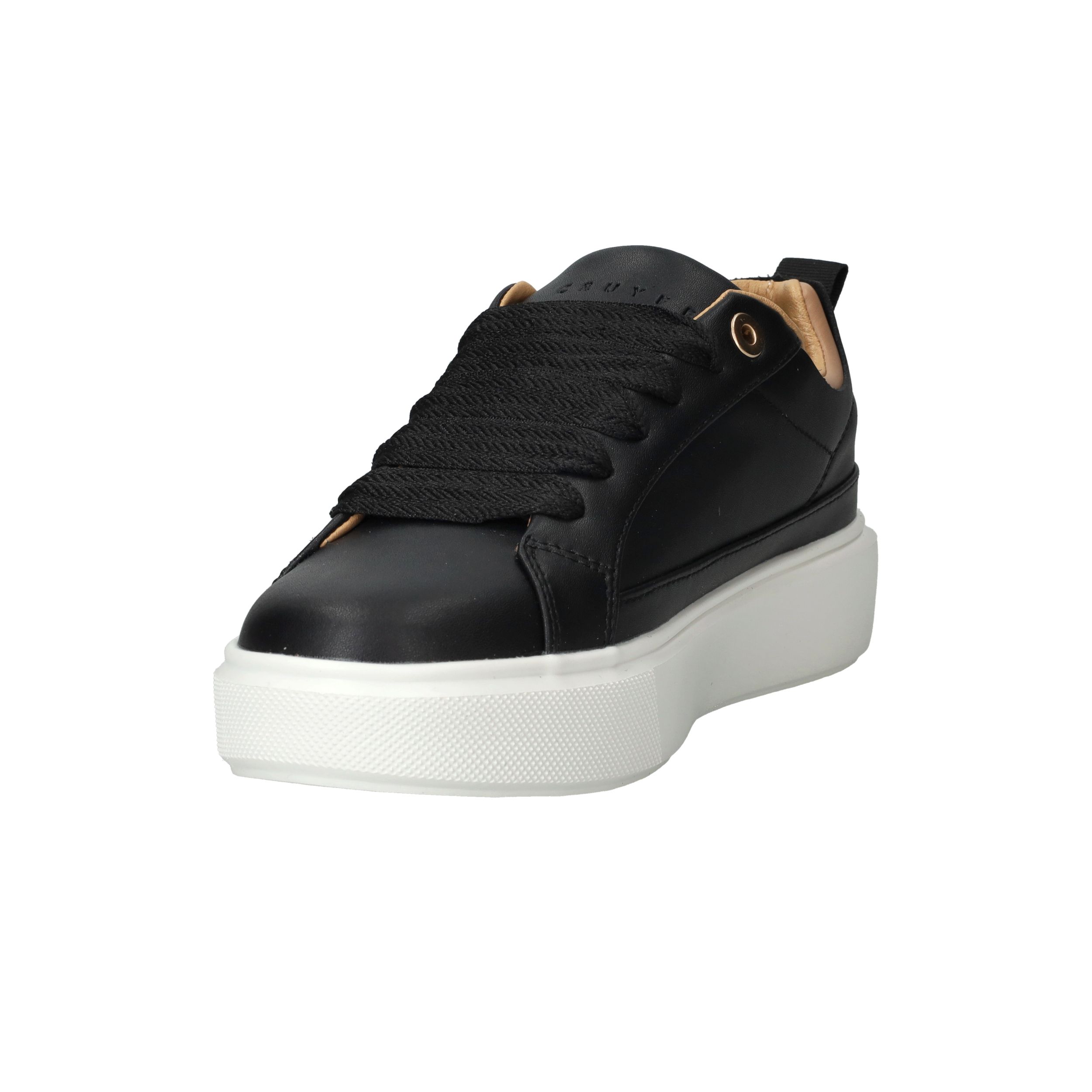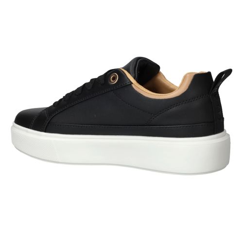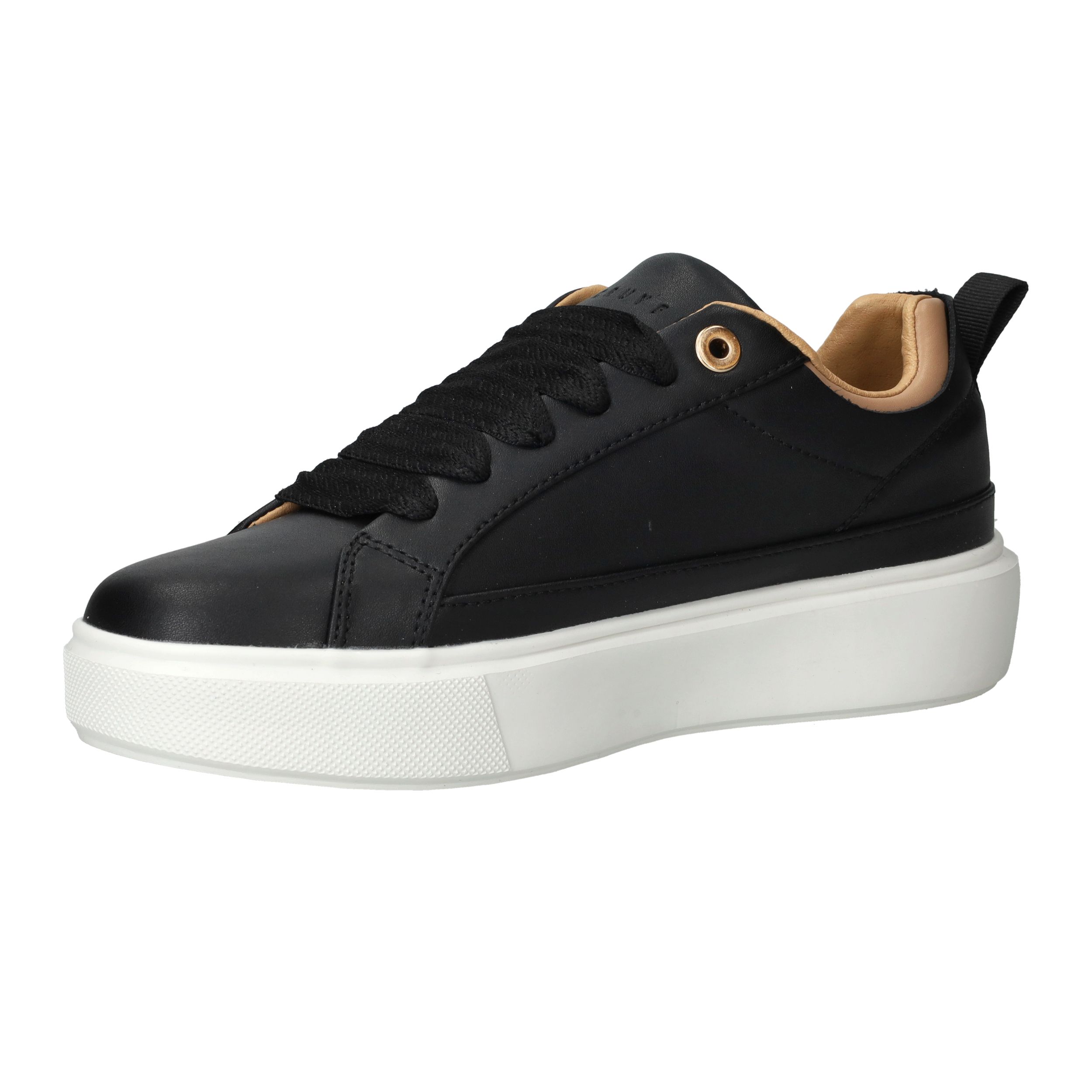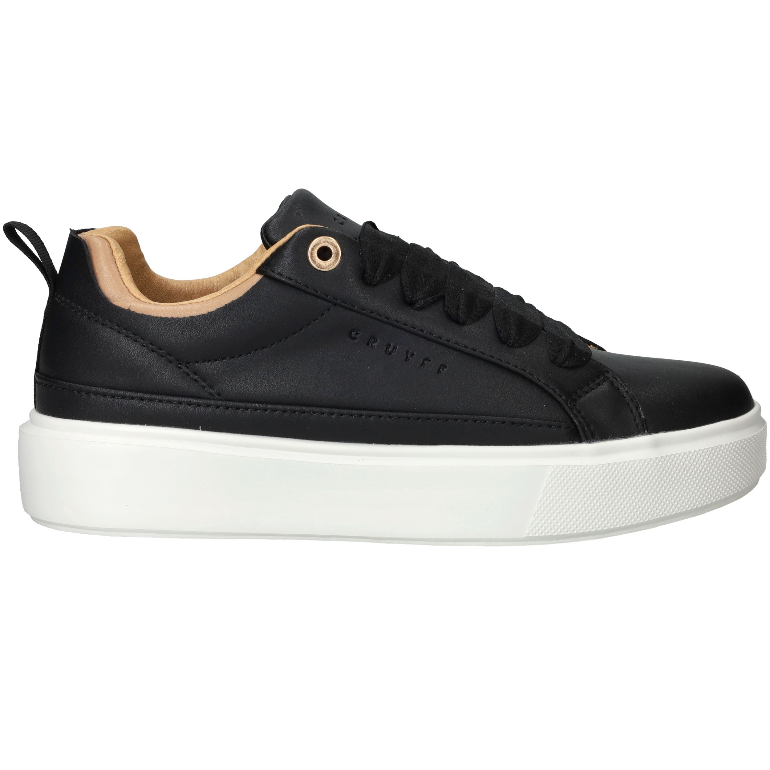 Deze basic zwarte Cruyff Palco sneaker mag niet ontbreken in je collectie! De damessneaker heeft mooie cognac accenten en een witte platformzool.