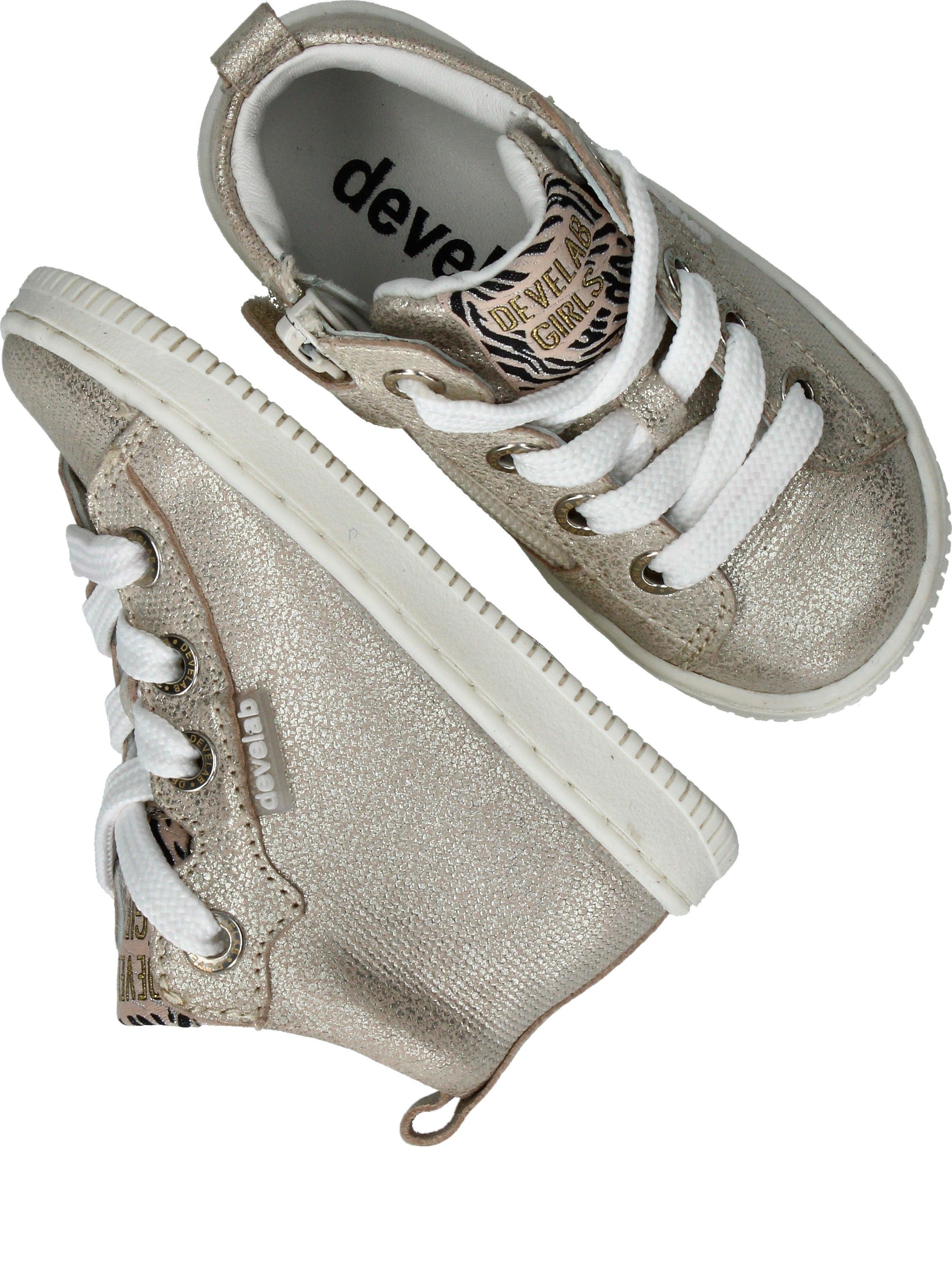 Dit stralende Develab First Step veterbootje heeft een toffe metallic gouden kleur! Het schoentje heeft een flexibel zooltje. Deze is buigzaam er zorgt ervoor dat het voetje goed afgewikkeld kan worden.