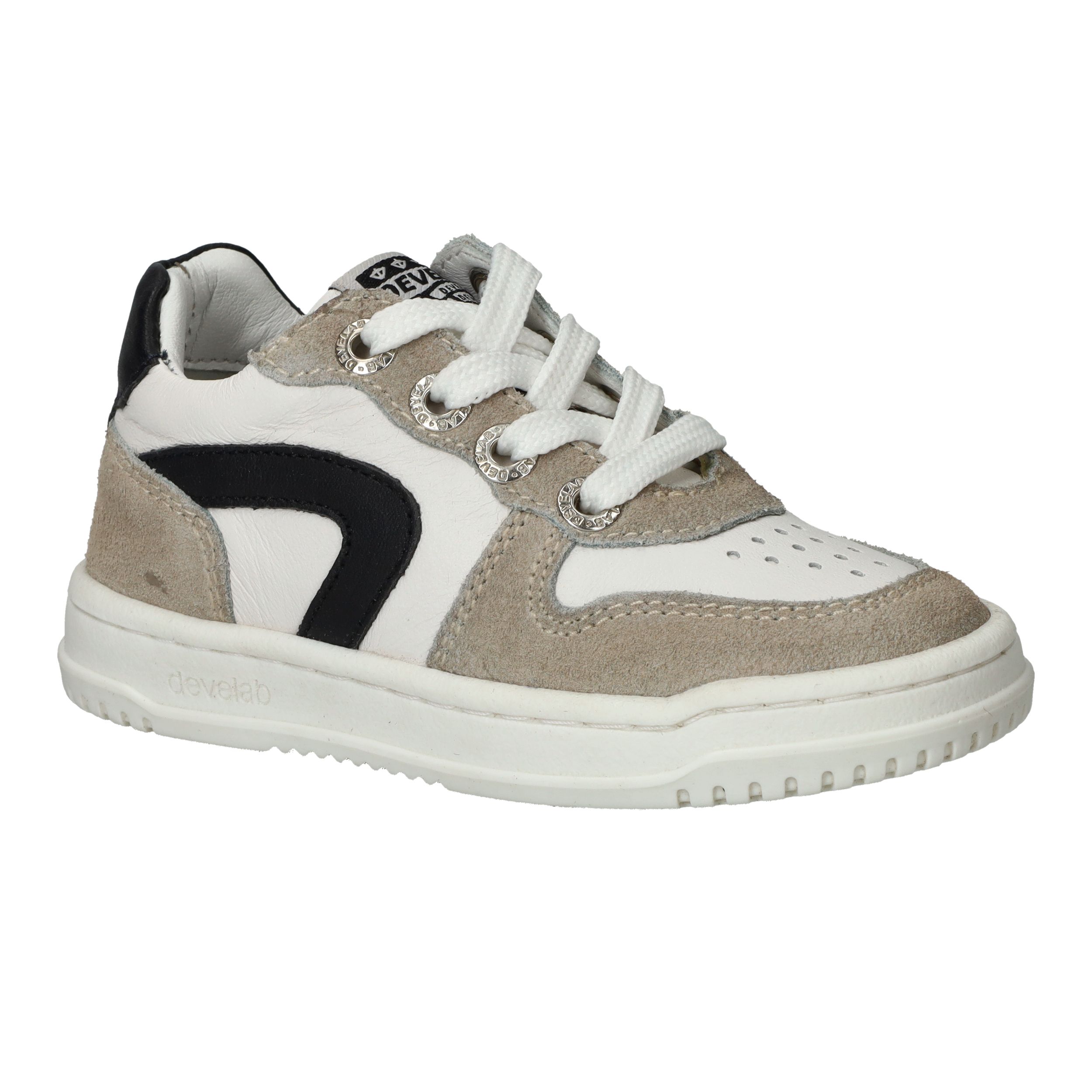 Stoere Develab sneaker voor jongens. Door de neutrale beige en witte kleur past de sneaker bij al je kleding.