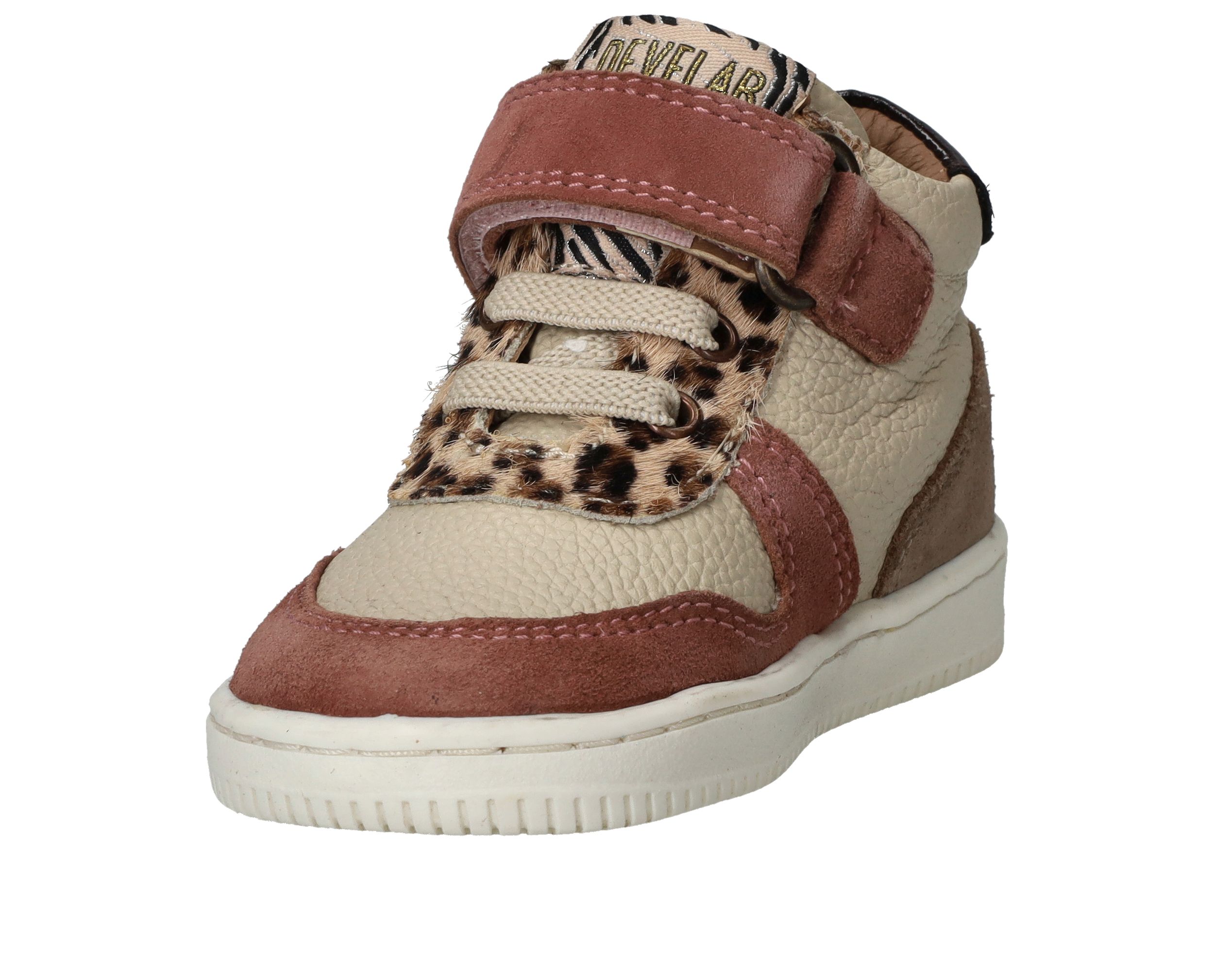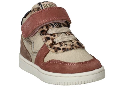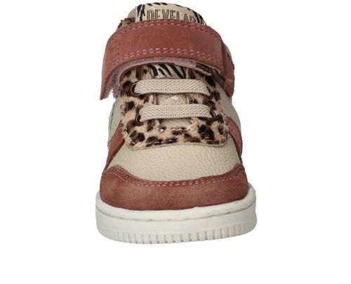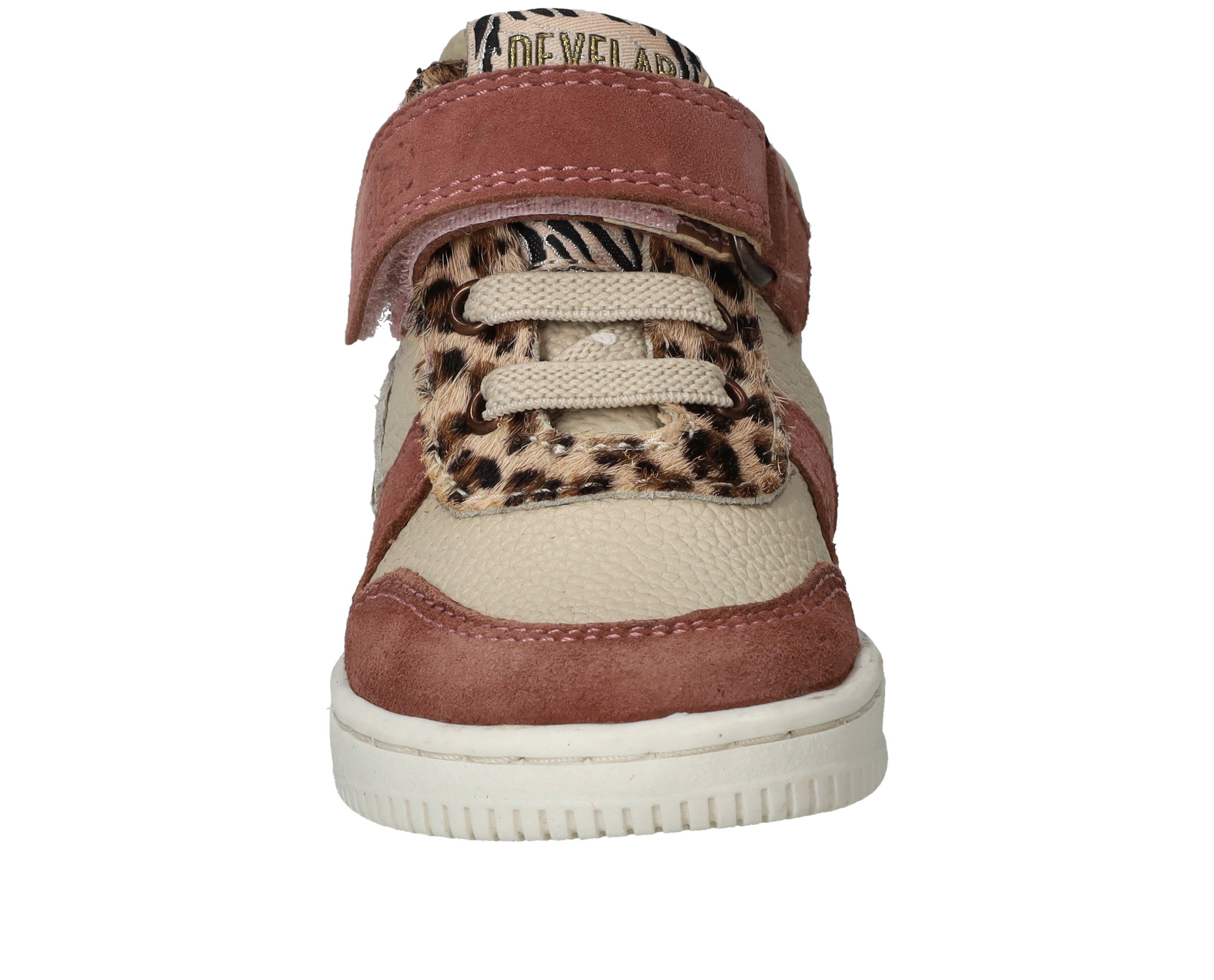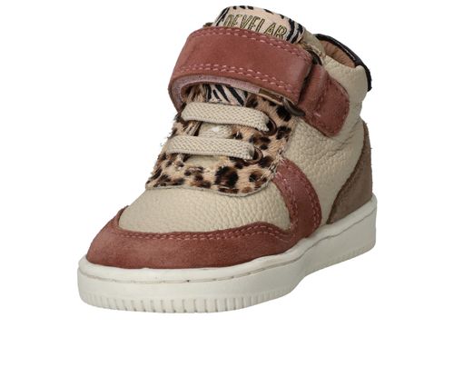 Wat een stoer Develab schoentje is dit! De schoen heeft een mooie beige kleur en is afgewerkt met roze accenten en een dierenprintje. Extra handig is de klittenbandsluiting.