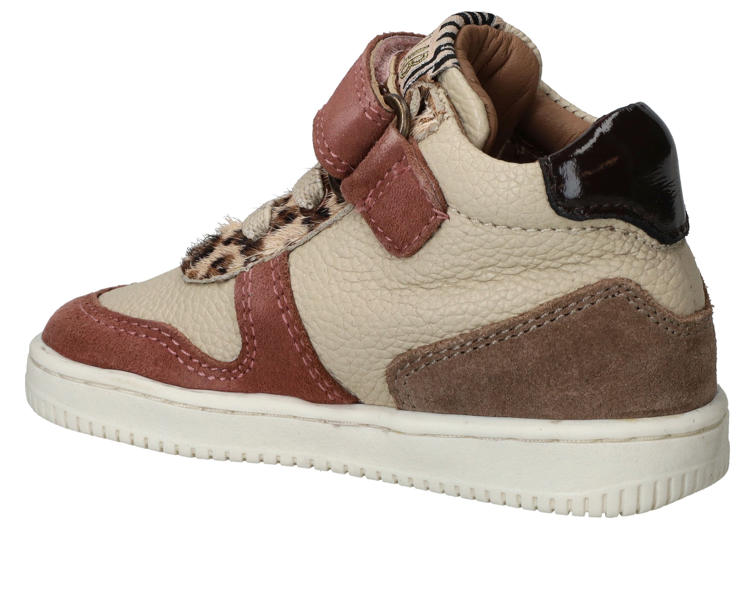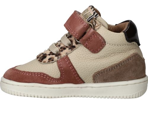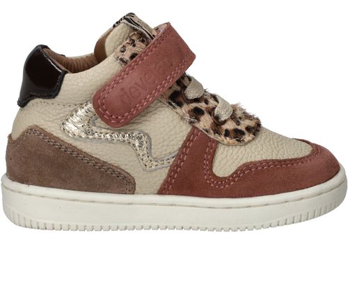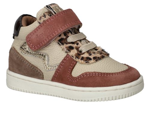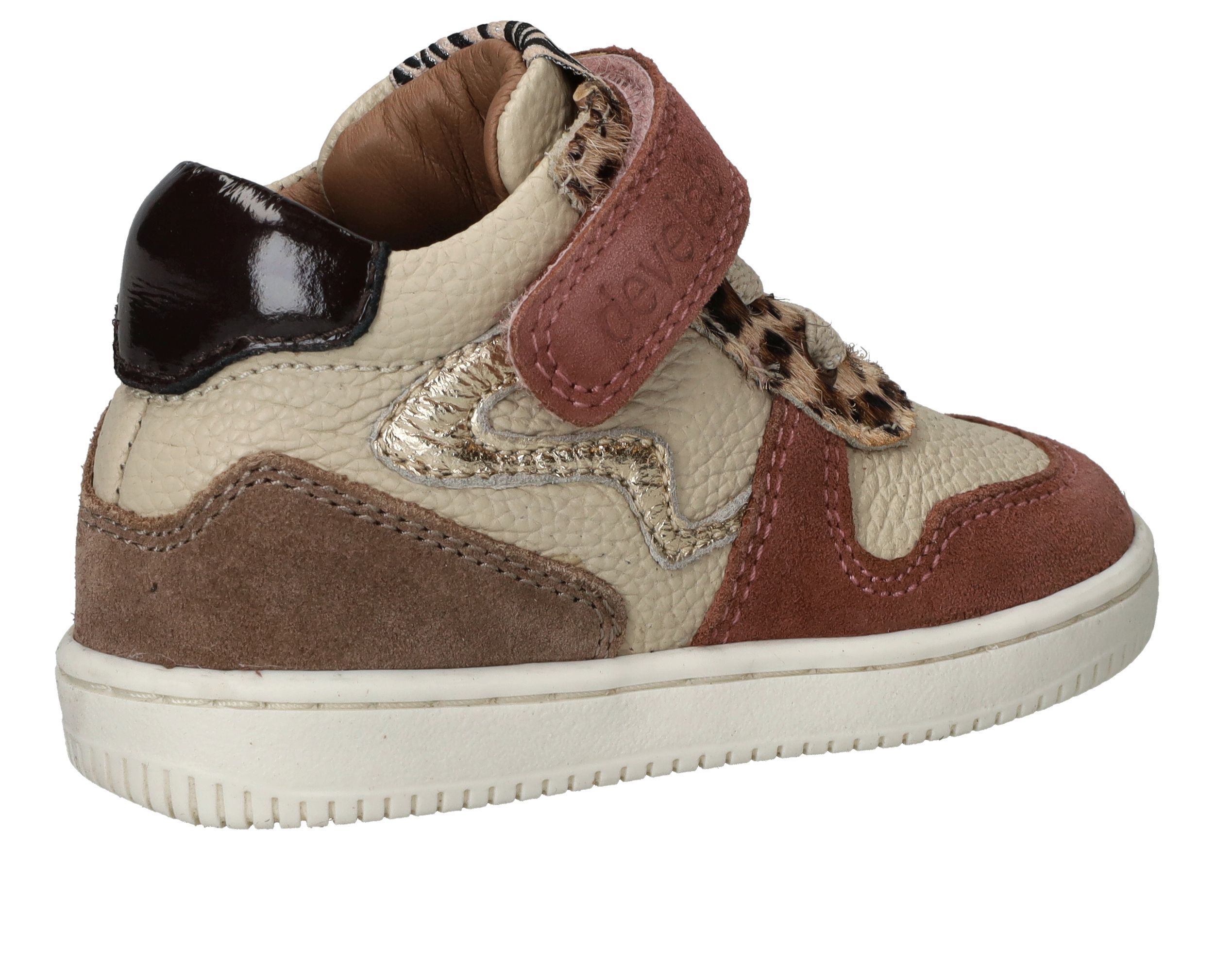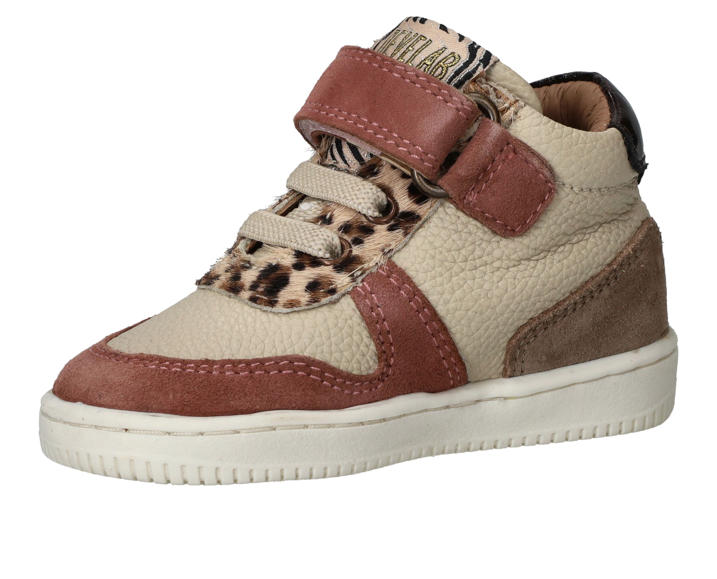 Wat een stoer Develab schoentje is dit! De schoen heeft een mooie beige kleur en is afgewerkt met roze accenten en een dierenprintje. Extra handig is de klittenbandsluiting.