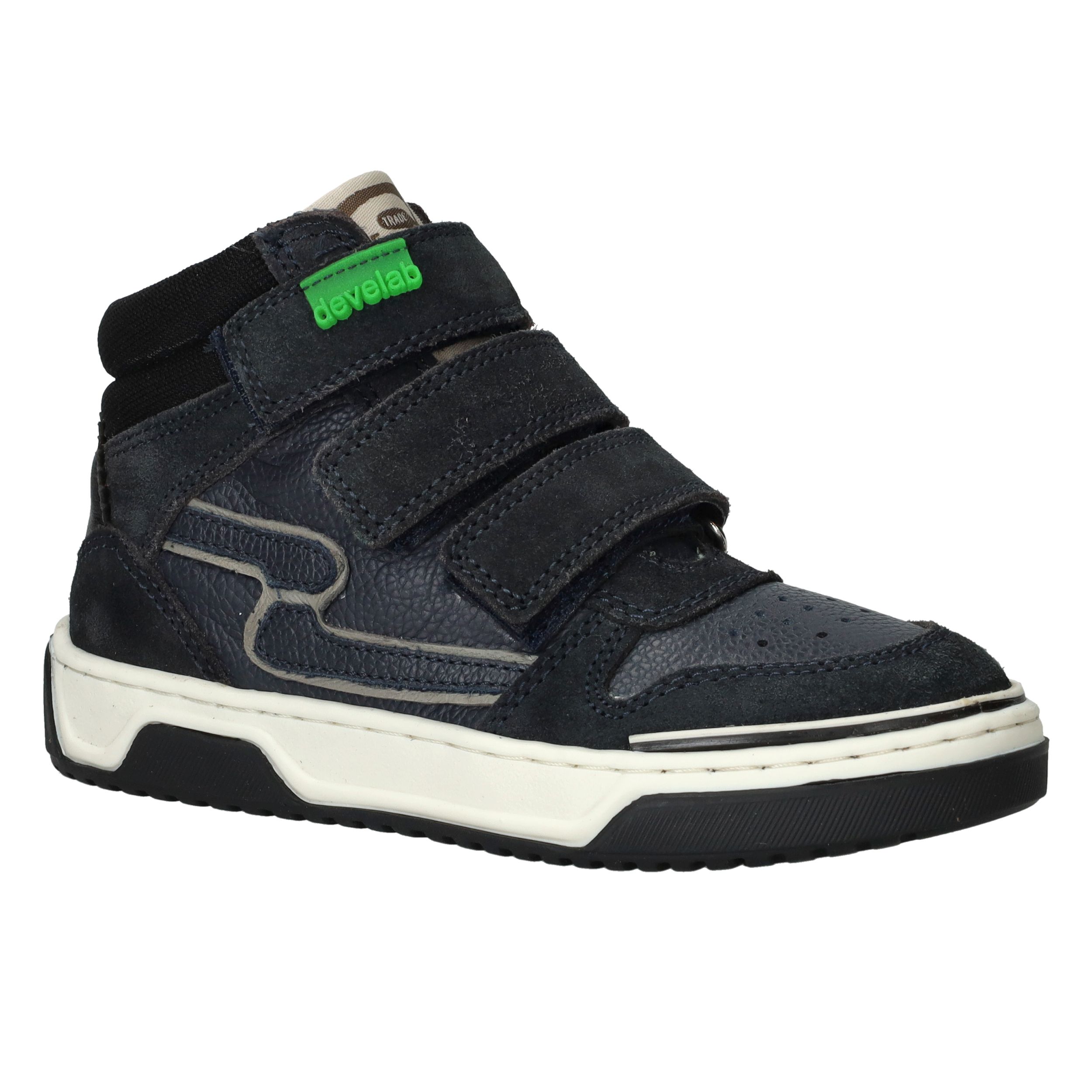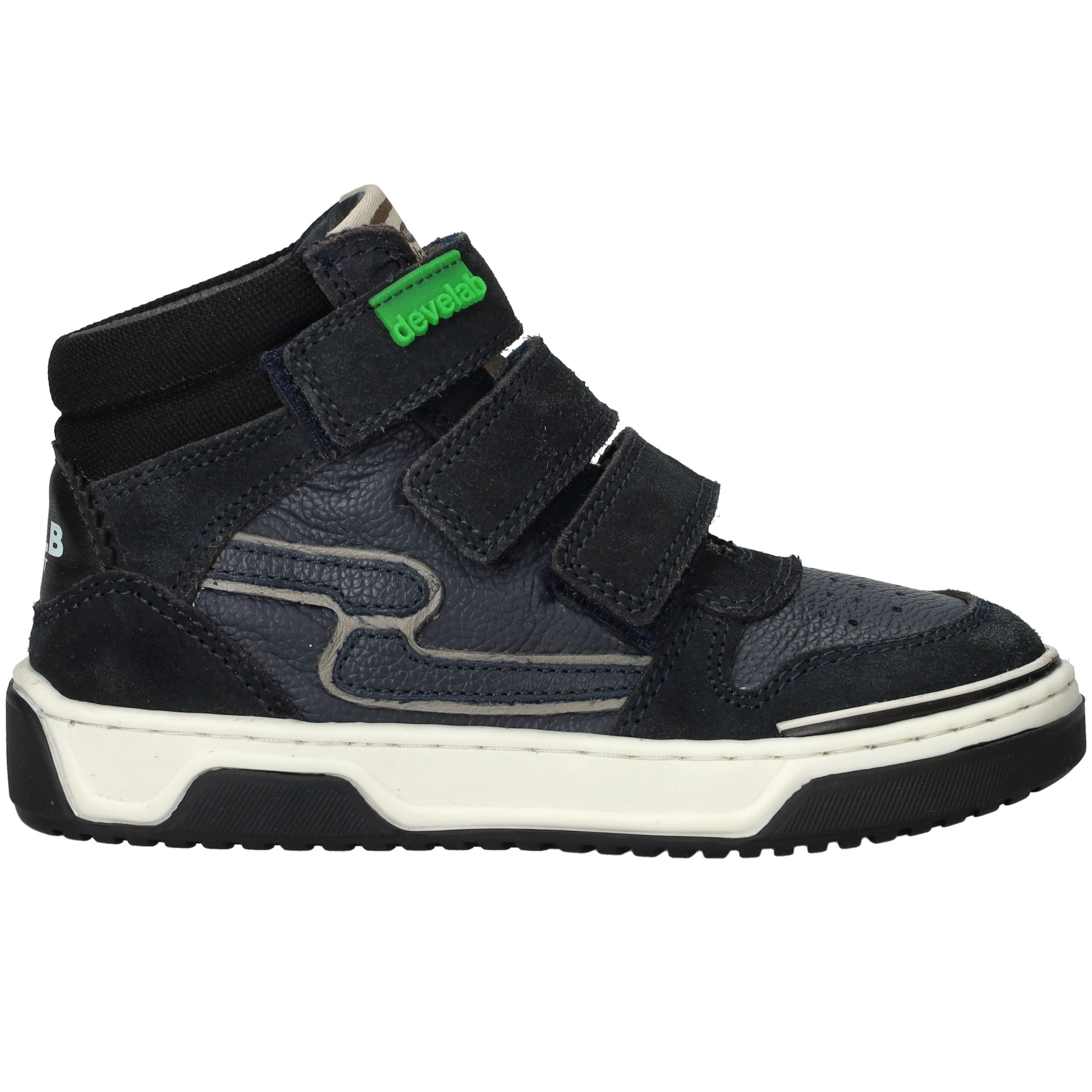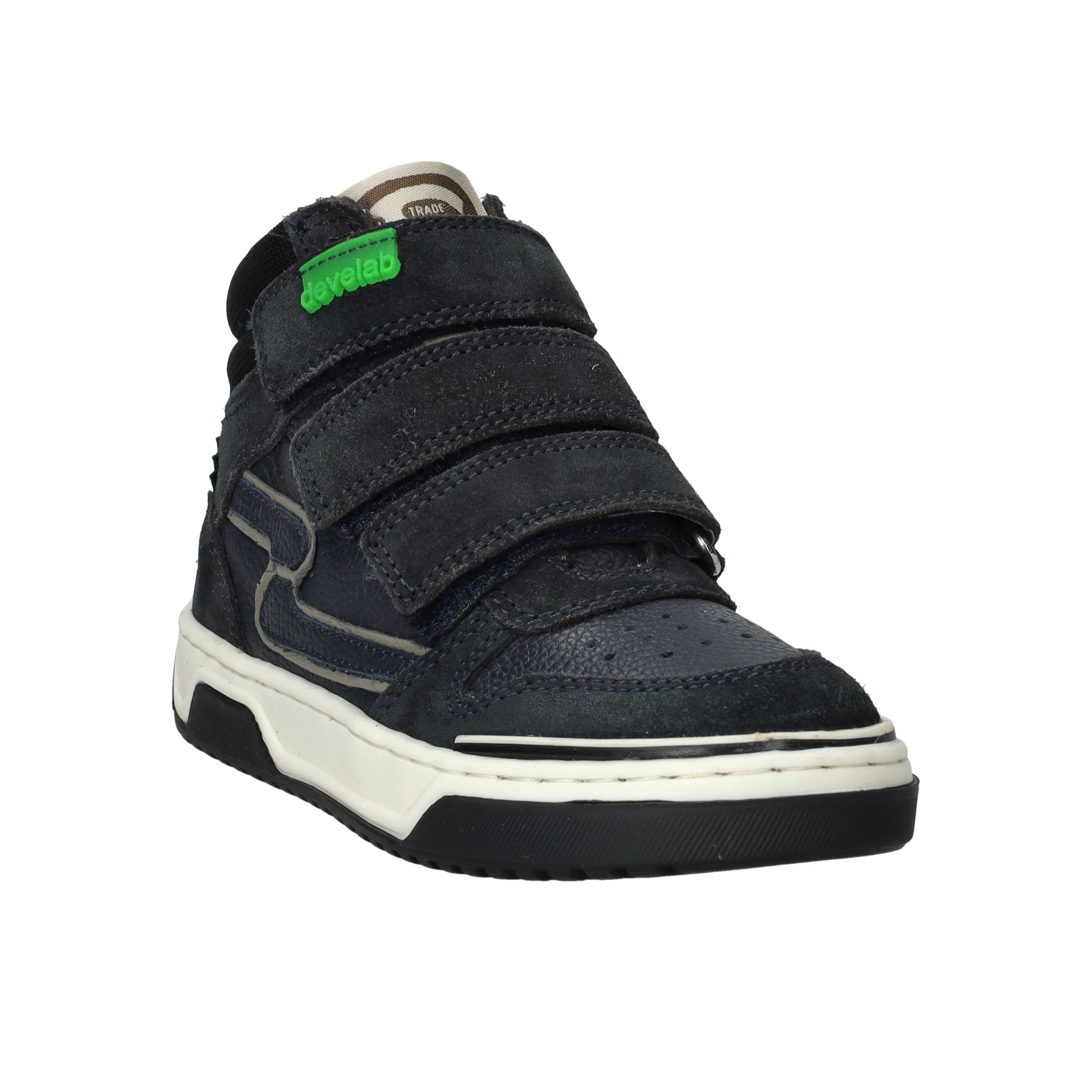 De Develab sneakers zijn stoere en praktische schoenen voor actieve kinderen. Deze donkerblauwe jongens sneakers combineren leer en suède, wat zorgt voor een stevige en duurzame schoen. Dankzij de stevige profielzool en de comfortabele pasvorm zijn ze ideaal voor dagelijks gebruik en buitenspelen. Met hun sportieve look zijn ze bovendien makkelijk te combineren met iedere outfit.