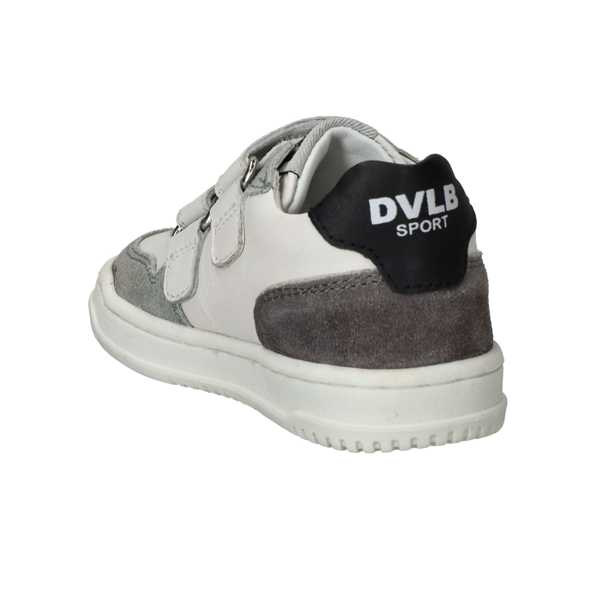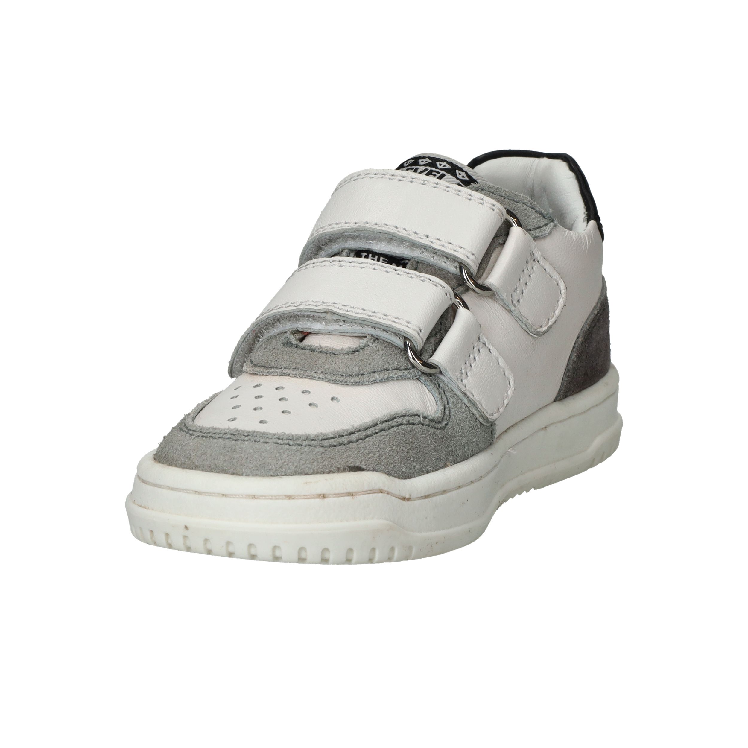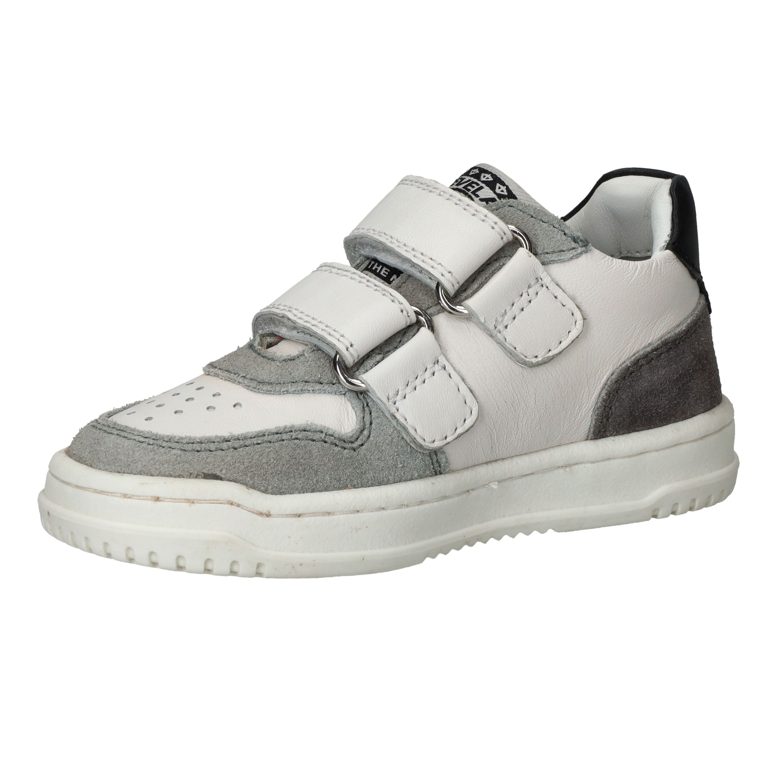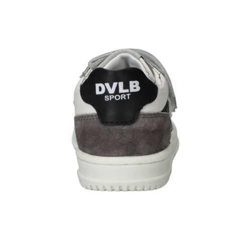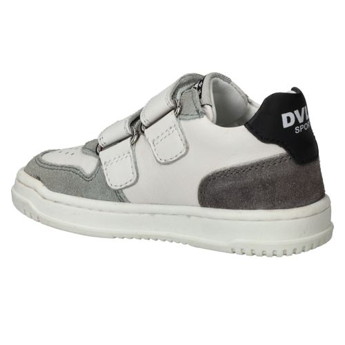 Stevige Develab sneaker voor jongens. De witte sneaker heeft suède kleurvlakken en zwarte details.