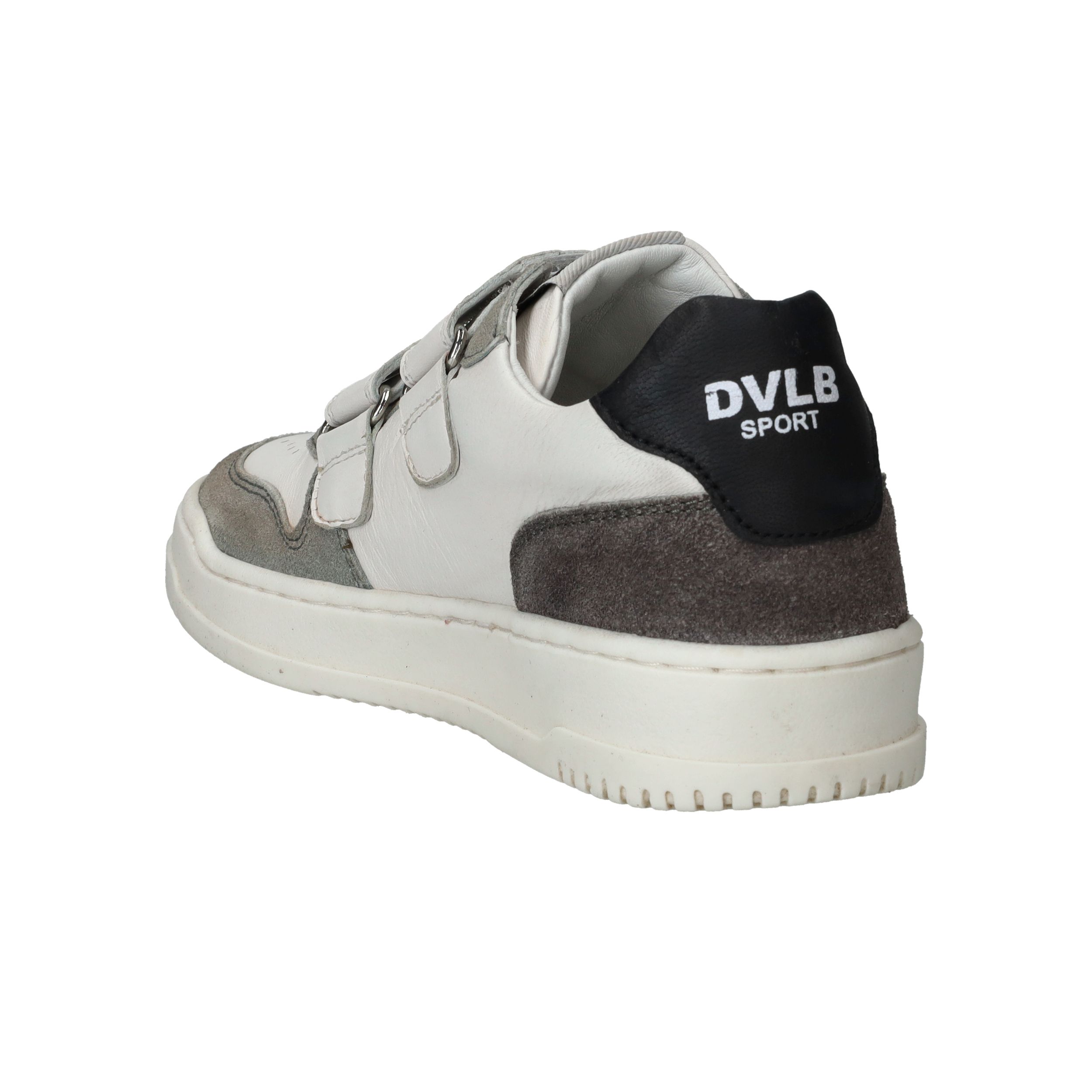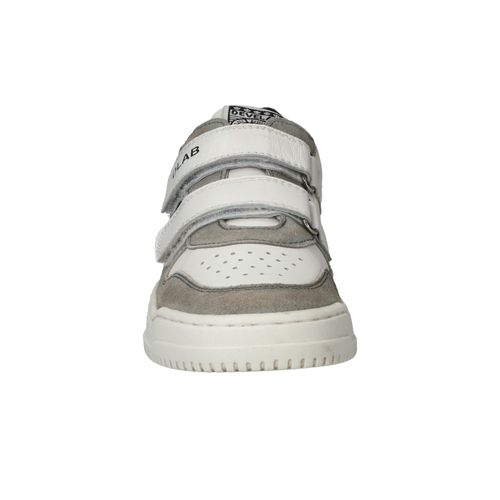 Stevige Develab sneaker voor jongens. De witte sneaker heeft suède kleurvlakken en zwarte details.