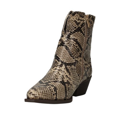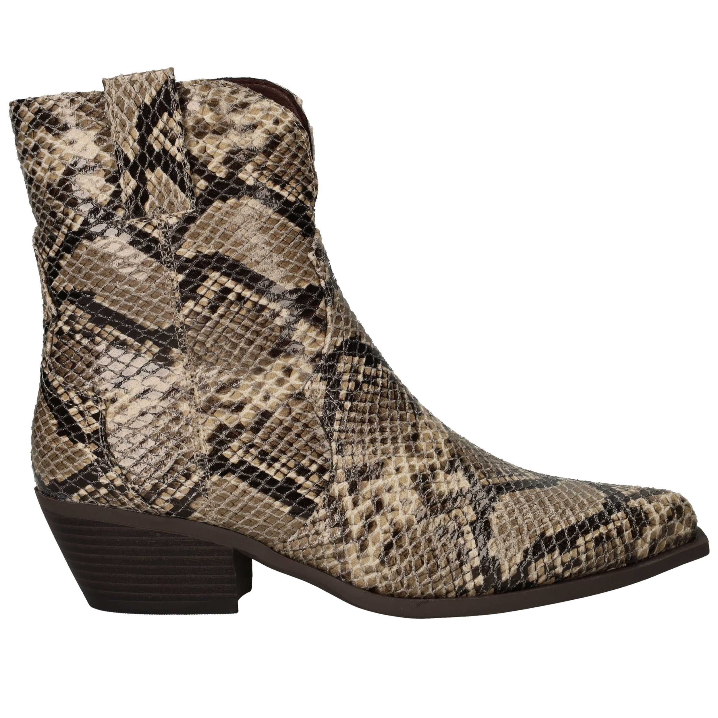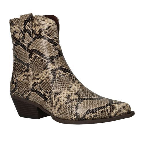 Deze opvallende DSTRCT enkellaarsjes voor dames zijn een echte blikvanger. Het hoogwaardige kunstleer met slangenprint zorgt voor een stoere en modieuze uitstraling. De neutrale beige en bruine tinten maken ze eenvoudig te combineren met zowel casual als geklede outfits. Dankzij voetbreedte G zitten deze laarsjes comfortabel en stevig om de voet.