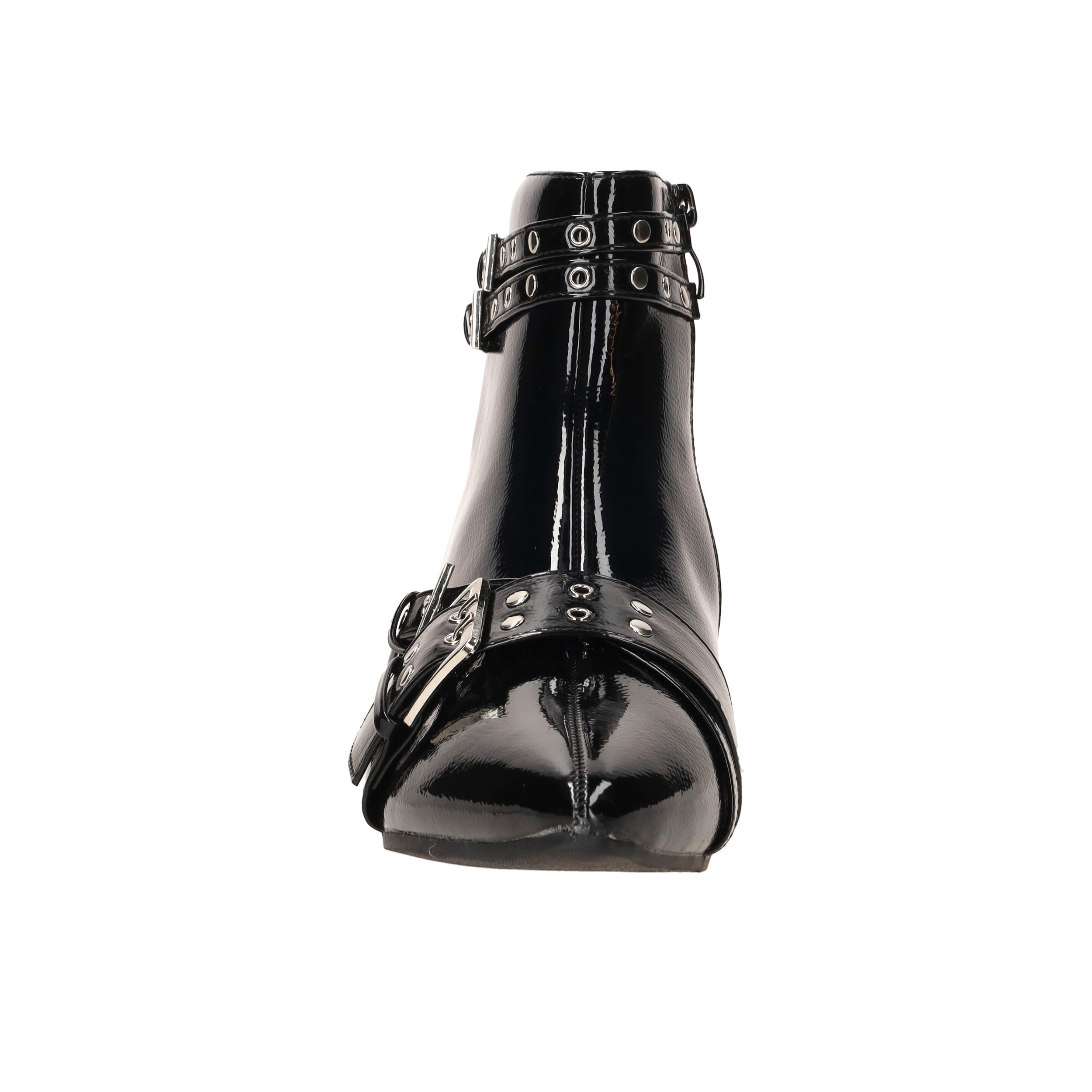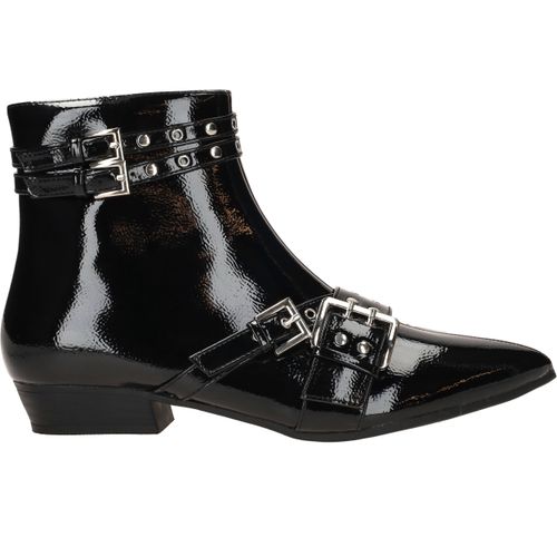 Deze stijlvolle DSTRCT enkellaars voor dames heeft een opvallend design met meerdere gespsluitingen die zorgen voor een stoere, modieuze uitstraling. Het bovenwerk is vervaardigd uit hoogwaardig kunstlak, wat de laars een glanzende en elegante look geeft. De voering van textiel en kunstleer zorgt voor extra comfort, zodat je deze enkellaars moeiteloos de hele dag kunt dragen. Perfect te combineren met zowel casual als meer geklede outfits.