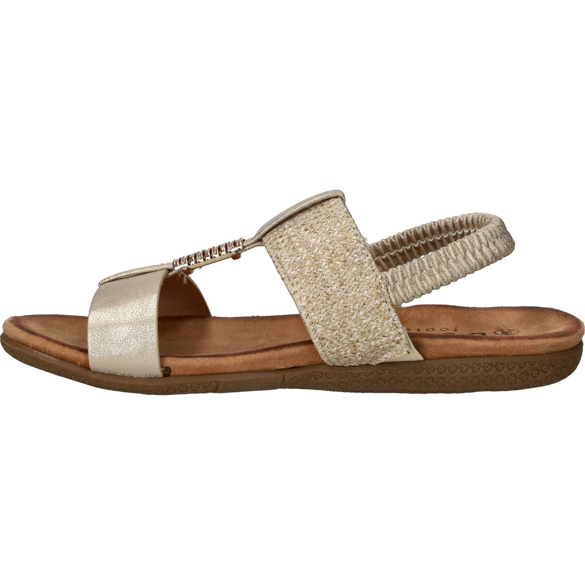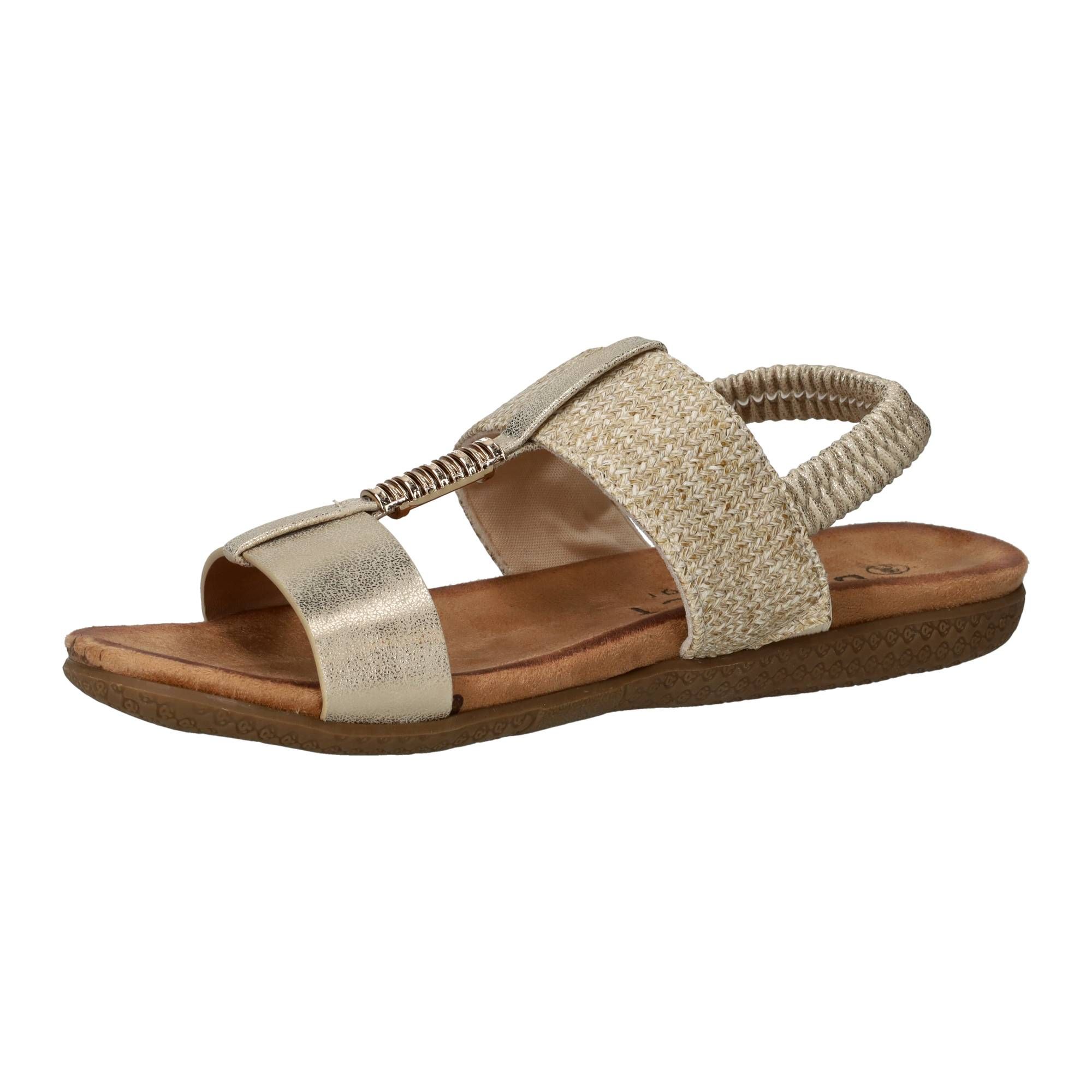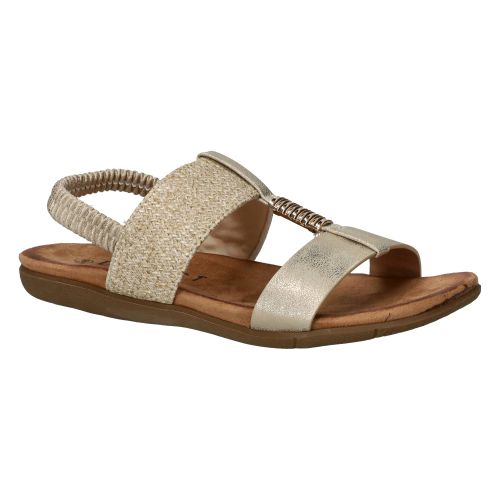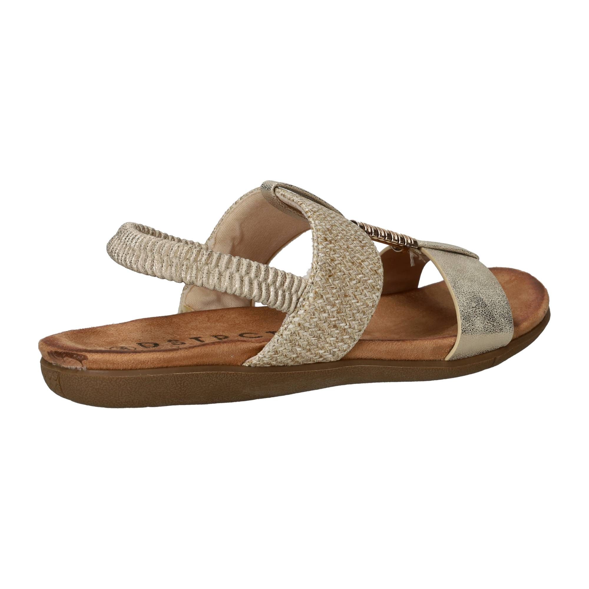 Deze stijlvolle sandalen van DSTRCT combineren comfort met een modieuze uitstraling. De mix van zacht textiel en subtiel glanzend kunstleer geeft deze sandaal een verfijnde look. Dankzij de elastische band trek je ze makkelijk aan, en het zachte voetbed zorgt voor aangenaam loopcomfort. Perfect voor dames die stijl en gemak zoeken op zomerse dagen.