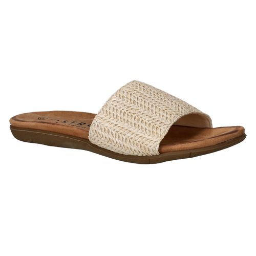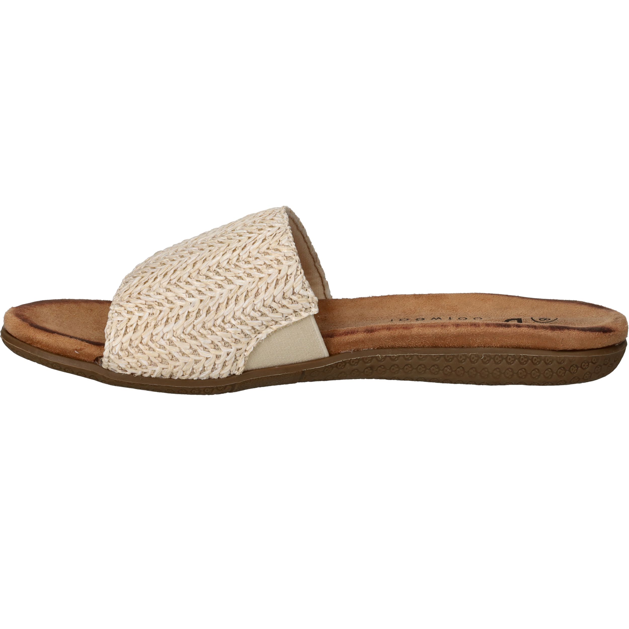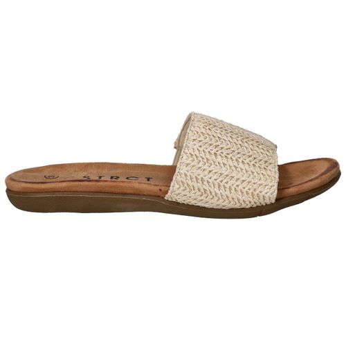 Met deze beige slippers van DSTRCT ben je helemaal klaar voor de zomer. Het gevlochten textiel zorgt voor een natuurlijke uitstraling en voelt zacht aan op de huid. Dankzij het comfortabele voetbed en het gemakkelijke instapmodel draag je deze slippers met plezier tijdens warme dagen. Perfect voor dames die houden van comfort met een vleugje bohemian stijl.