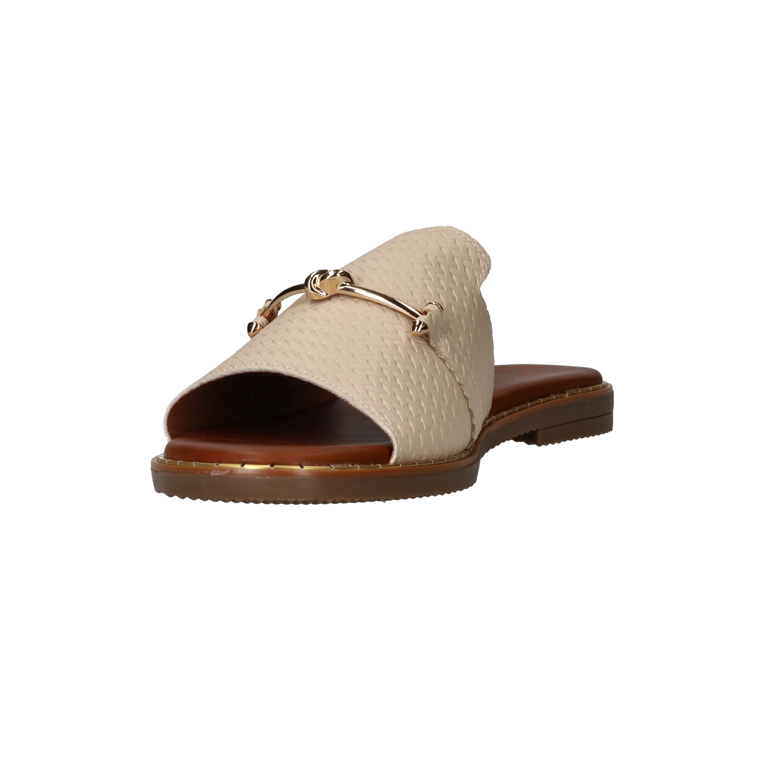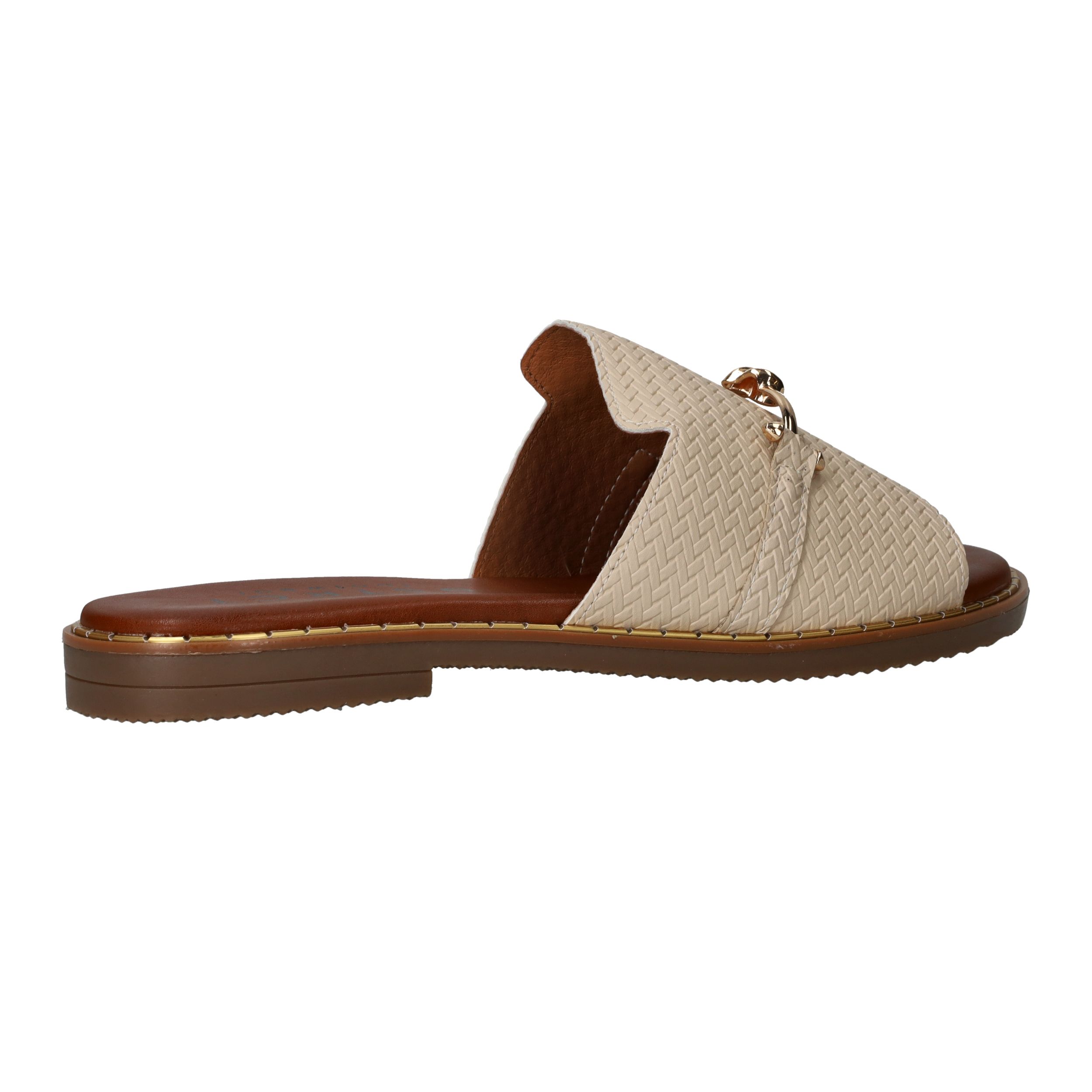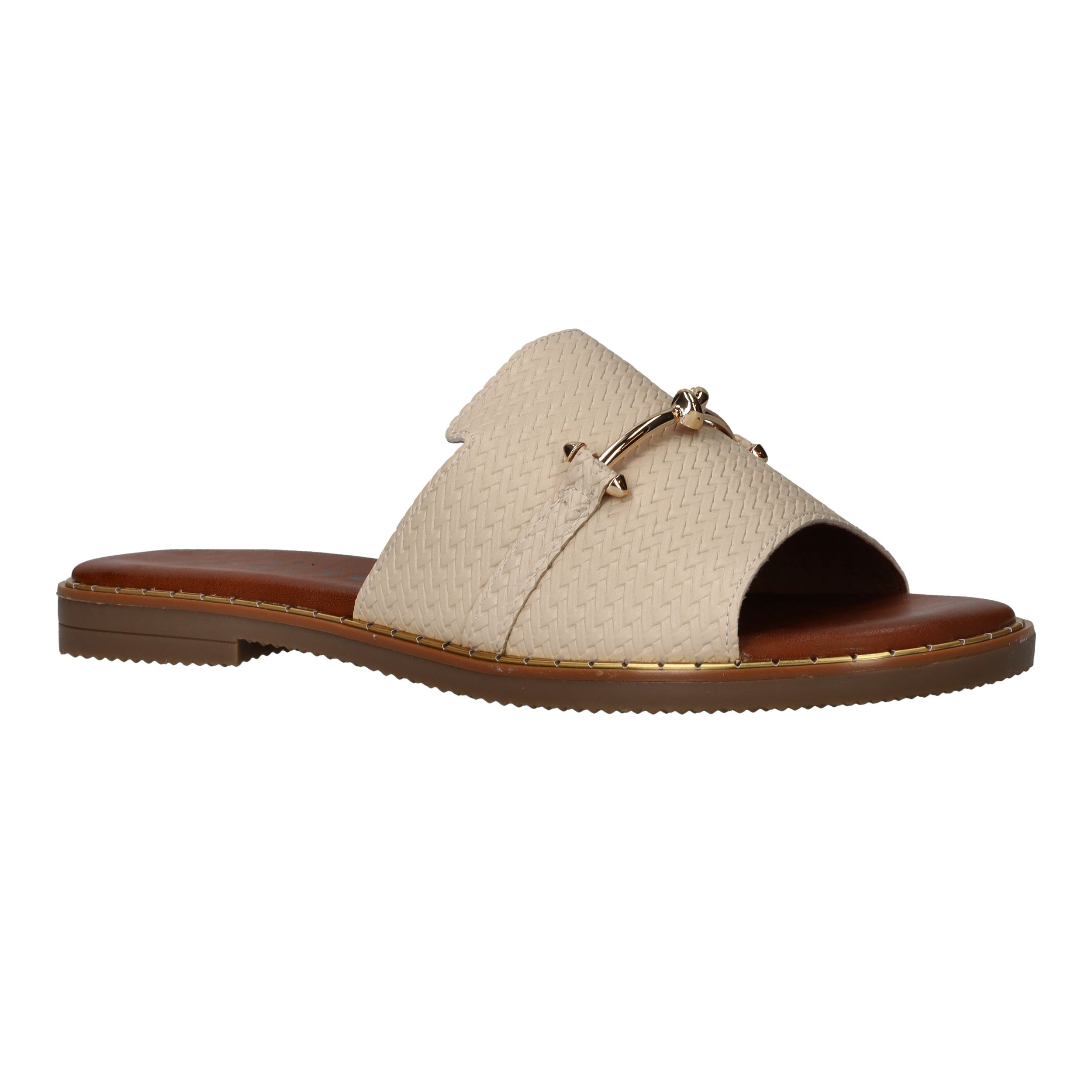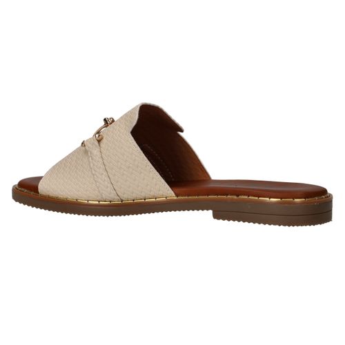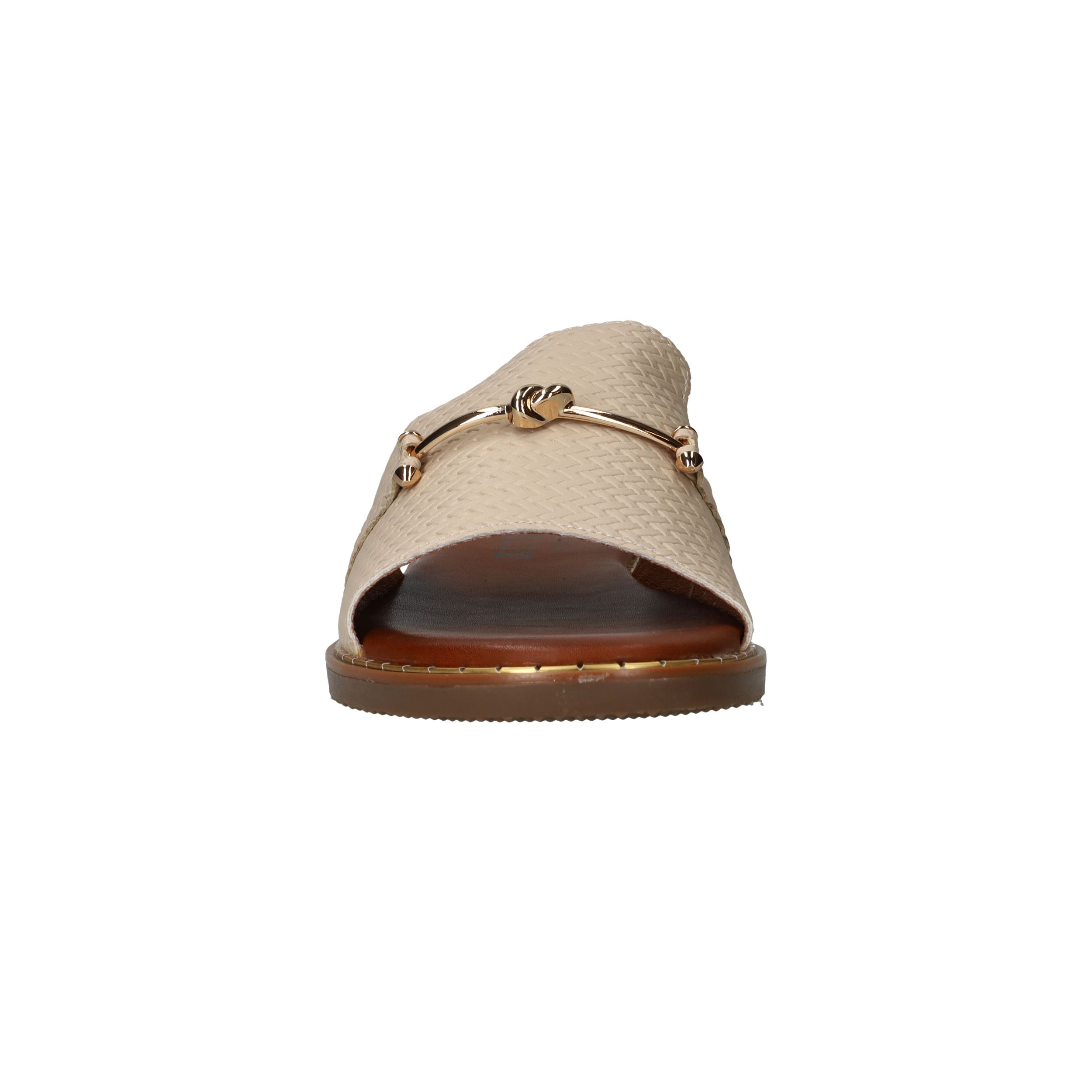 Mooie beige DSTRCT slipper met elegante gouden schakel met sierknoop.