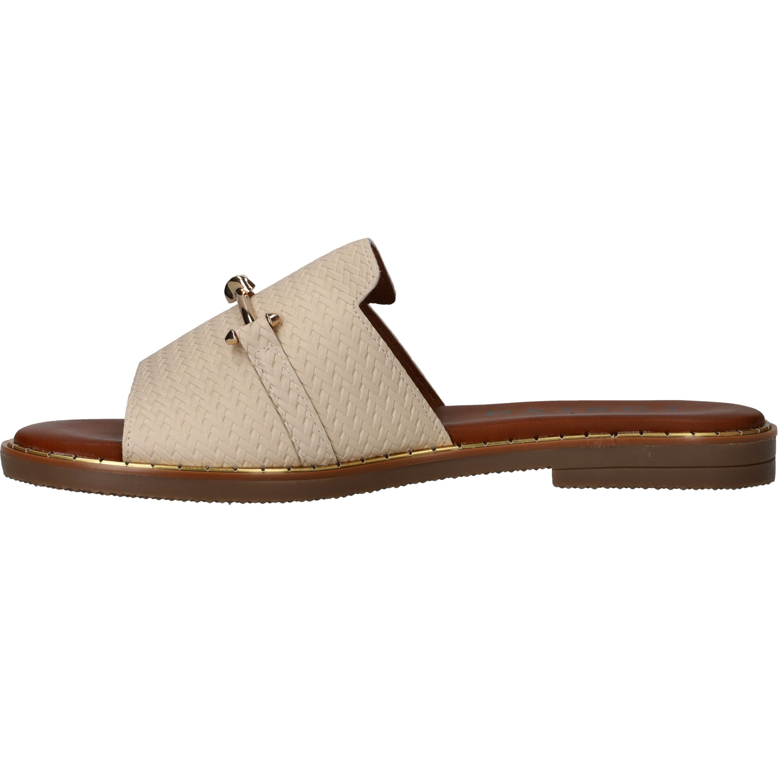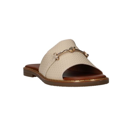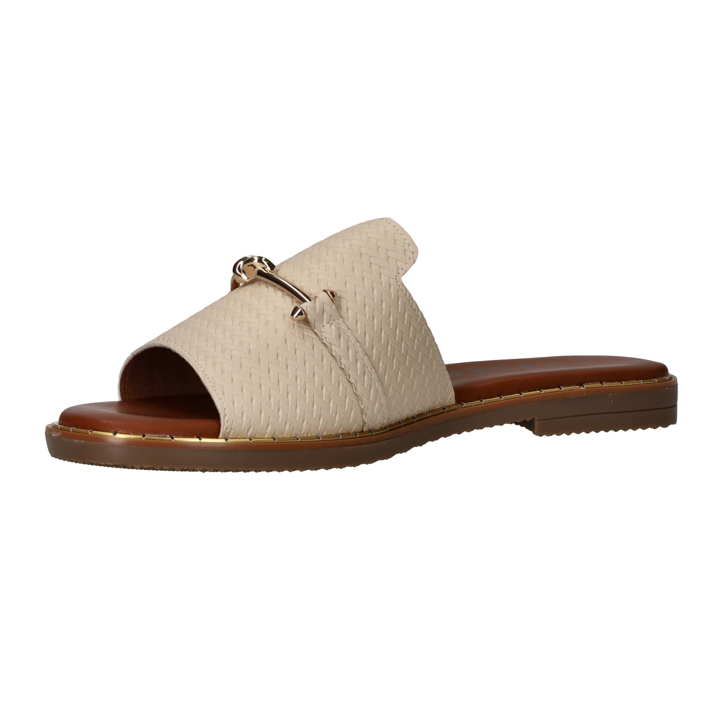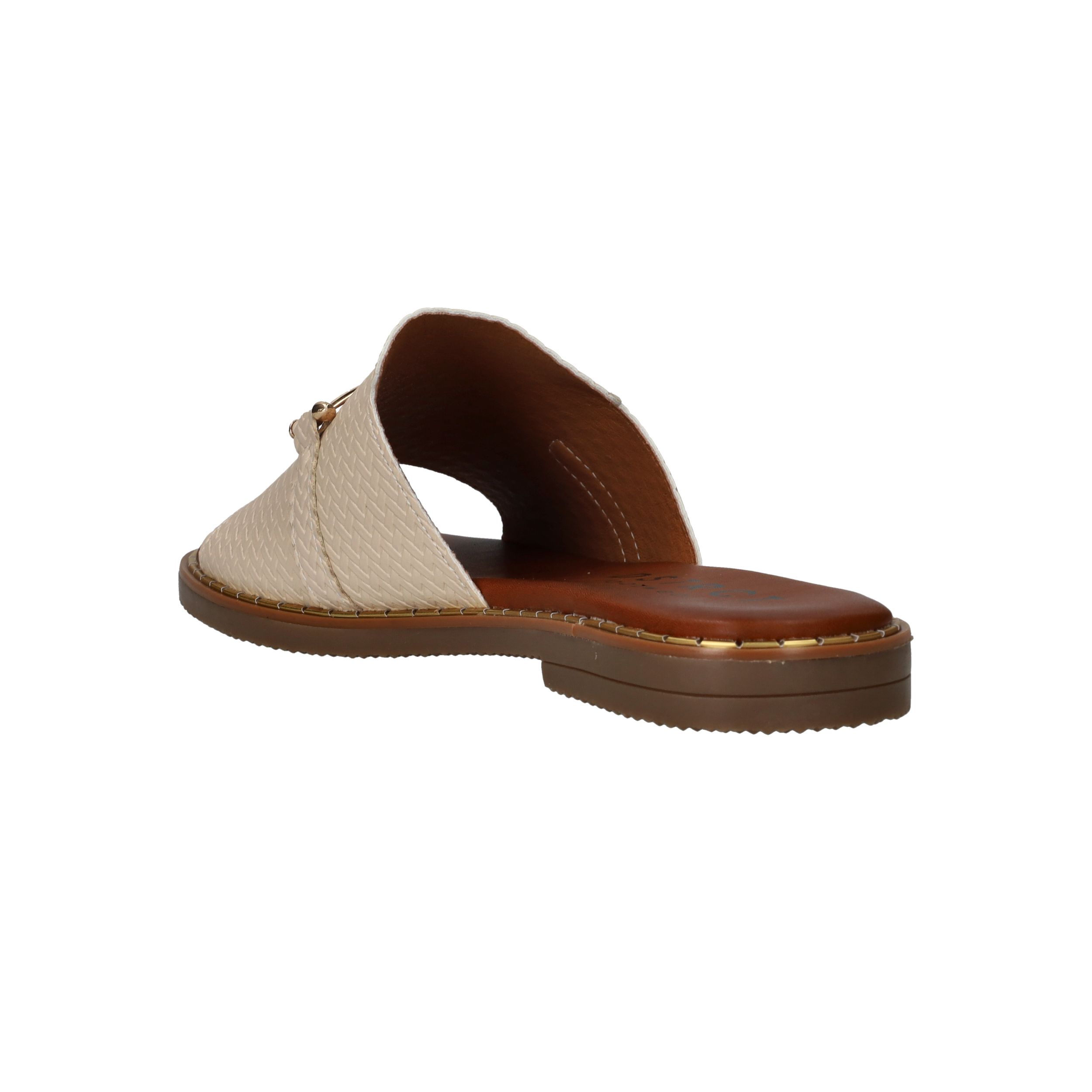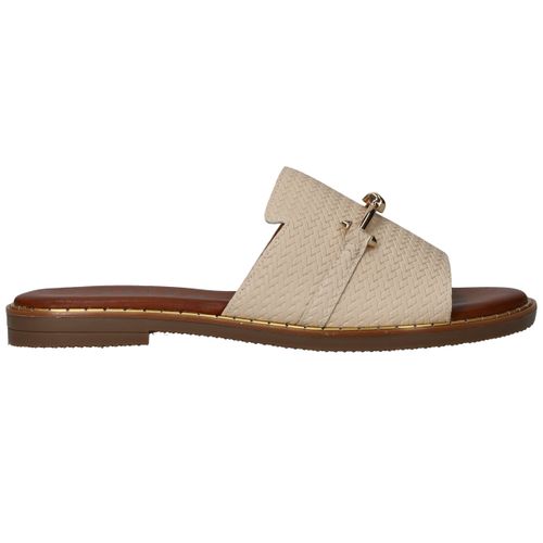 Mooie beige DSTRCT slipper met elegante gouden schakel met sierknoop.