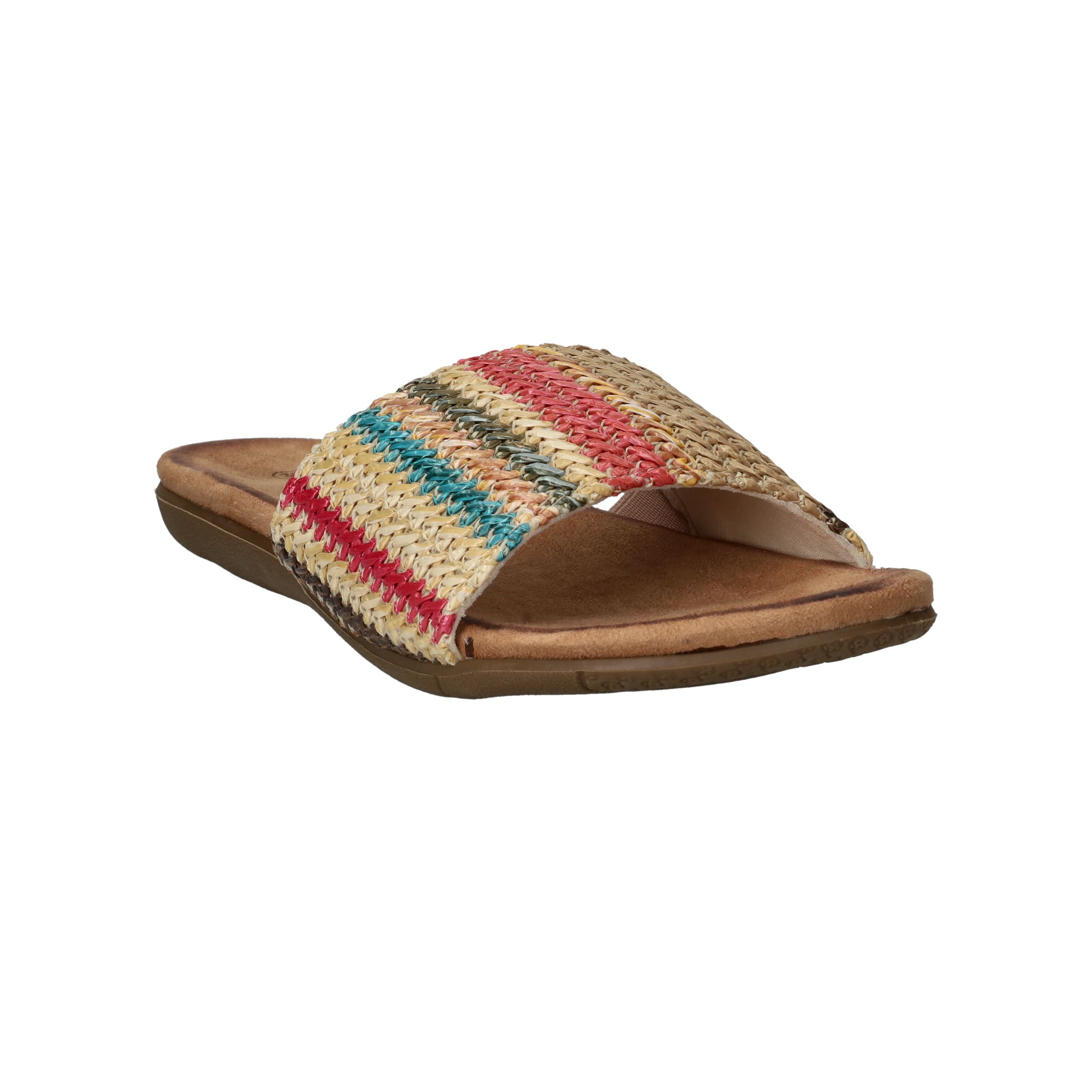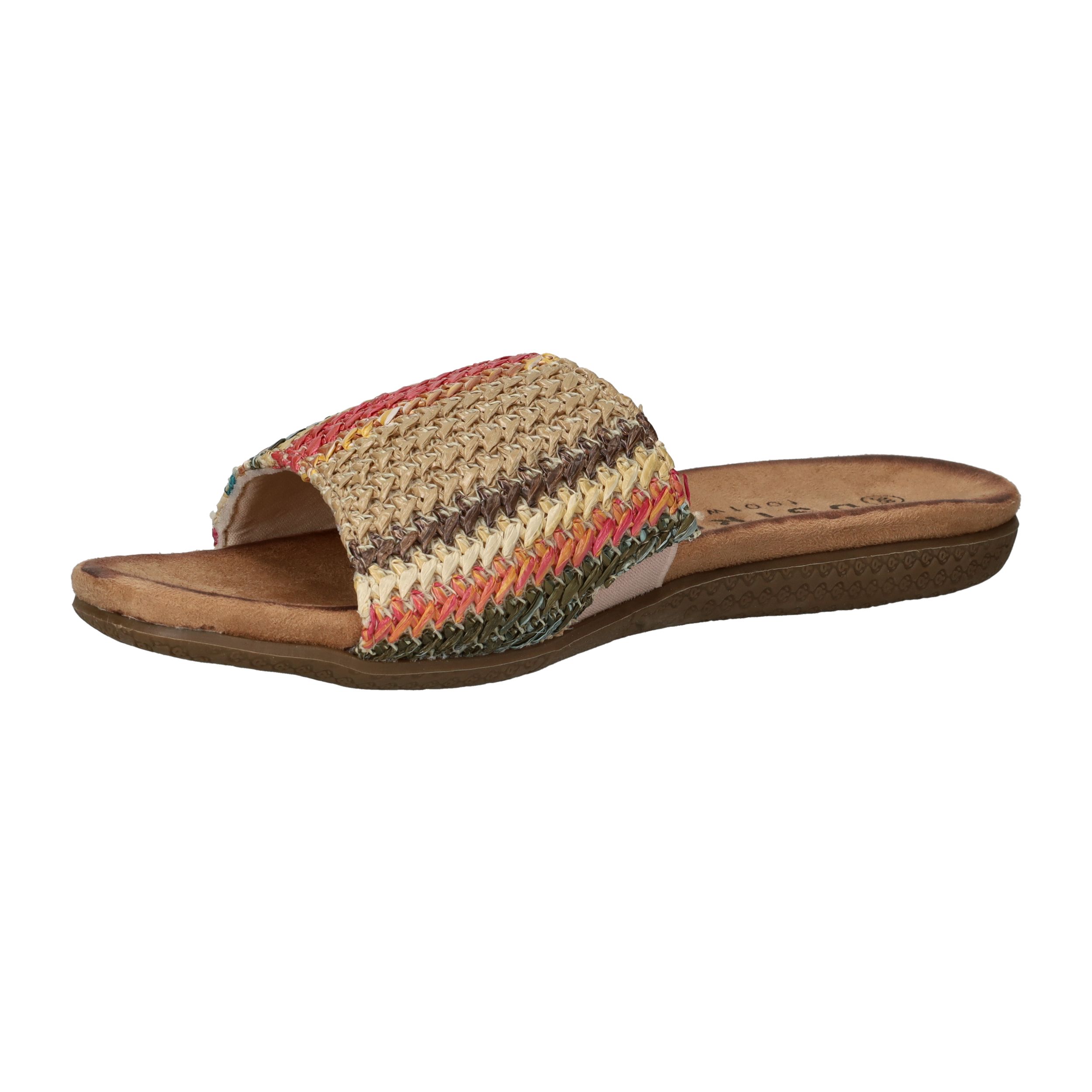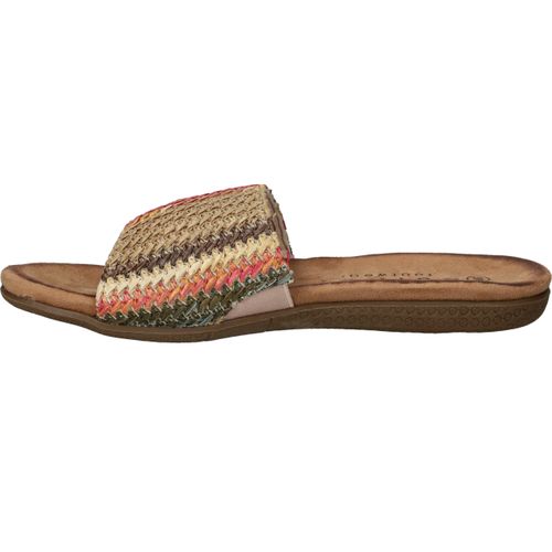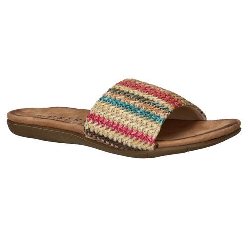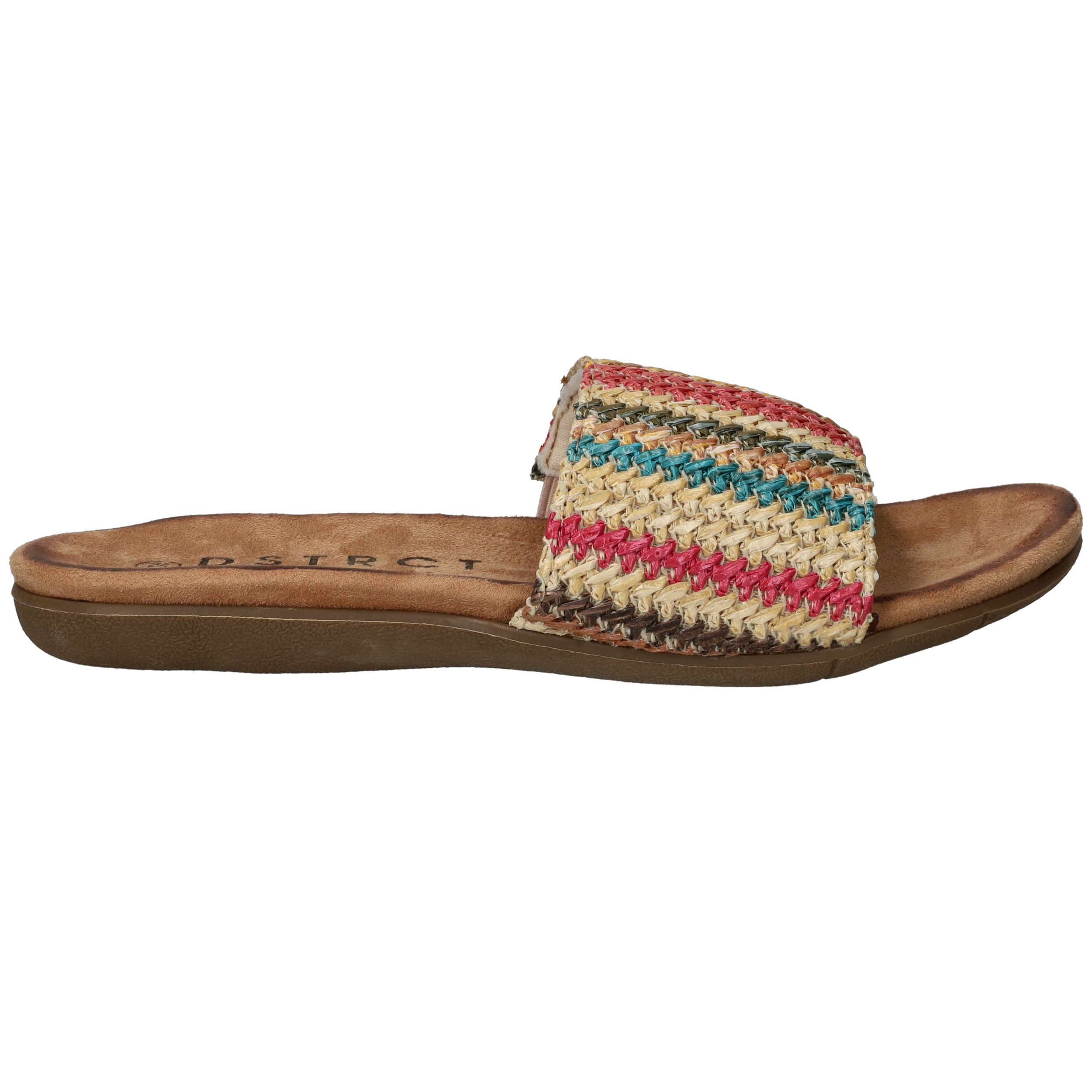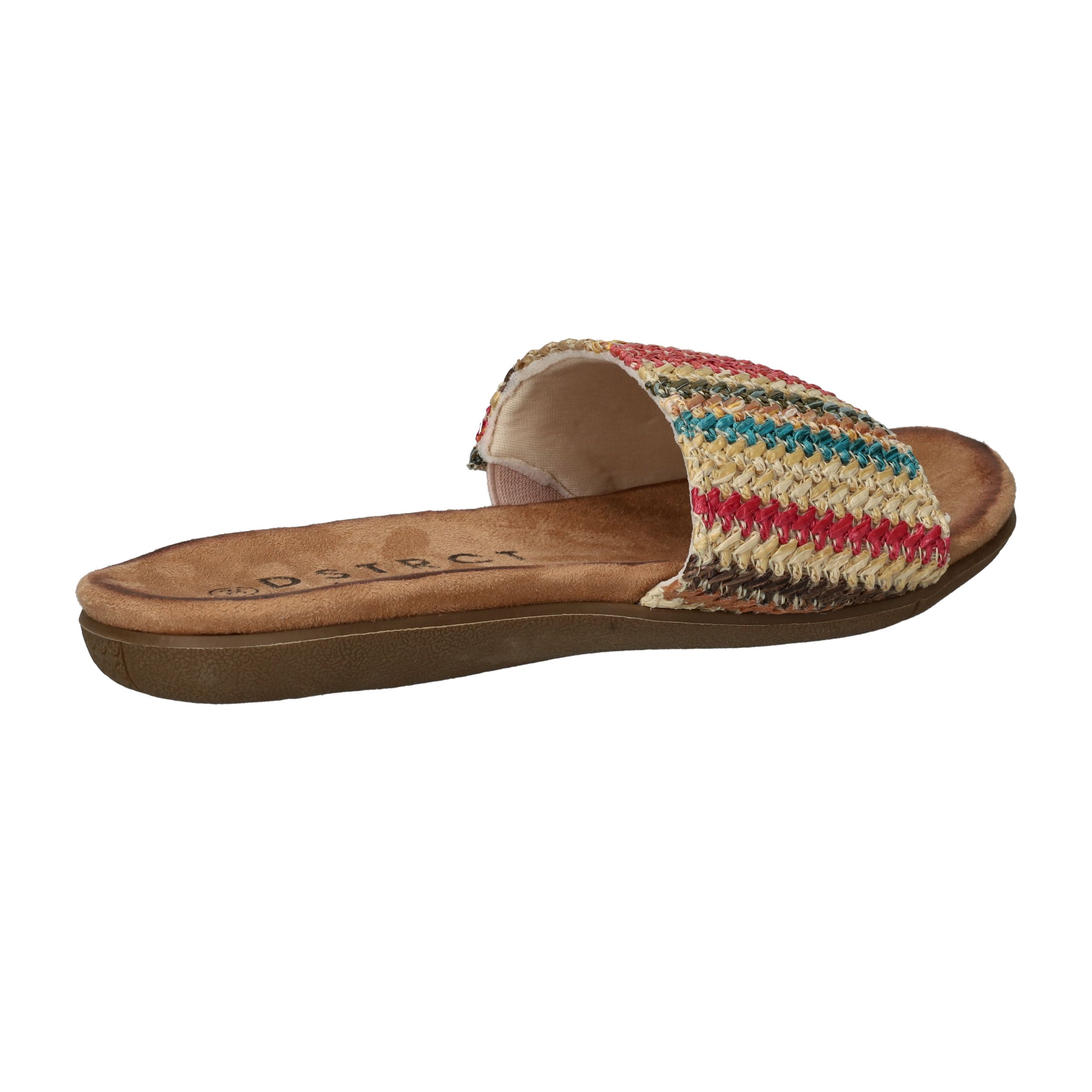 Deze kleurrijke slippers van DSTRCT zijn een vrolijke toevoeging aan jouw zomergarderobe. De zomerse streeppatronen in frisse kleuren en het luchtige textiel maken deze slippers ideaal voor warme dagen. Dankzij het comfortabele voetbed en het makkelijke instapmodel draag je ze moeiteloos van ’s ochtends vroeg tot zonsondergang. Perfect voor dames die comfort en kleur willen combineren.
