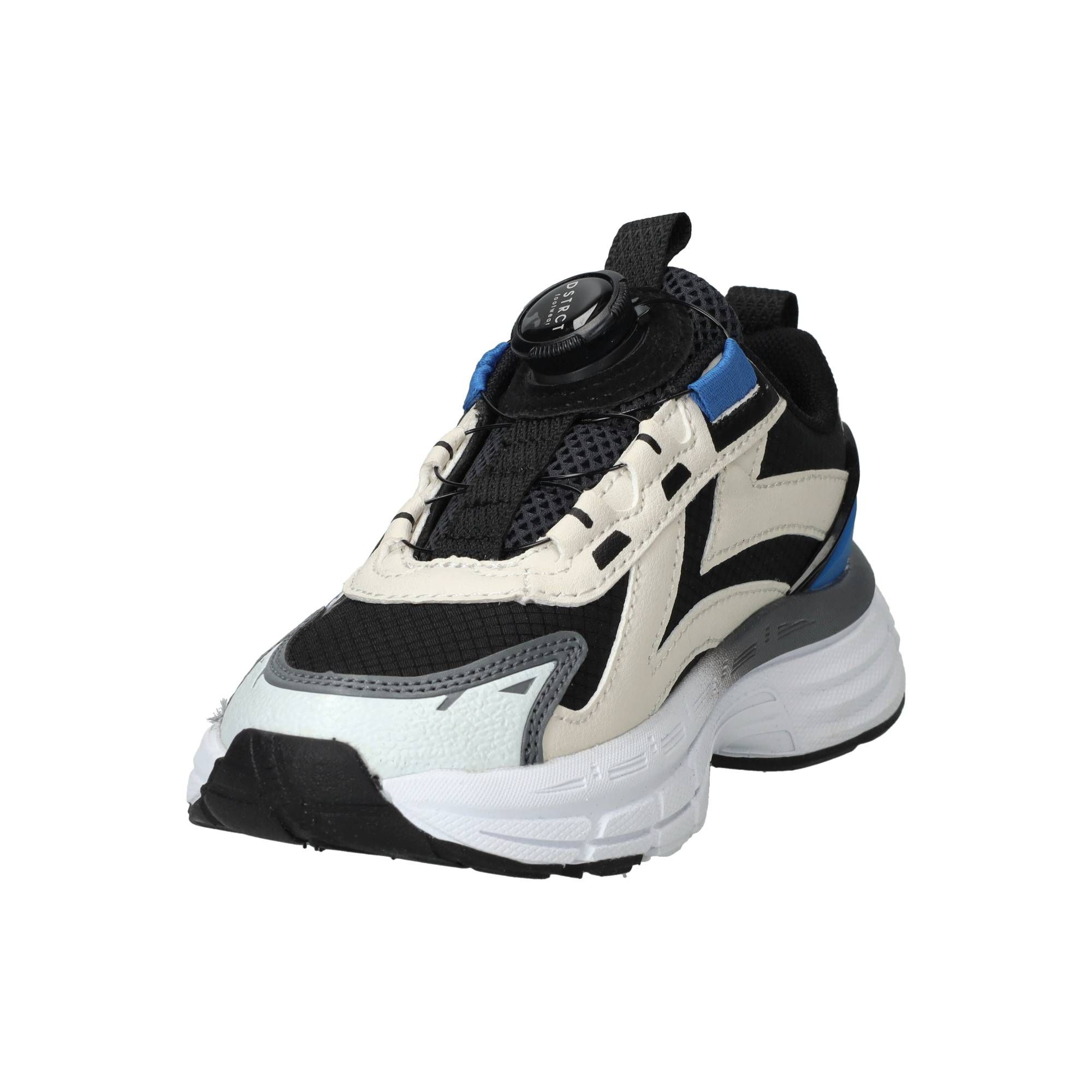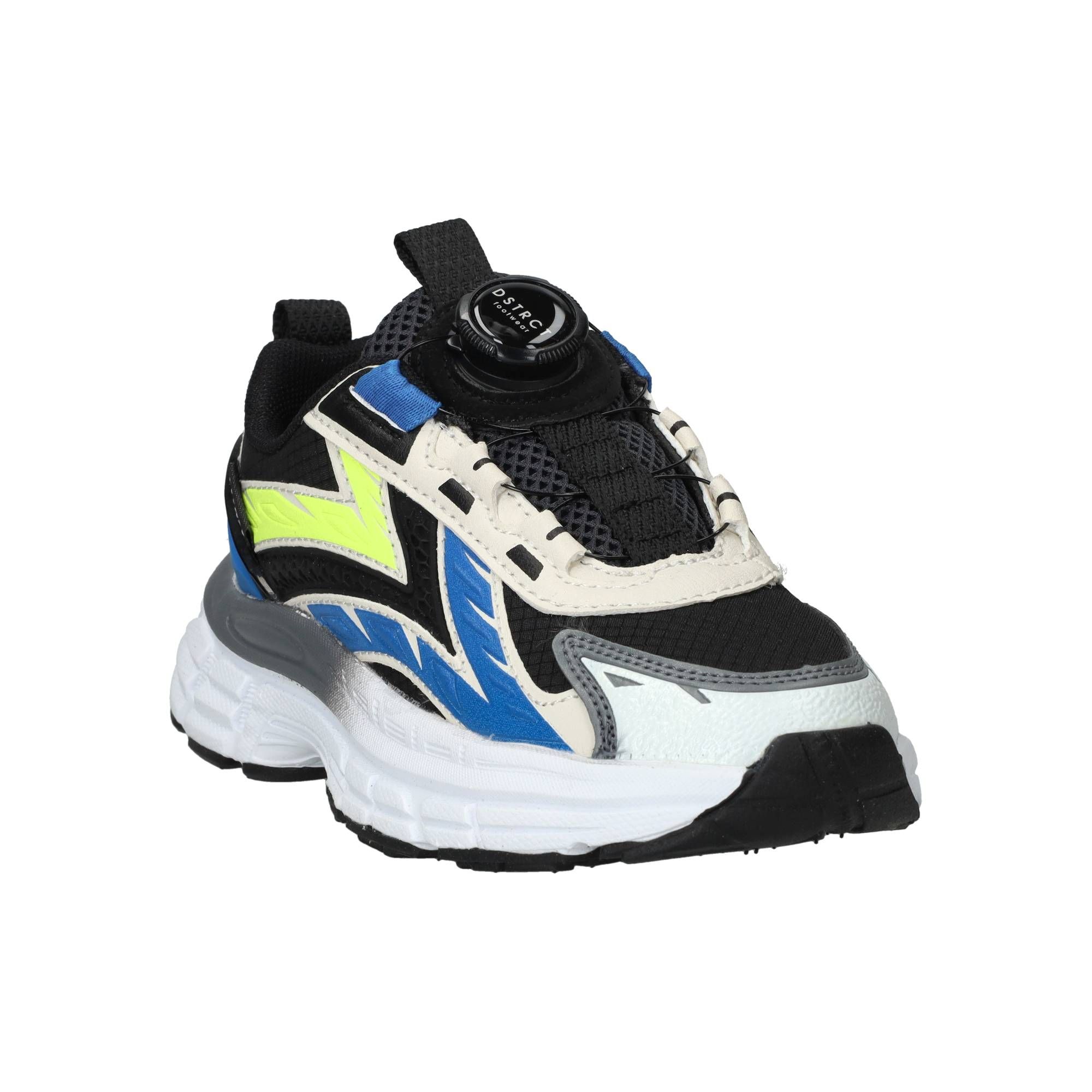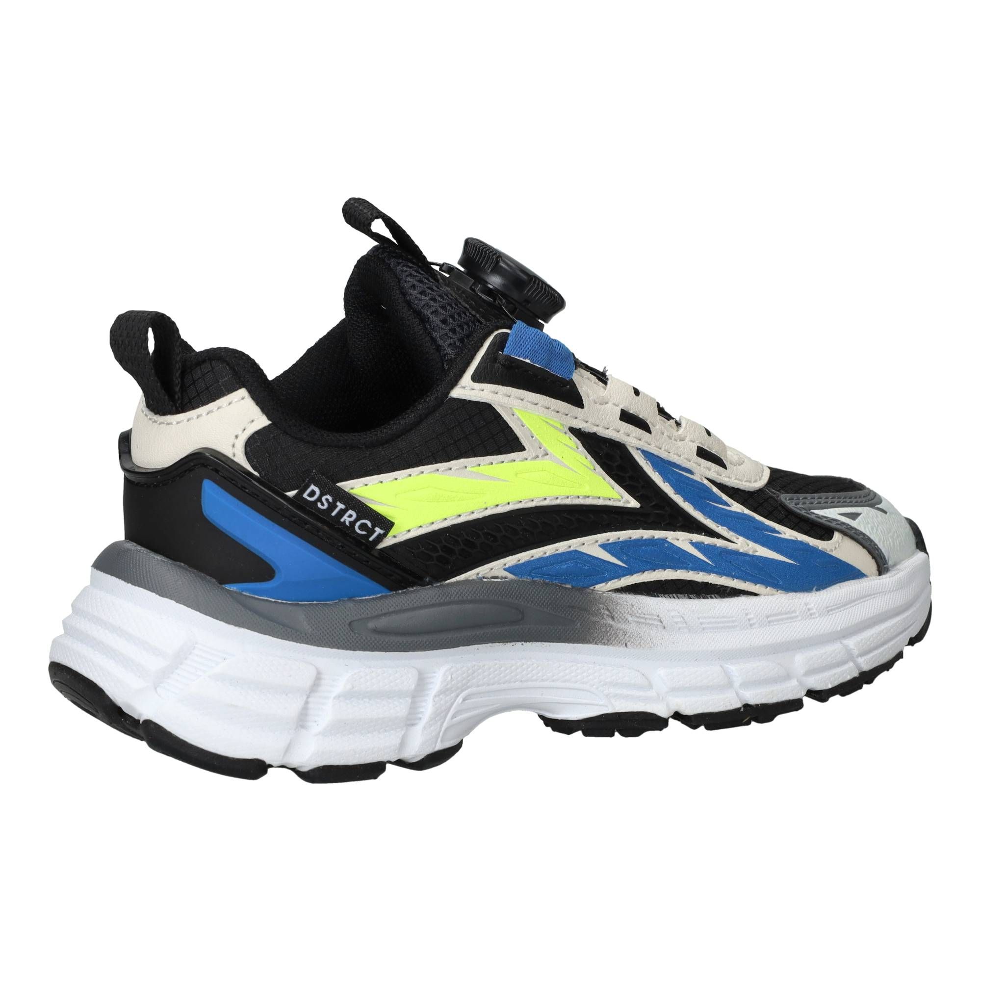 De jongens sneakers van DSTRCT in het zwart zijn een comfortabele keuze voor elke dag. Deze schoenen hebben een stoere, moderne uitstraling dankzij de combinatie van kunstleer en textiel in diverse zwarttinten. Ze zijn ontworpen om de hele dag plezier te bieden en voelen licht aan de voet. De schoen biedt een prettige ondersteuning rond de middenvoet, wat bijdraagt aan een stabiel en vertrouwd loopgevoel tijdens het rennen en spelen. De zachte binnenvoering zorgt ervoor dat de voet comfortabel zit en helpt bij een goede drukverdeling.- Deze sneakers sluit je gemakkelijk met een druksluiting, zodat de schoen goed om de voet blijft zitten.