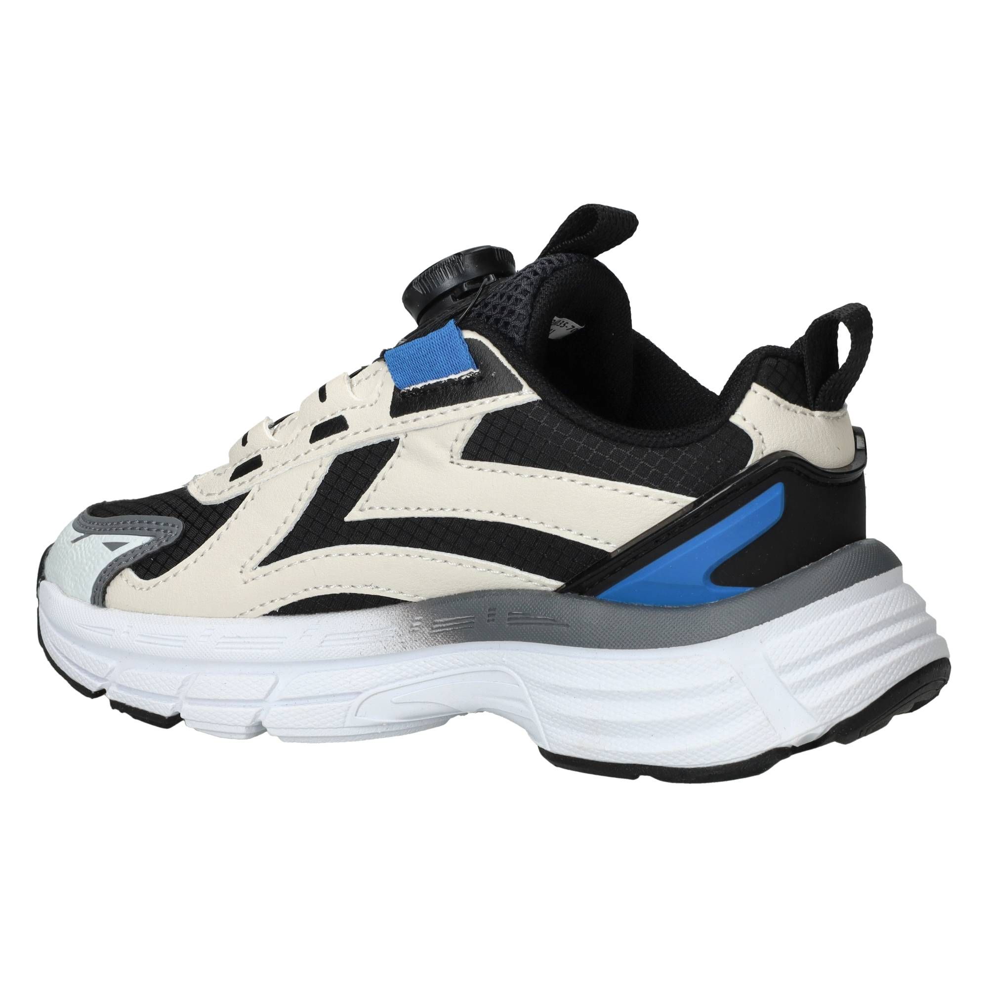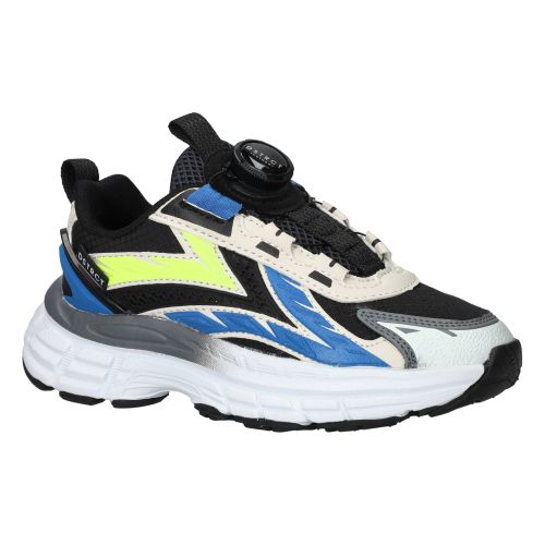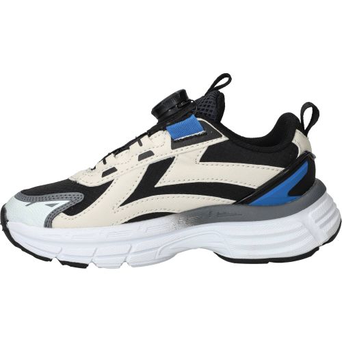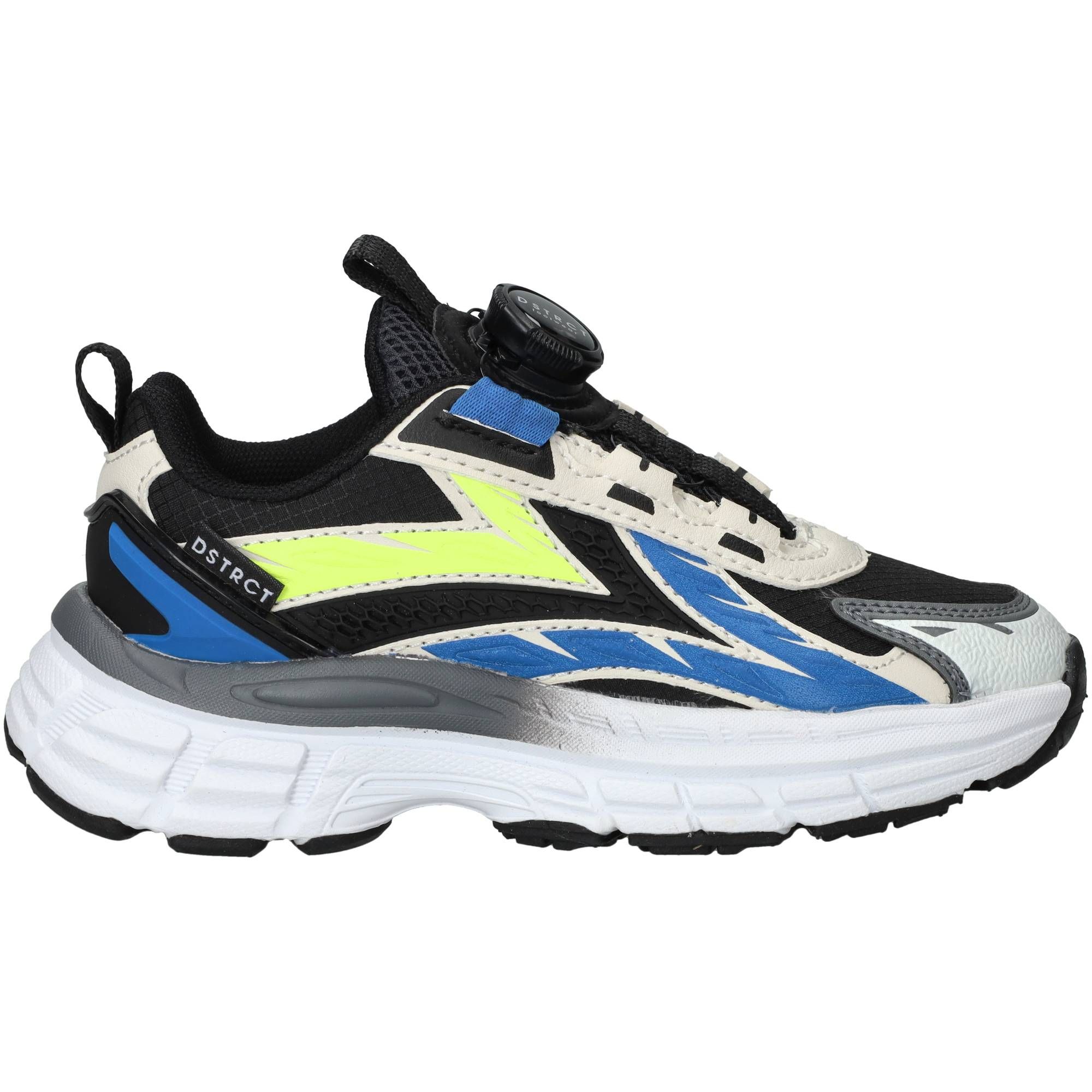 De jongens sneakers van DSTRCT in het zwart zijn een comfortabele keuze voor elke dag. Deze schoenen hebben een stoere, moderne uitstraling dankzij de combinatie van kunstleer en textiel in diverse zwarttinten. Ze zijn ontworpen om de hele dag plezier te bieden en voelen licht aan de voet. De schoen biedt een prettige ondersteuning rond de middenvoet, wat bijdraagt aan een stabiel en vertrouwd loopgevoel tijdens het rennen en spelen. De zachte binnenvoering zorgt ervoor dat de voet comfortabel zit en helpt bij een goede drukverdeling.- Deze sneakers sluit je gemakkelijk met een druksluiting, zodat de schoen goed om de voet blijft zitten.