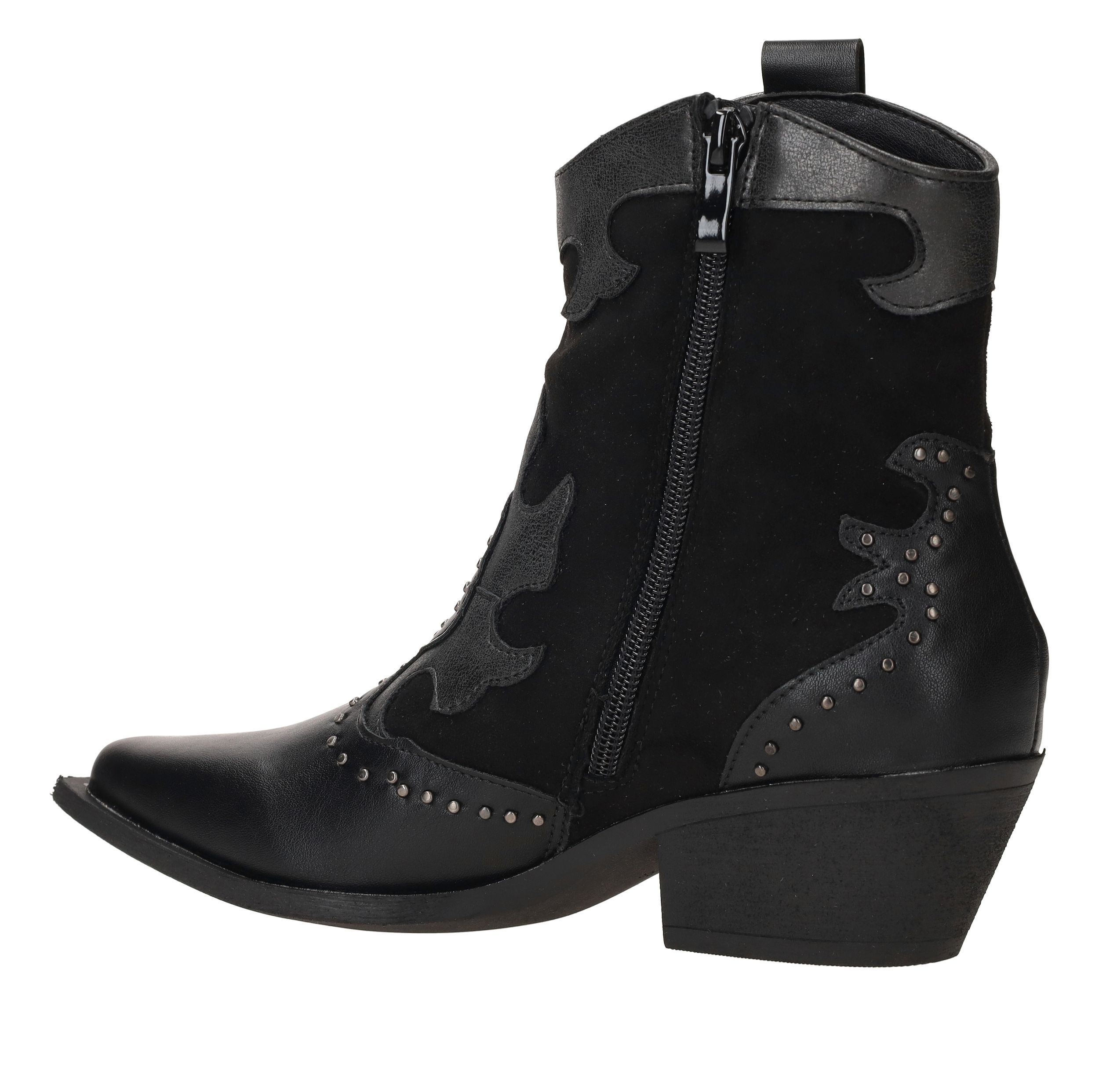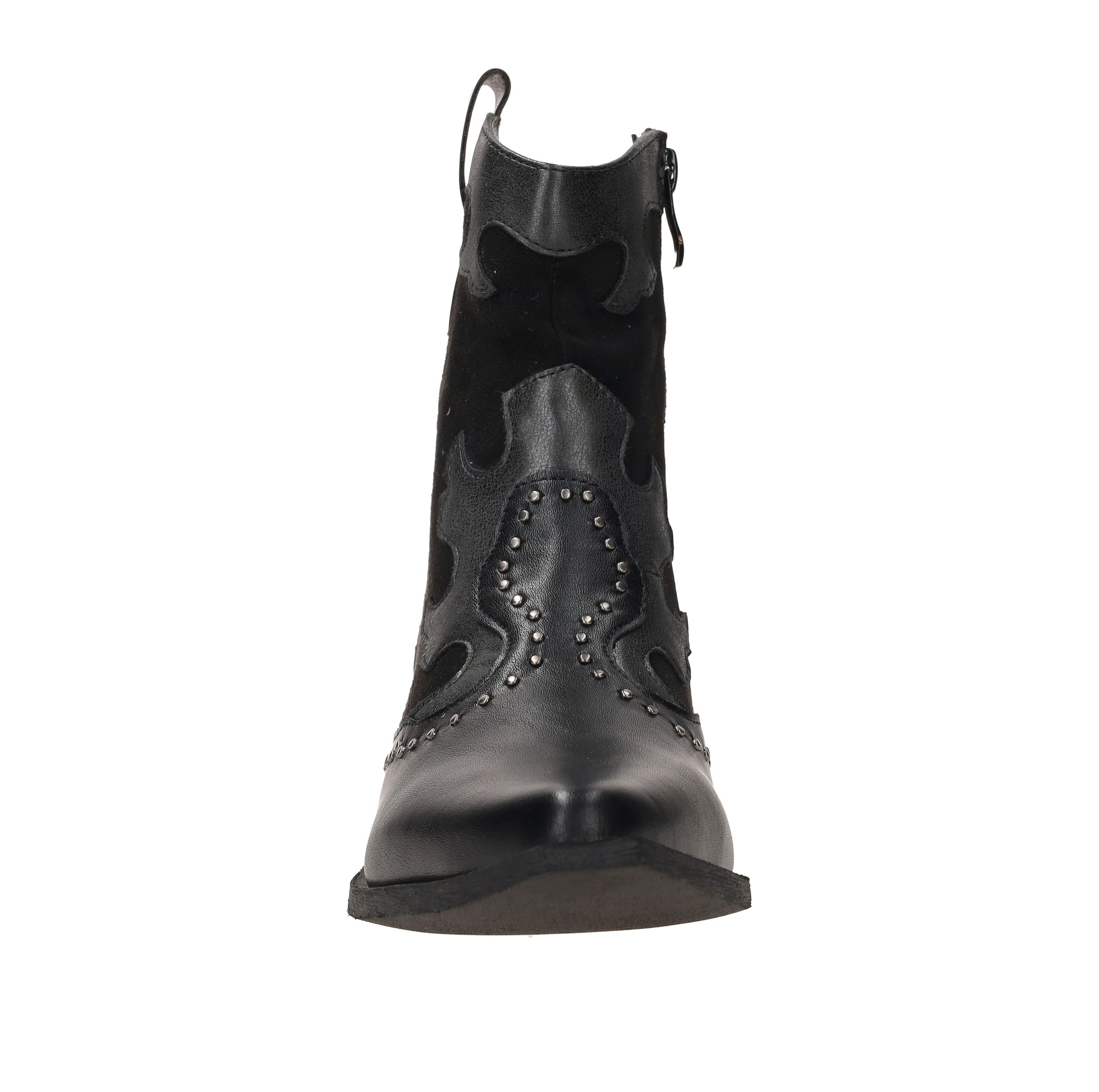 Stoere zwarte DSTRCT enkellaars. De westernlaars is afgewerkt met studs en mooi sierstiksel.