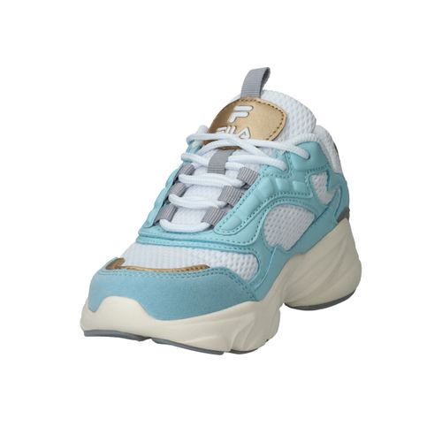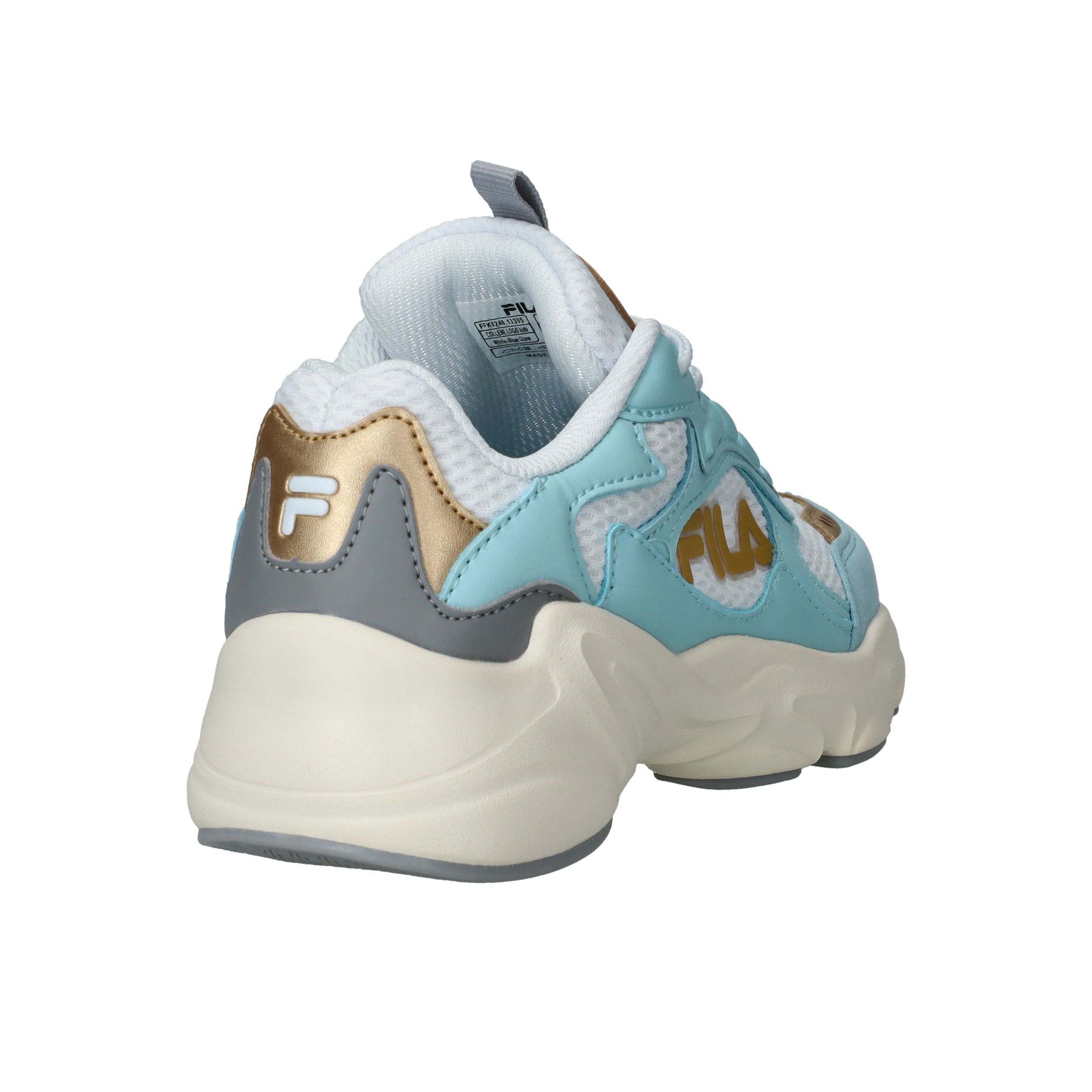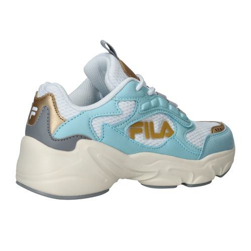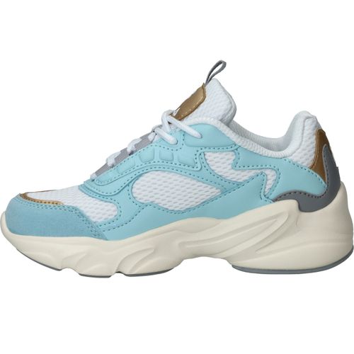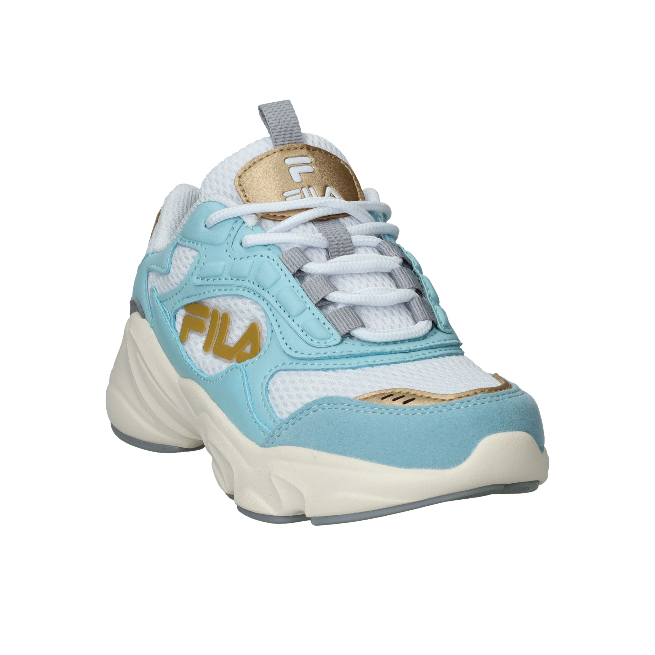 Geef je outfit een frisse touch met de Fila Collene sneakers. Deze meisjesschoenen in een lichtblauwe met witte en gouden accenten zijn vervaardigd uit een combinatie van synthetisch materiaal en textiel, wat zorgt voor een lichtgewicht en comfortabele pasvorm. De Collene sneakers combineren een retro design met moderne details, waardoor ze perfect zijn voor dagelijks gebruik. Met deze sneakers loop je niet alleen comfortabel, maar maak je ook een fashion statement.