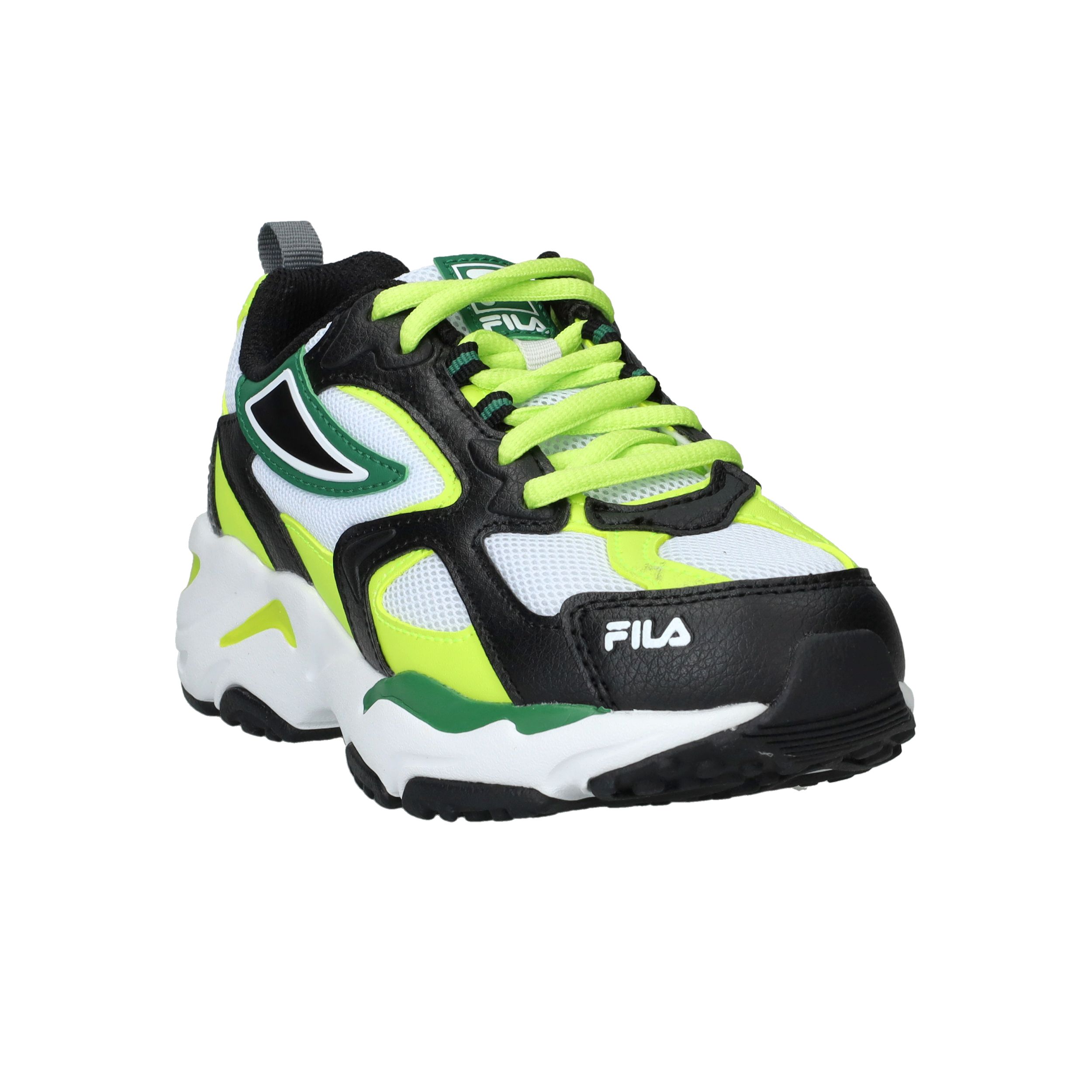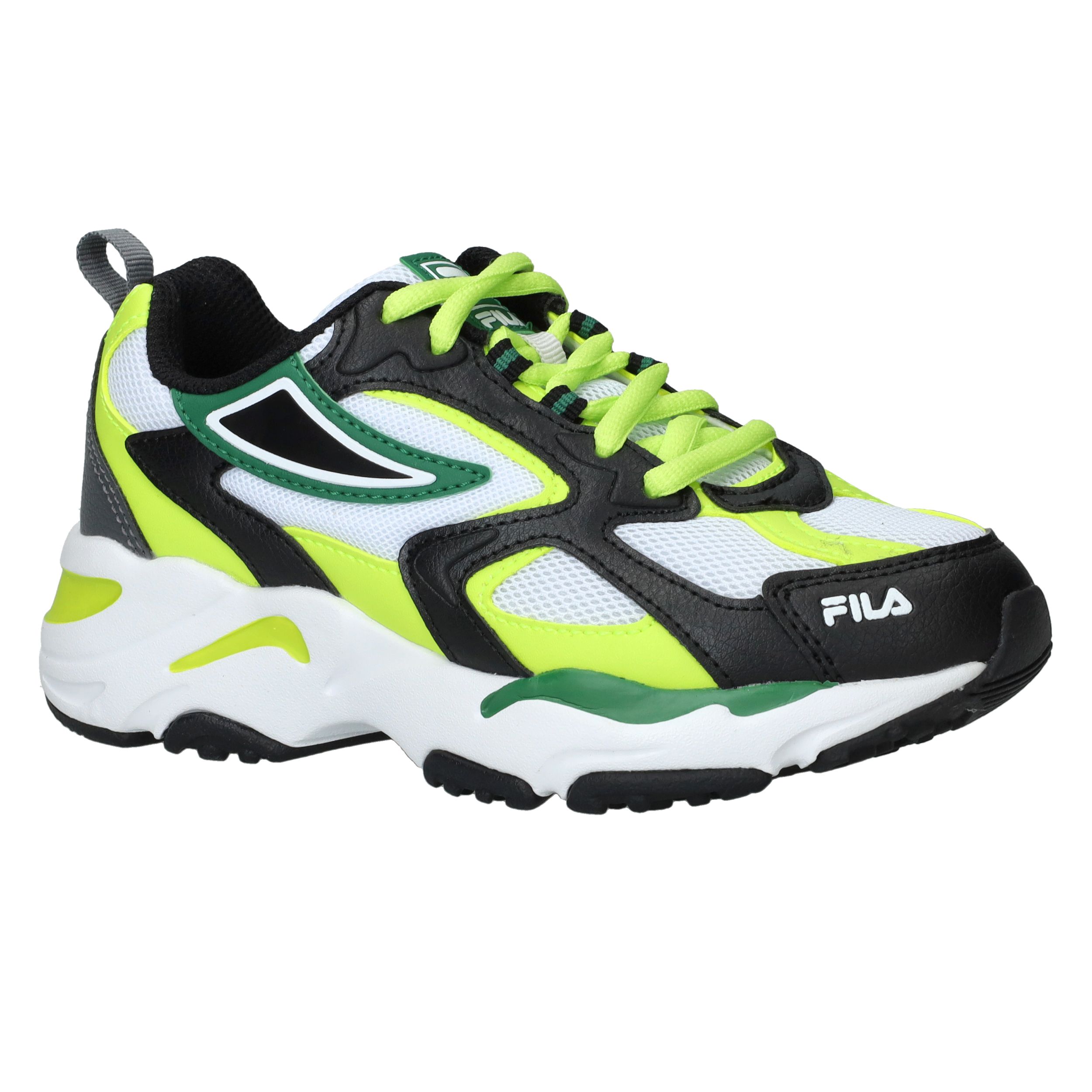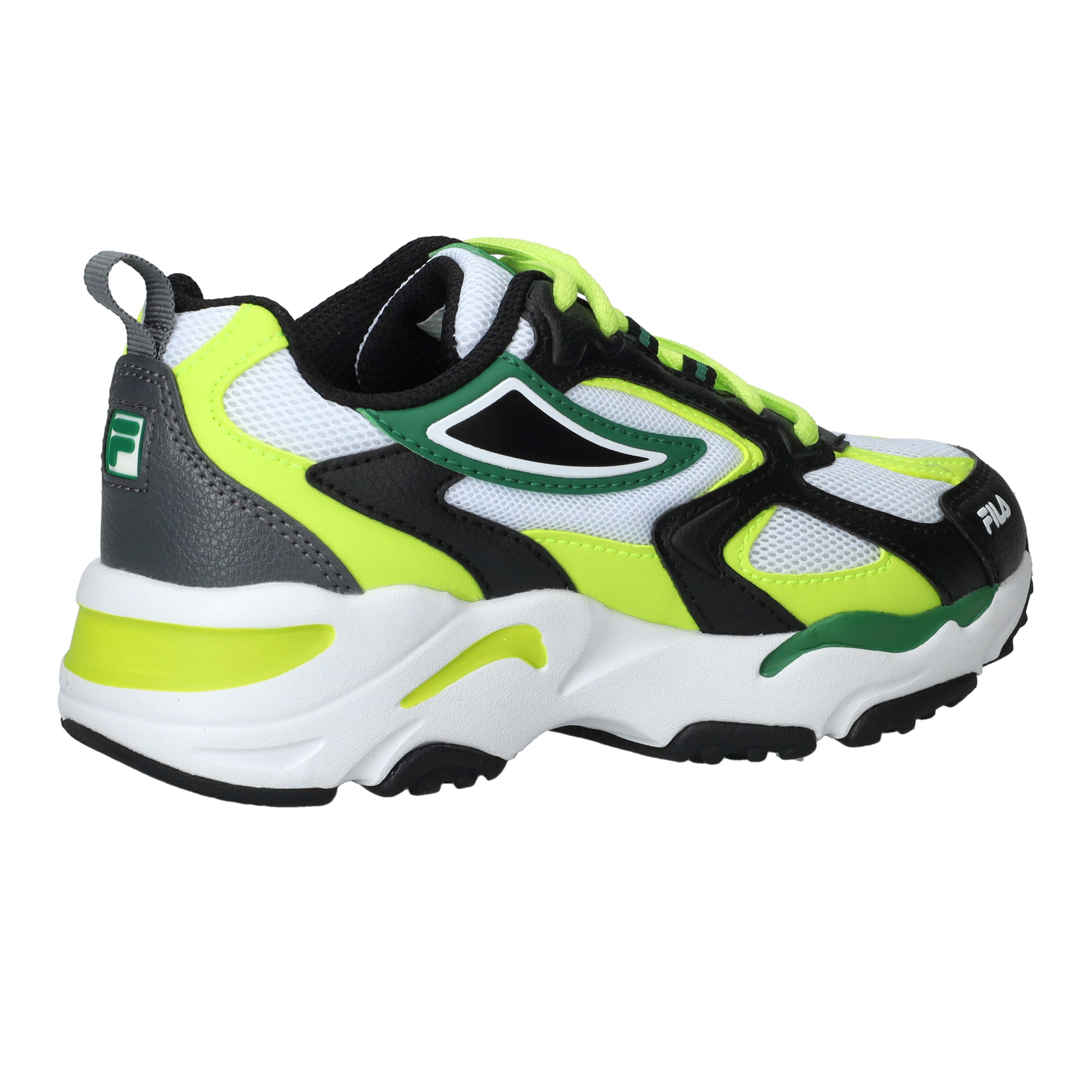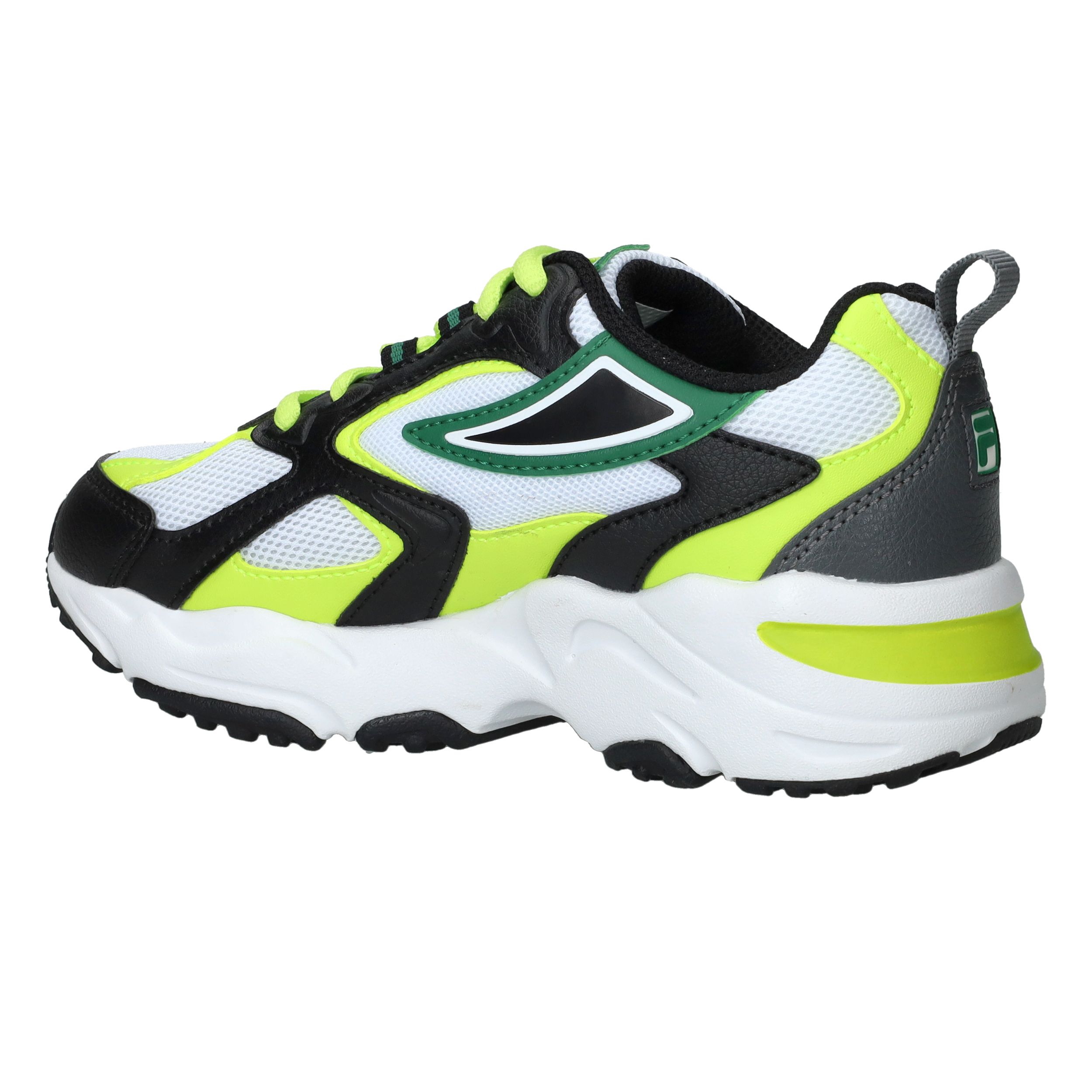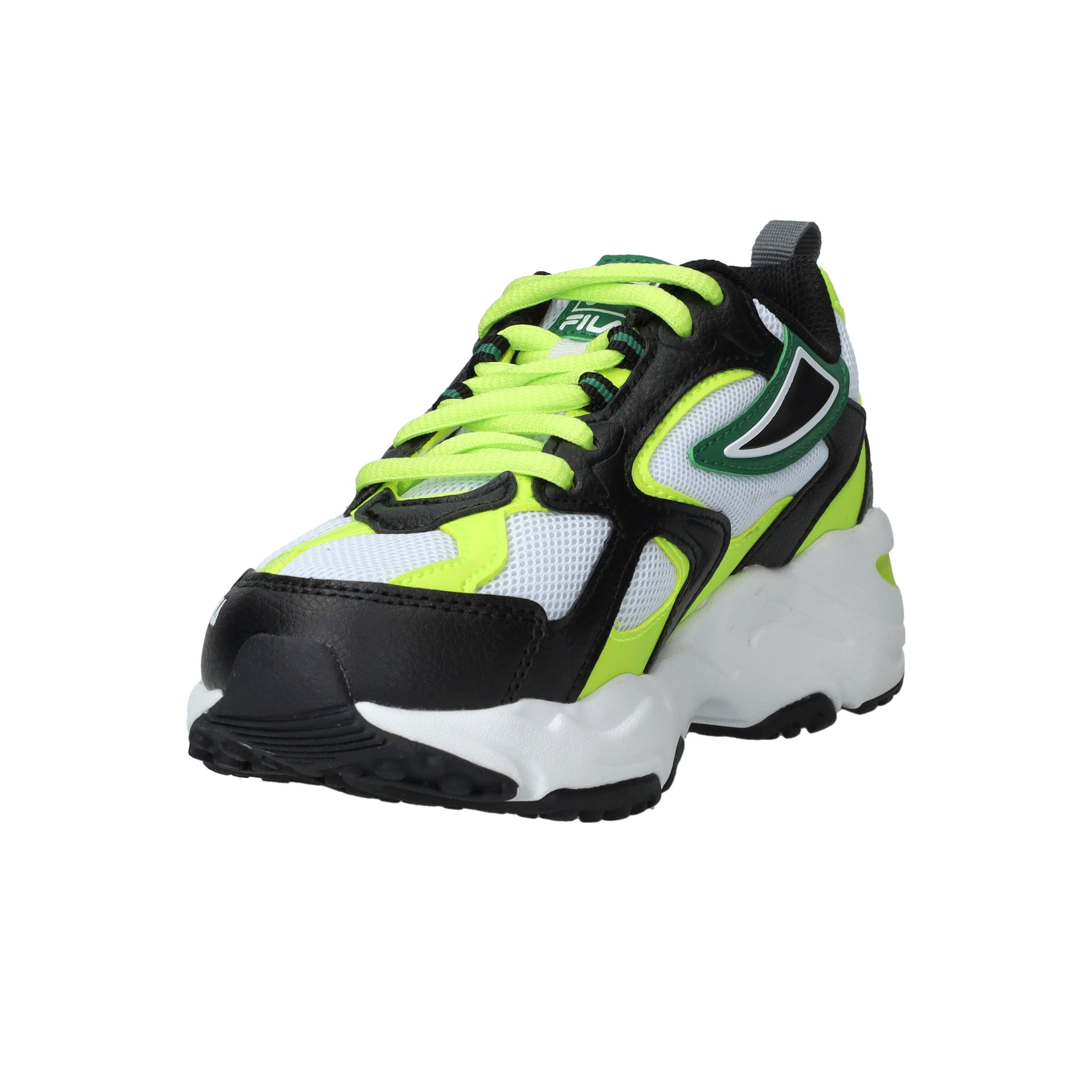 Sportieve Fila CR-CW02 Ray Tracer sneaker voor jongens. De sneaker heeft een mooi kleurenpalet van zwart, wit en groen.