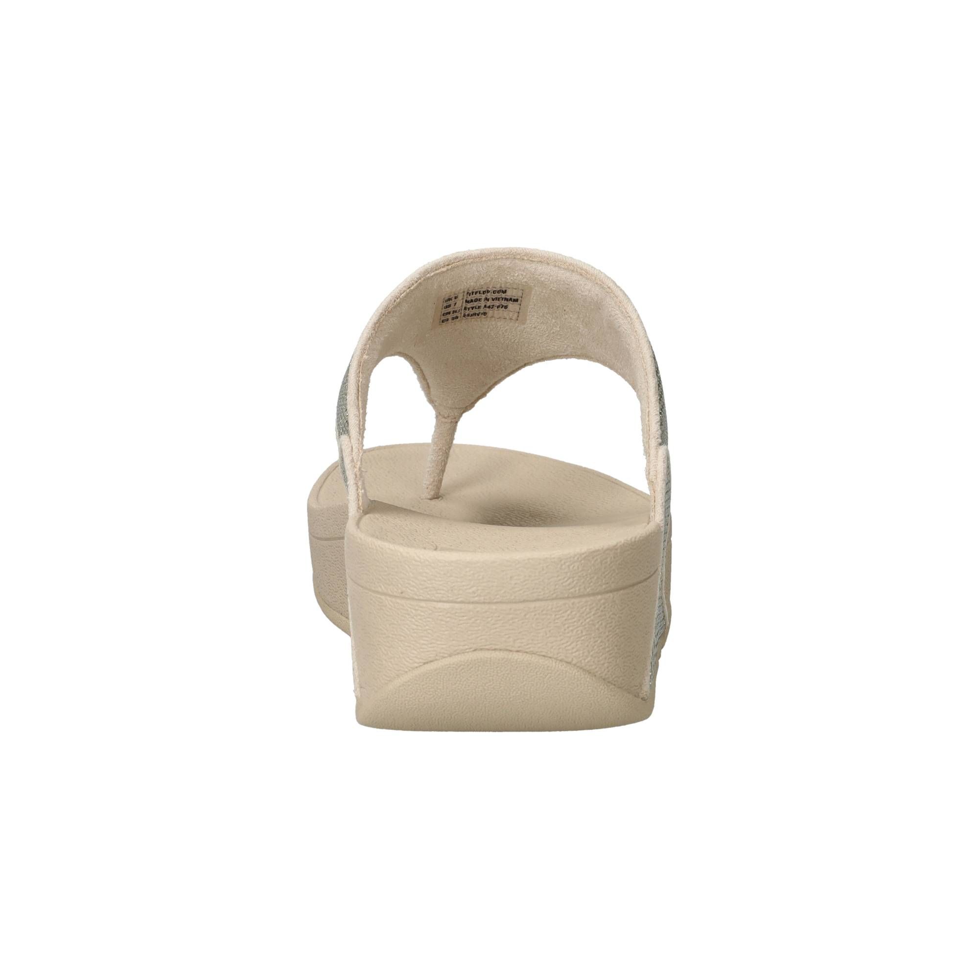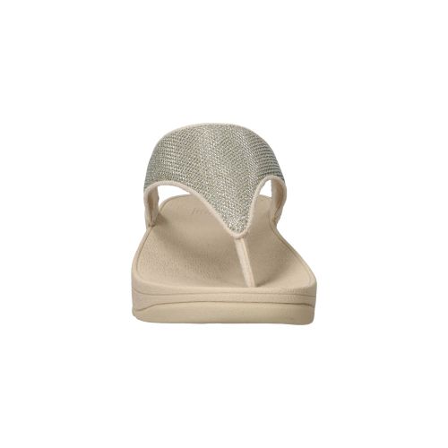 De dames teenslippers van FitFlop, model Lulu, zijn een heerlijke keuze voor de warmere dagen. Deze beige teenslippers met een subtiele gouden glitter geven elke zomerse outfit een vrolijke en stijlvolle touch. Ze zijn niet alleen mooi om te zien, maar ook ontworpen met jouw comfort in gedachten. De lichte demping zorgt ervoor dat elke stap prettig aanvoelt, of je nu een korte wandeling maakt of de hele dag op pad bent. De brede band over de wreef zorgt voor een comfortabele pasvorm en een prettige drukverdeling, waardoor je voeten ontspannen blijven.