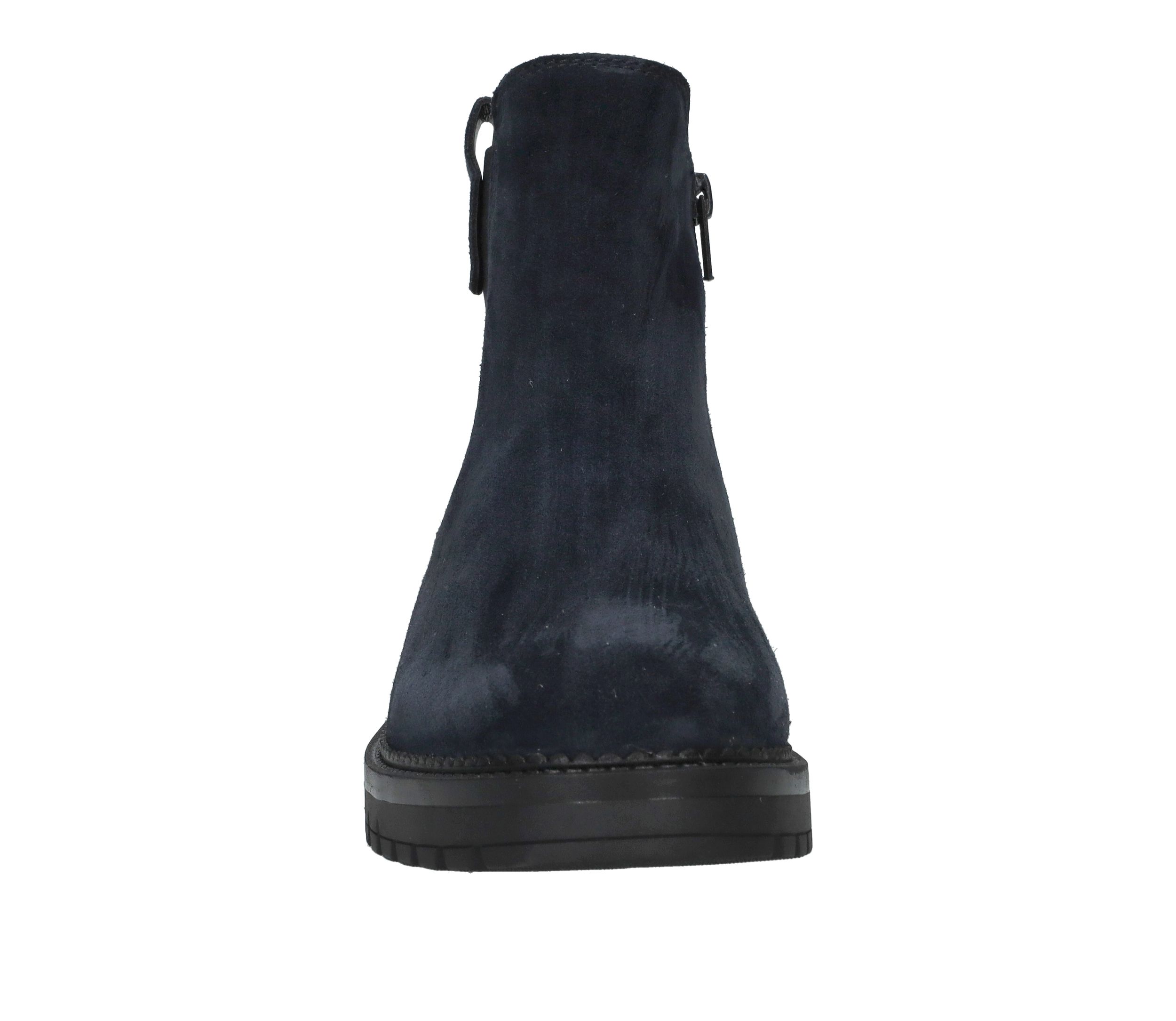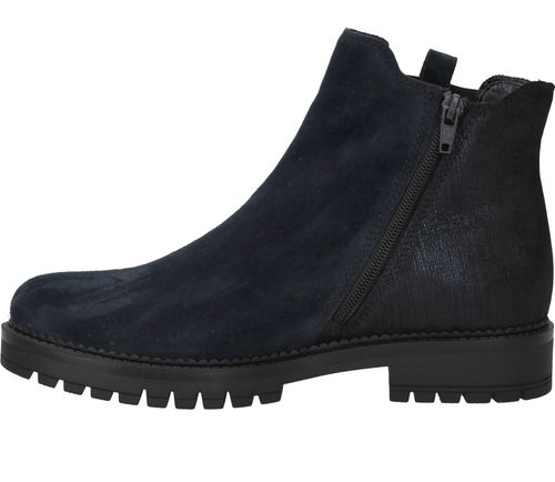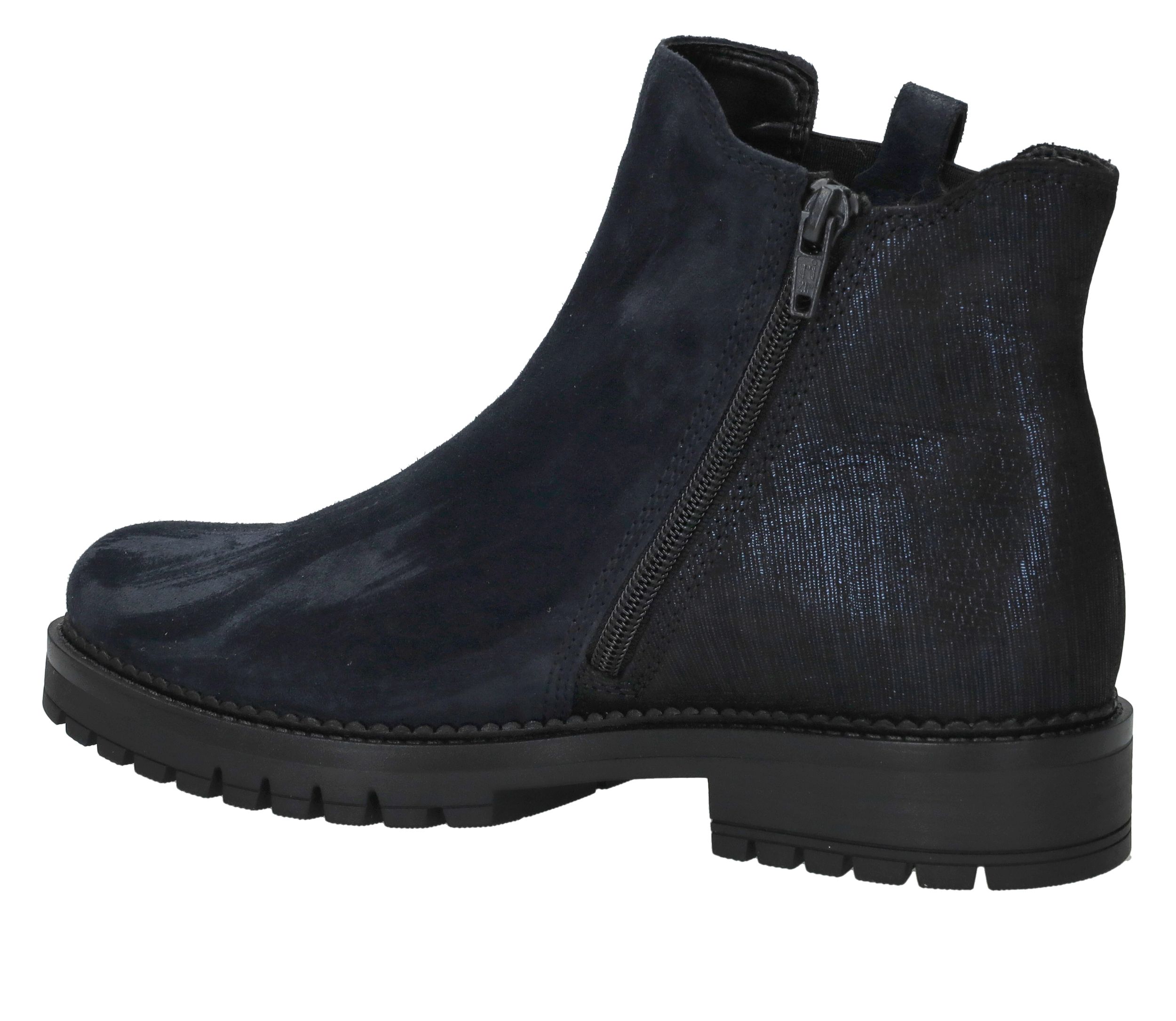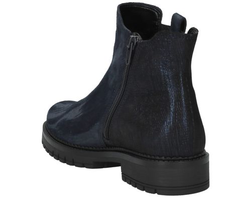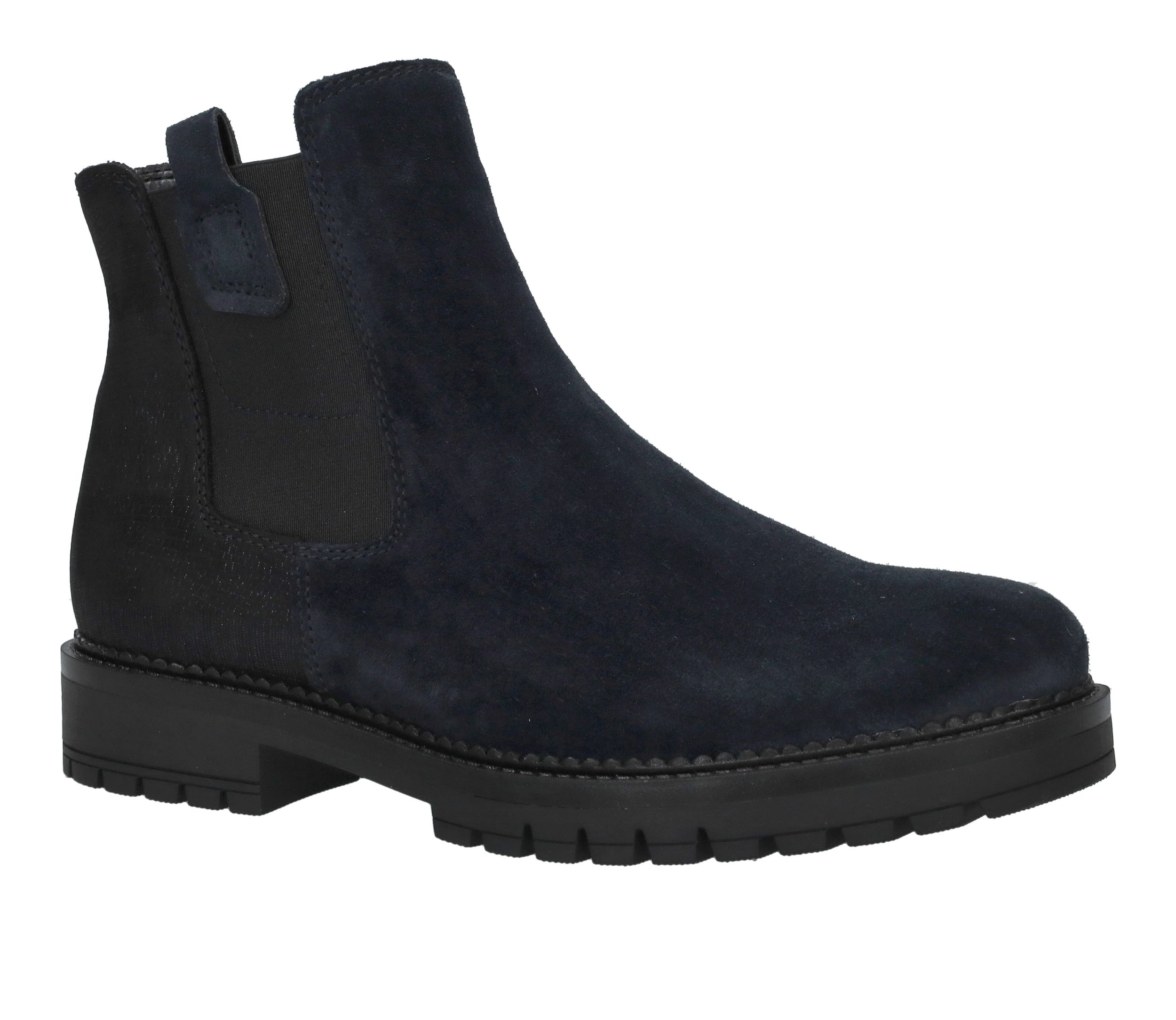 Deze Gabor chelseaboot is zowel stijlvol als stoer. De donkerblauwe damesschoen is helemaal gemaakt van suède en de achterkant heeft een subtiele metallic glans.