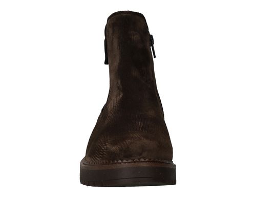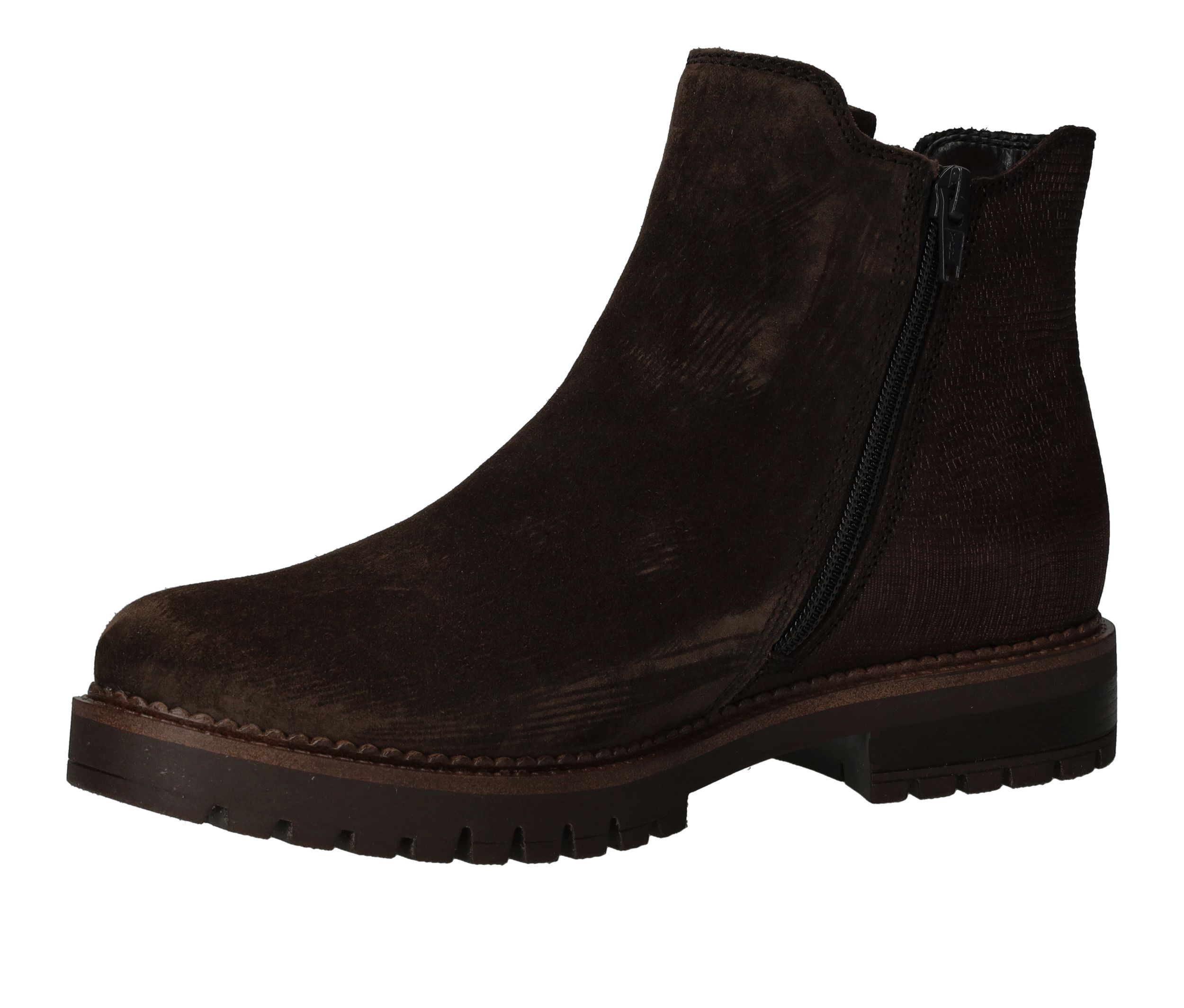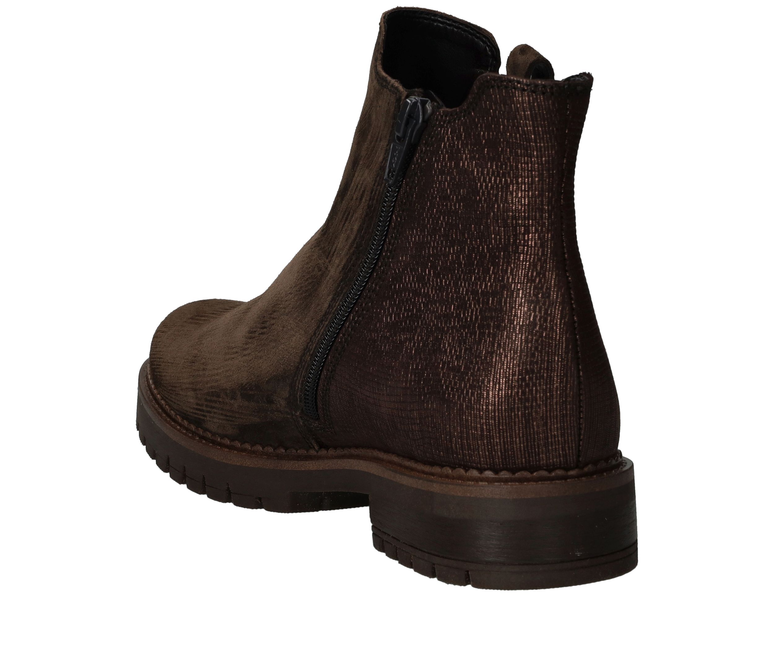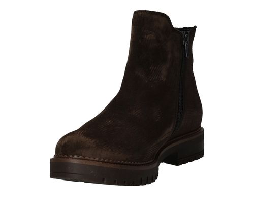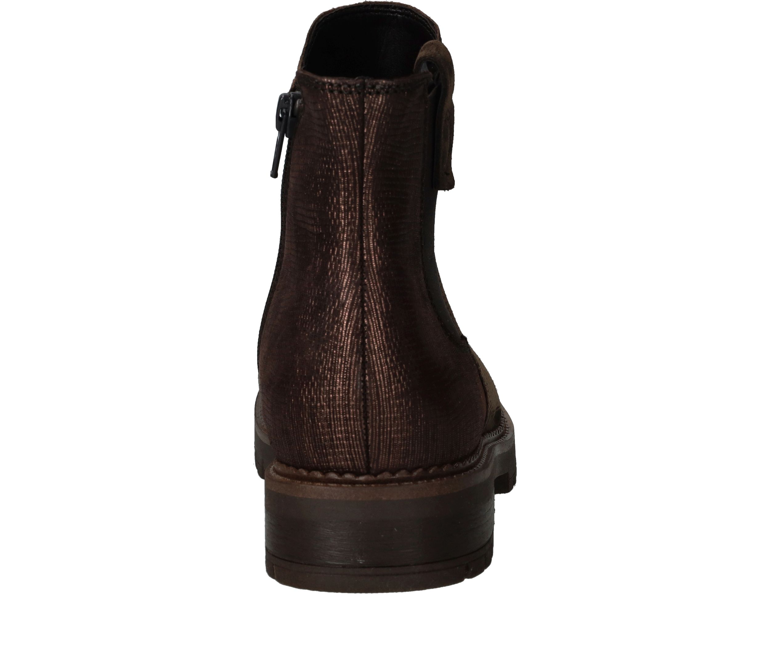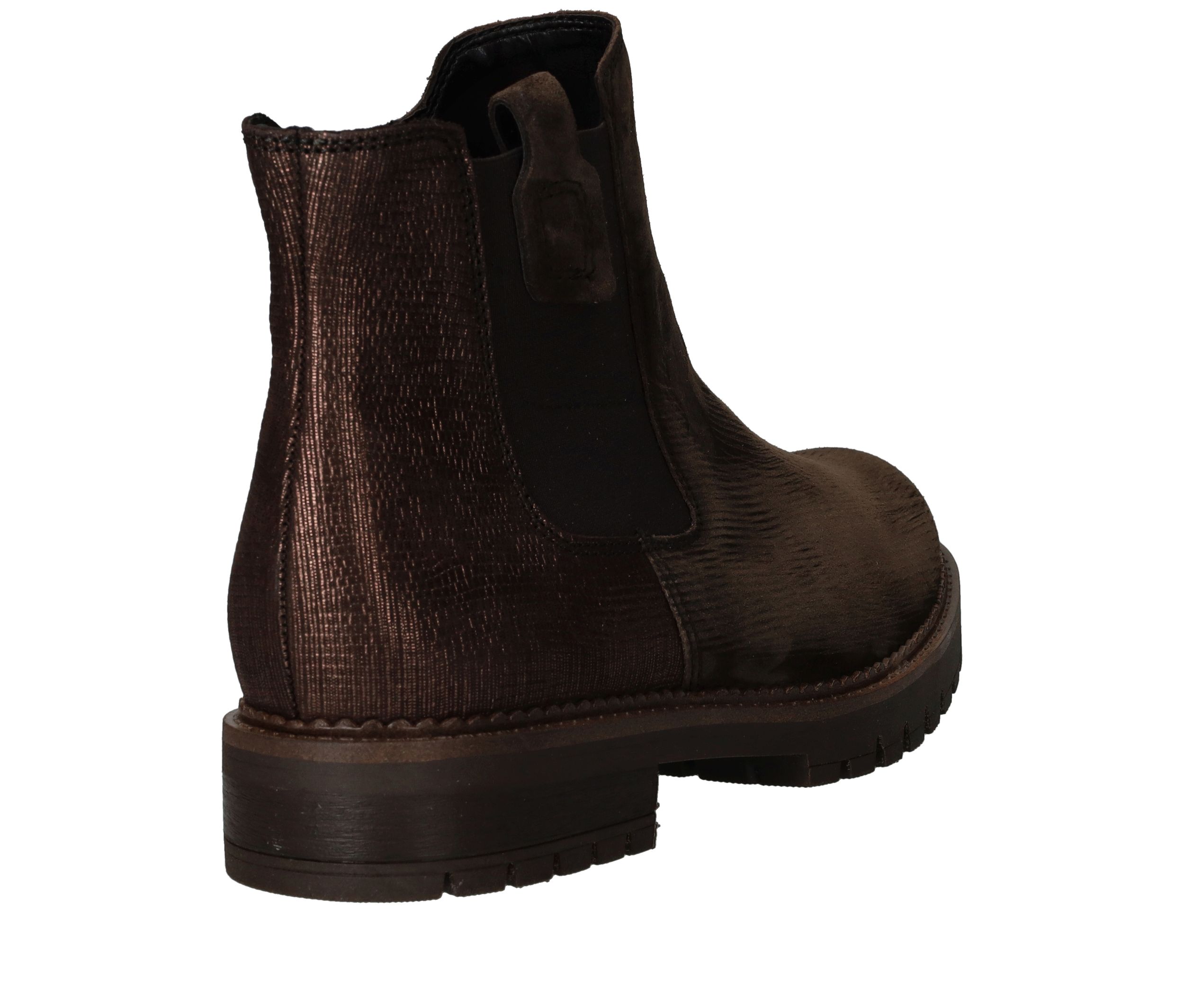 Deze Gabor chelseaboot is zowel stijlvol als stoer. De bruine damesschoen is helemaal gemaakt van suède en de achterkant heeft een subtiele metallic glans.