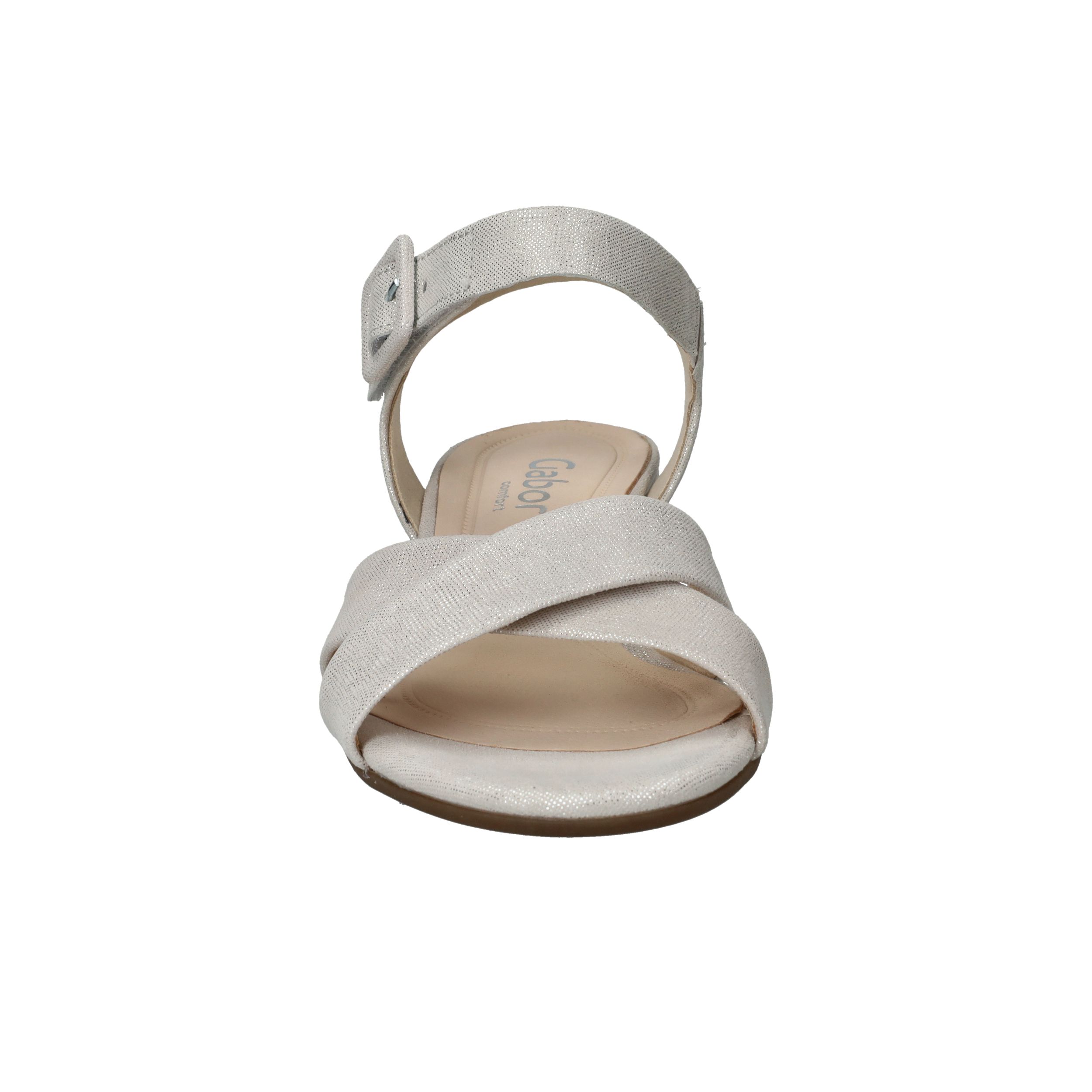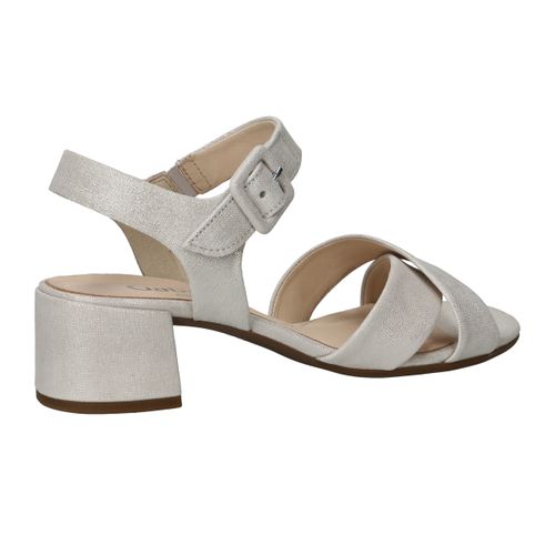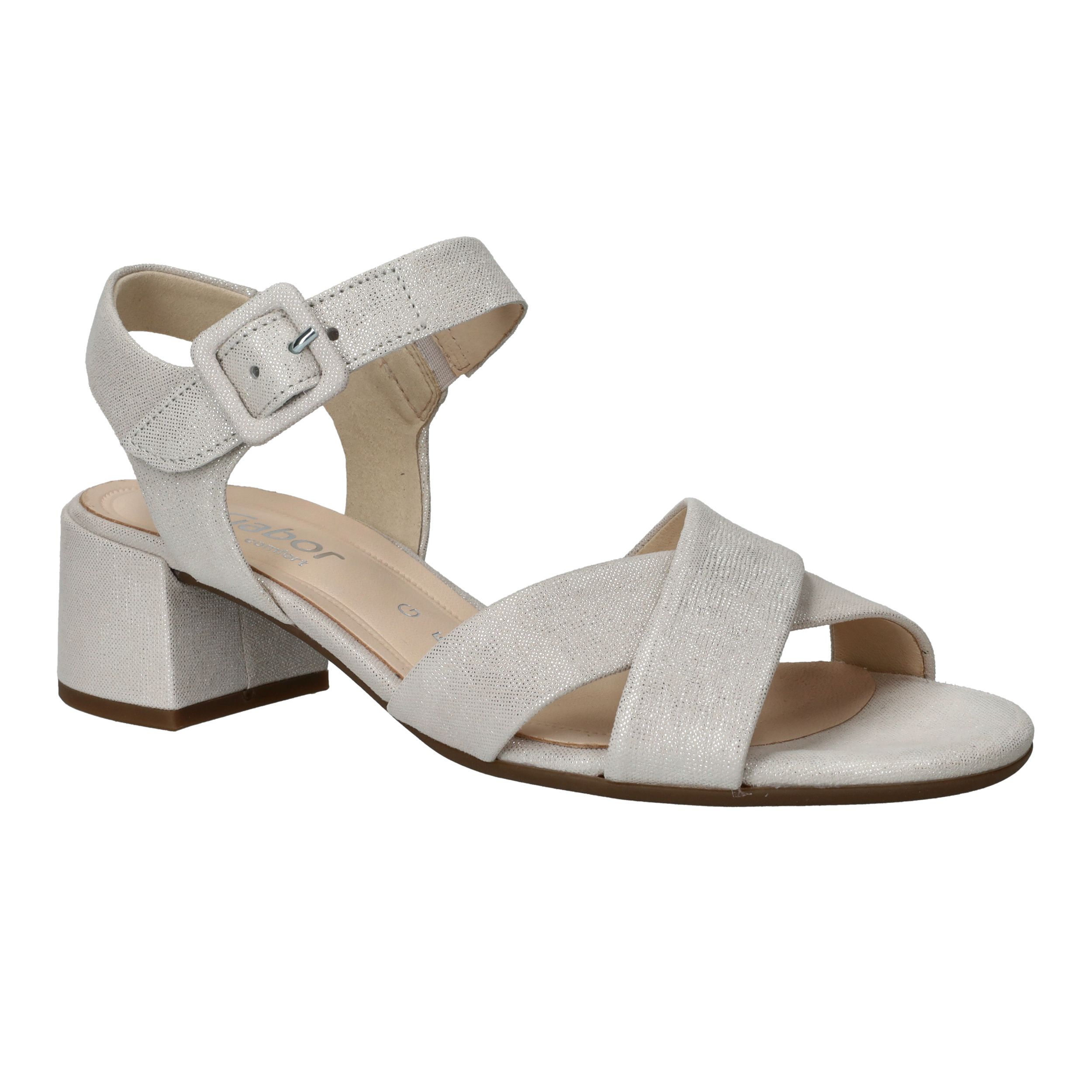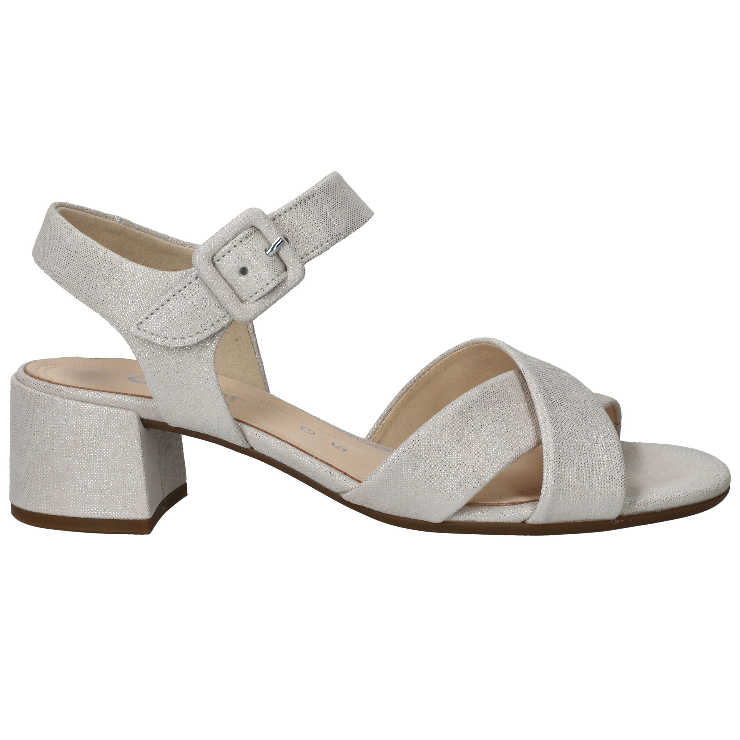 Deze verfijnde sandaal van het merk Gabor is een schitterende keuze voor zomerse gelegenheden en feestelijke momenten. Het model is uitgevoerd in zacht suède met een subtiele zilveren glans, waardoor de sandaal direct een chique uitstraling krijgt. De comfortabele blokhak zorgt ervoor dat je moeiteloos de hele dag of avond op deze schoenen kunt lopen. Ideaal voor bruiloften, tuinfeesten of een stijlvolle avond uit!