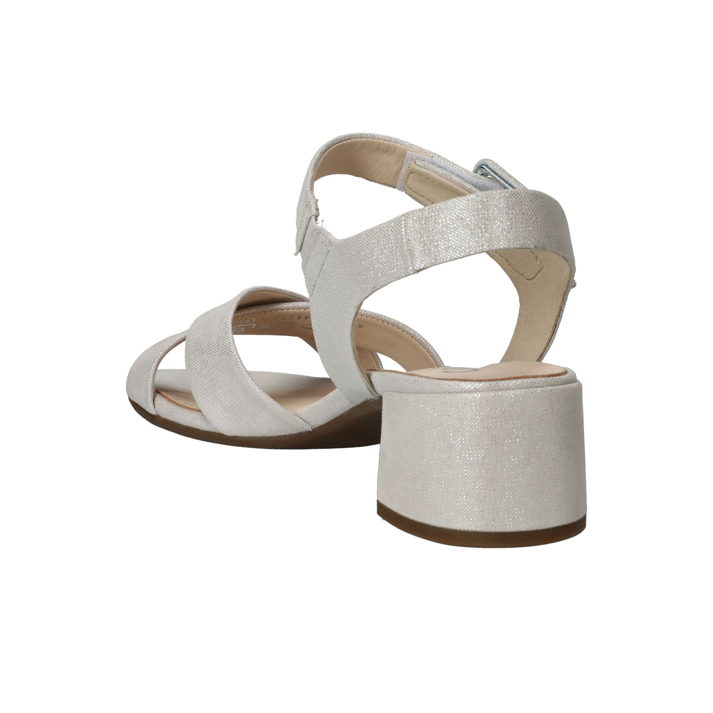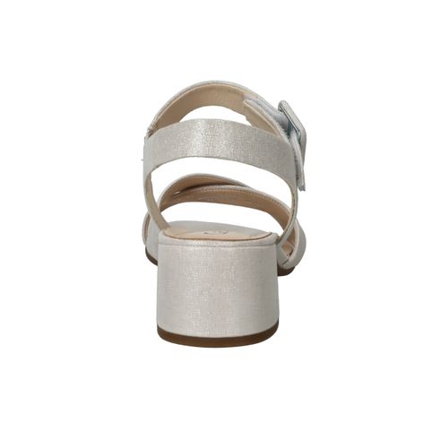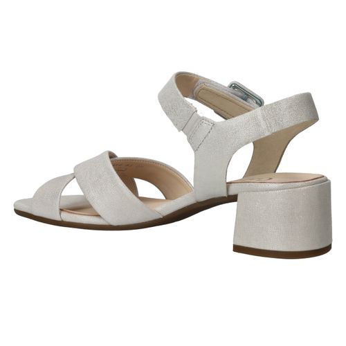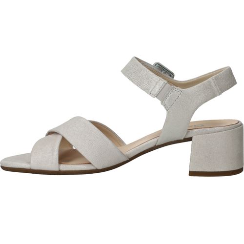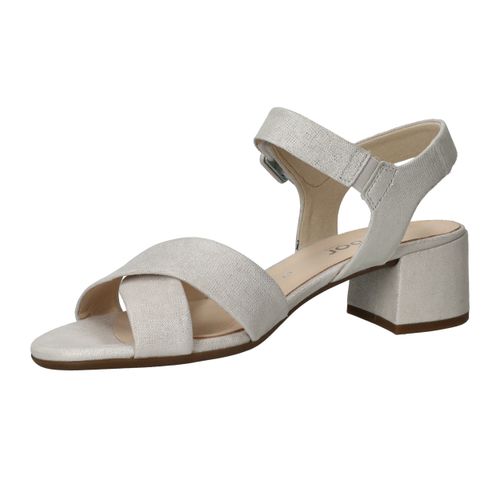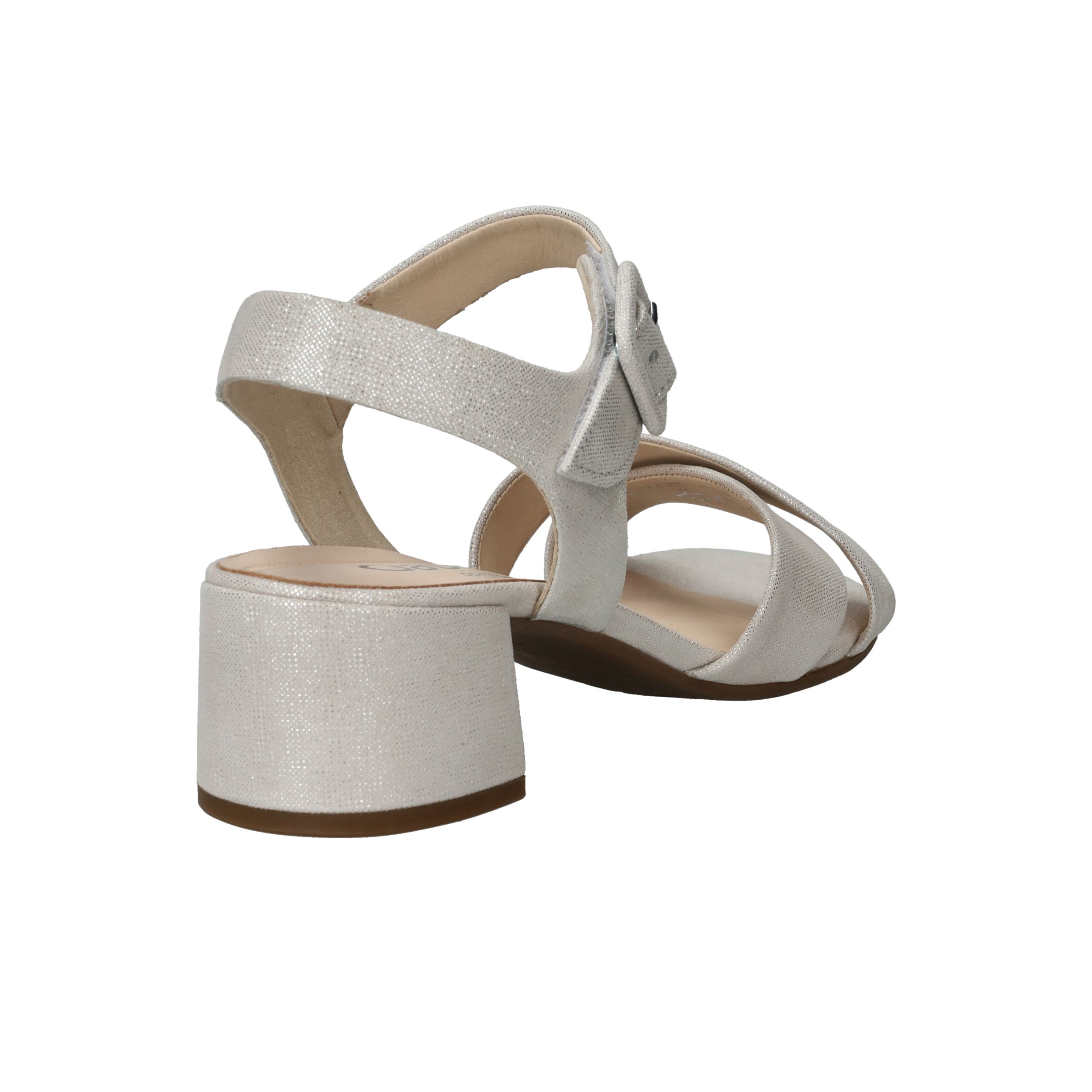 Deze verfijnde sandaal van het merk Gabor is een schitterende keuze voor zomerse gelegenheden en feestelijke momenten. Het model is uitgevoerd in zacht suède met een subtiele zilveren glans, waardoor de sandaal direct een chique uitstraling krijgt. De comfortabele blokhak zorgt ervoor dat je moeiteloos de hele dag of avond op deze schoenen kunt lopen. Ideaal voor bruiloften, tuinfeesten of een stijlvolle avond uit!