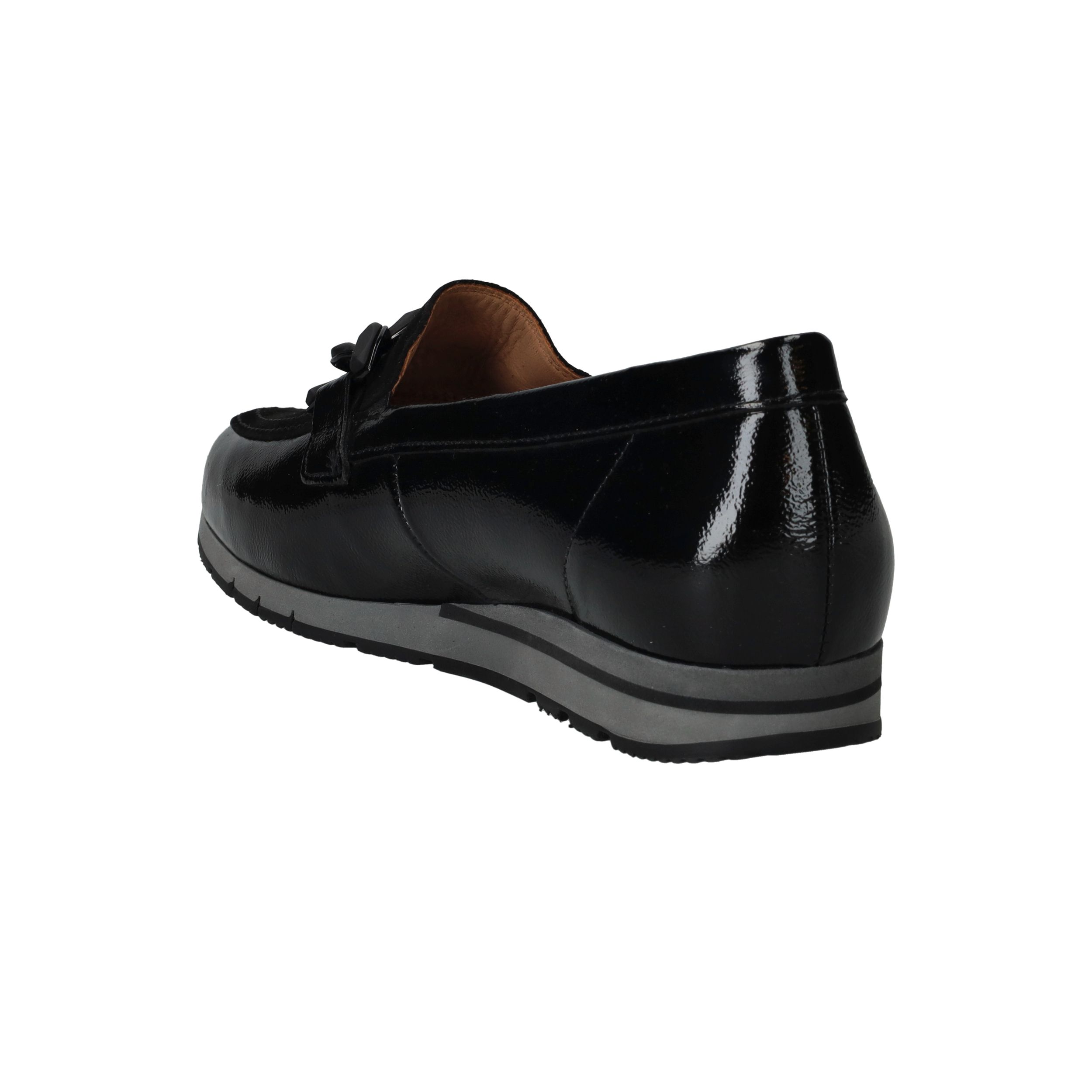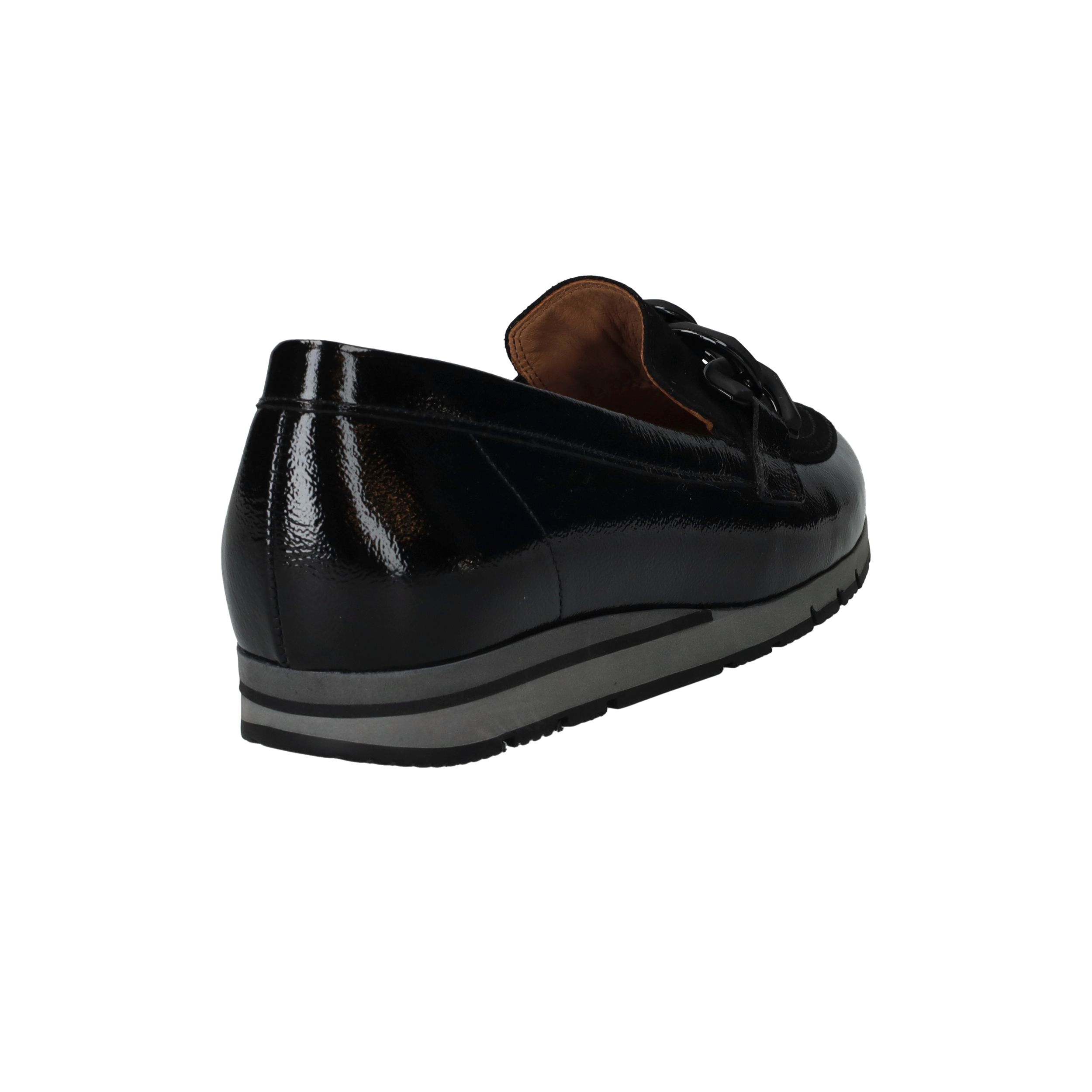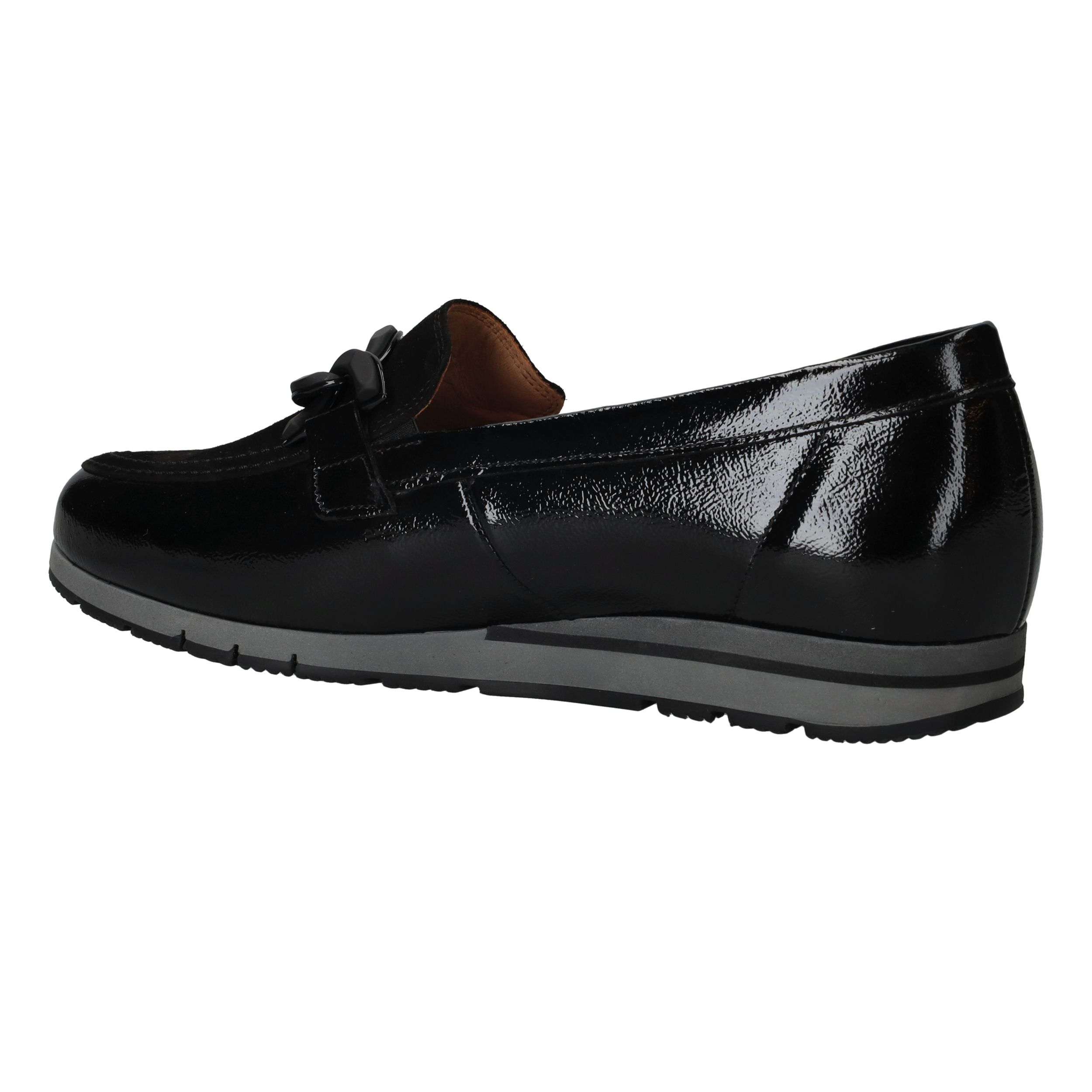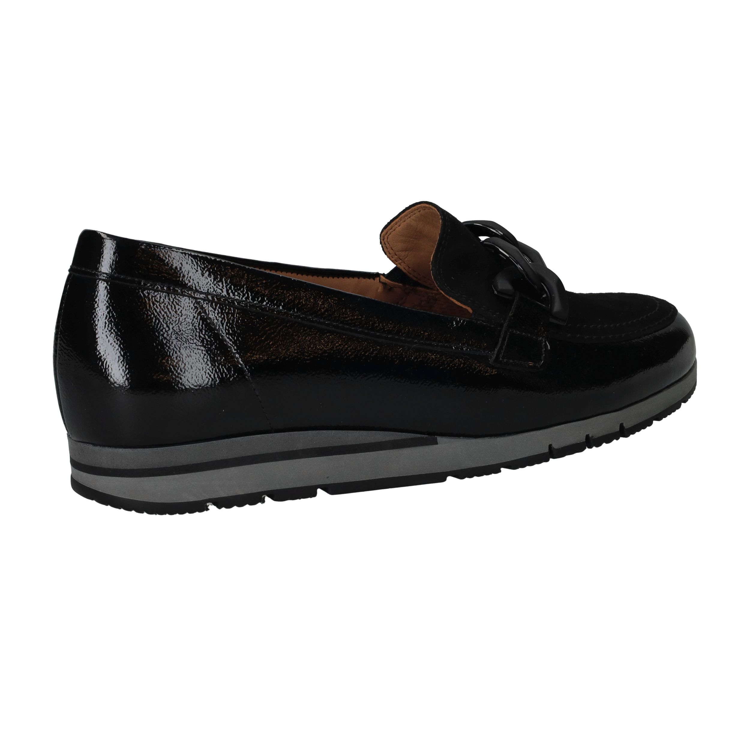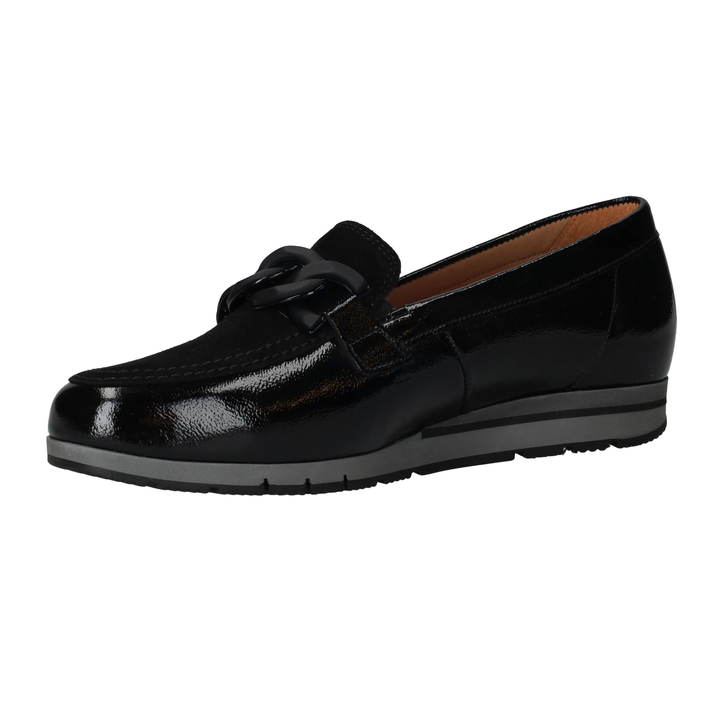 Deze chique dames instappers van Gabor zijn een perfecte mix van elegantie en comfort. Het zwarte lakleer in combinatie met suède details zorgt voor een rijke, verfijnde uitstraling. De sportieve zool en normale voetbreedte G maken dit model geschikt voor dagelijks gebruik met een stijlvolle twist.