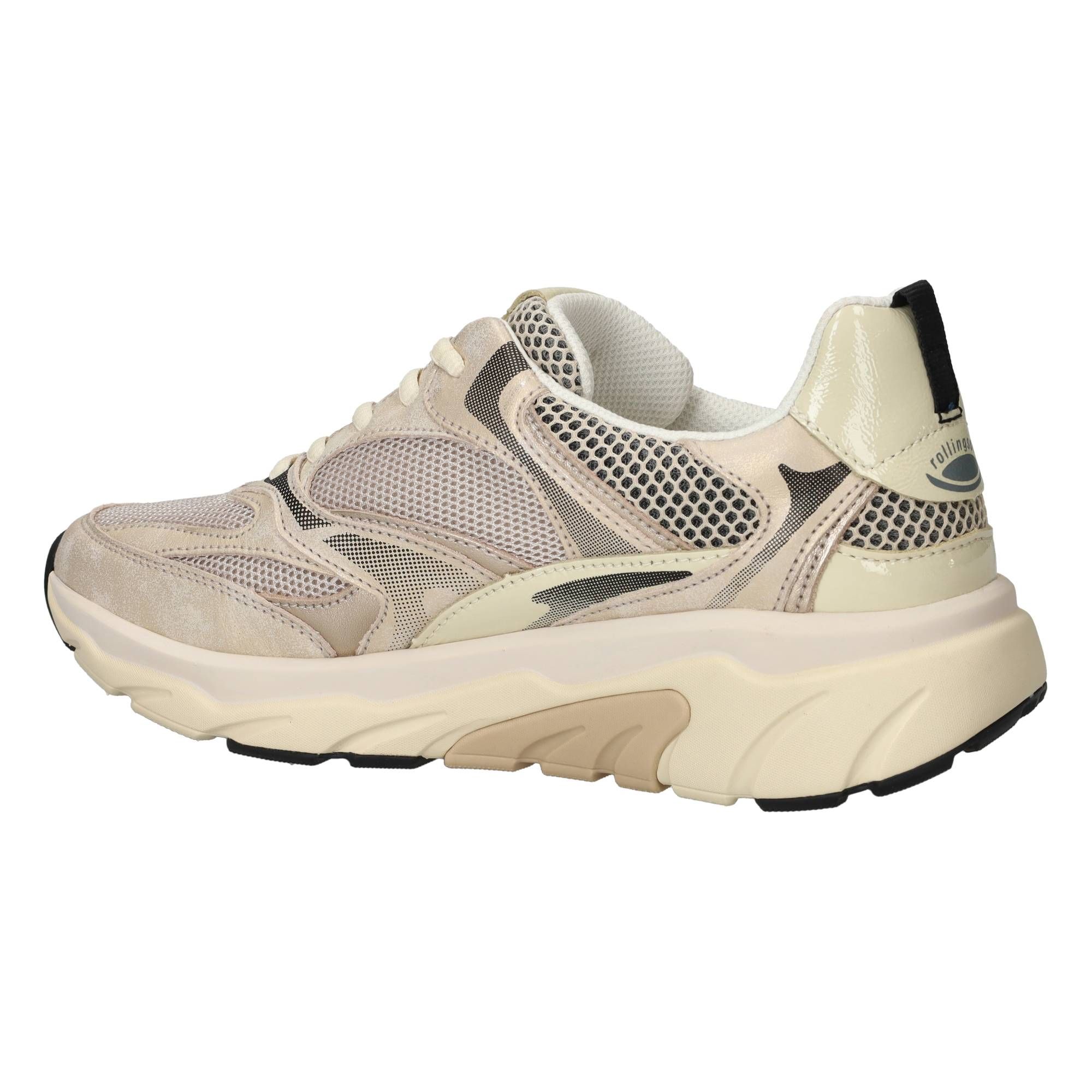 Deze Gabor Rollingsoft comfortsneakers in een mooie beige kleur zijn een echte toevoeging voor dames die waarde hechten aan zowel stijl als comfort. De metallic en textiele details geven de schoen een eigentijdse uitstraling, terwijl de zorgvuldige afwerking zorgt voor een prettig loopgevoel. Het ontwerp van Gabor Rollingsoft staat bekend om de unieke zool die de natuurlijke afwikkeling van de voet stimuleert, wat je merkt aan een soepele beweging bij elke stap. Dit draagt bij aan een prettige drukverdeling over de hele voet, zodat je minder snel vermoeid raakt.