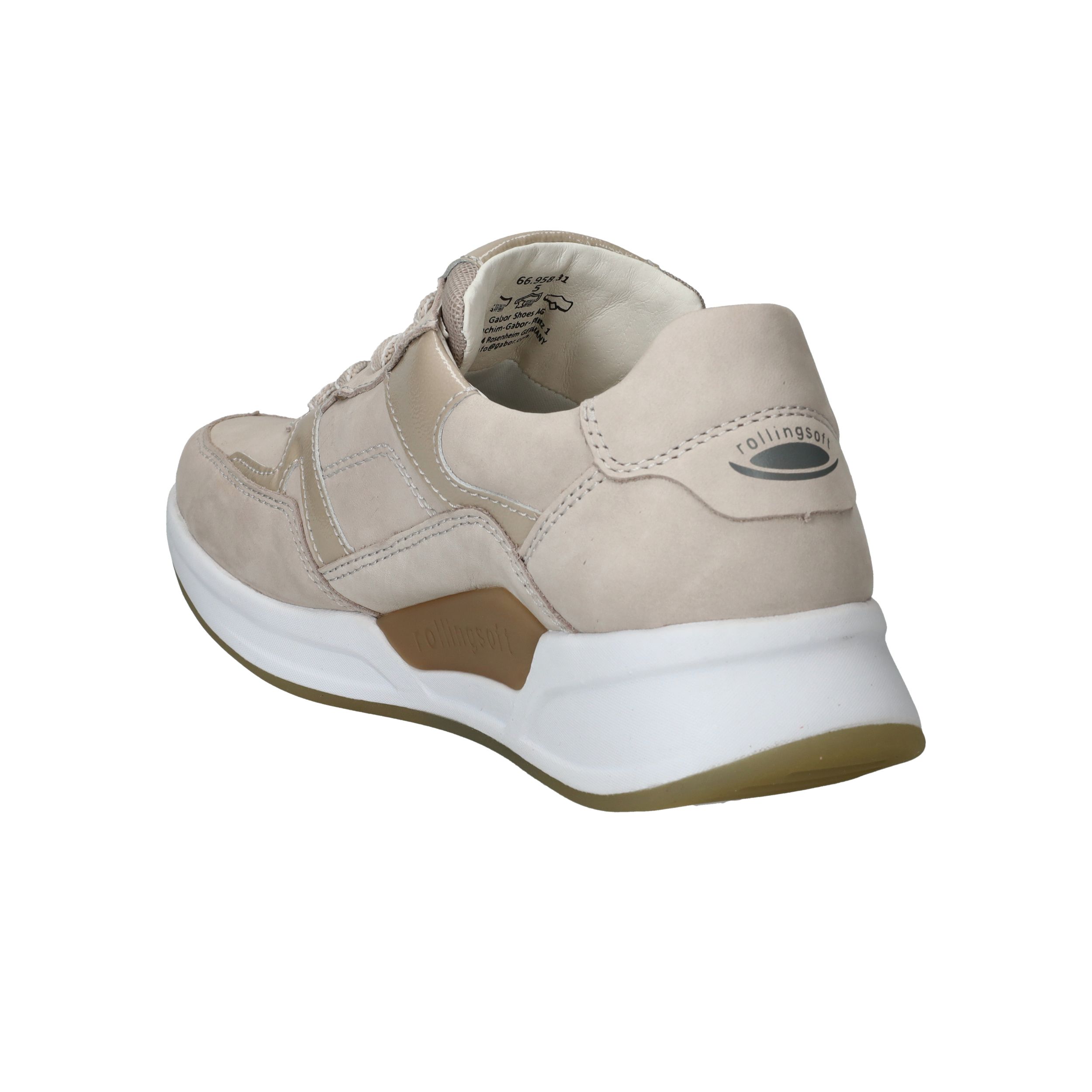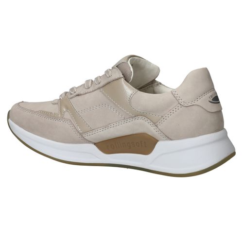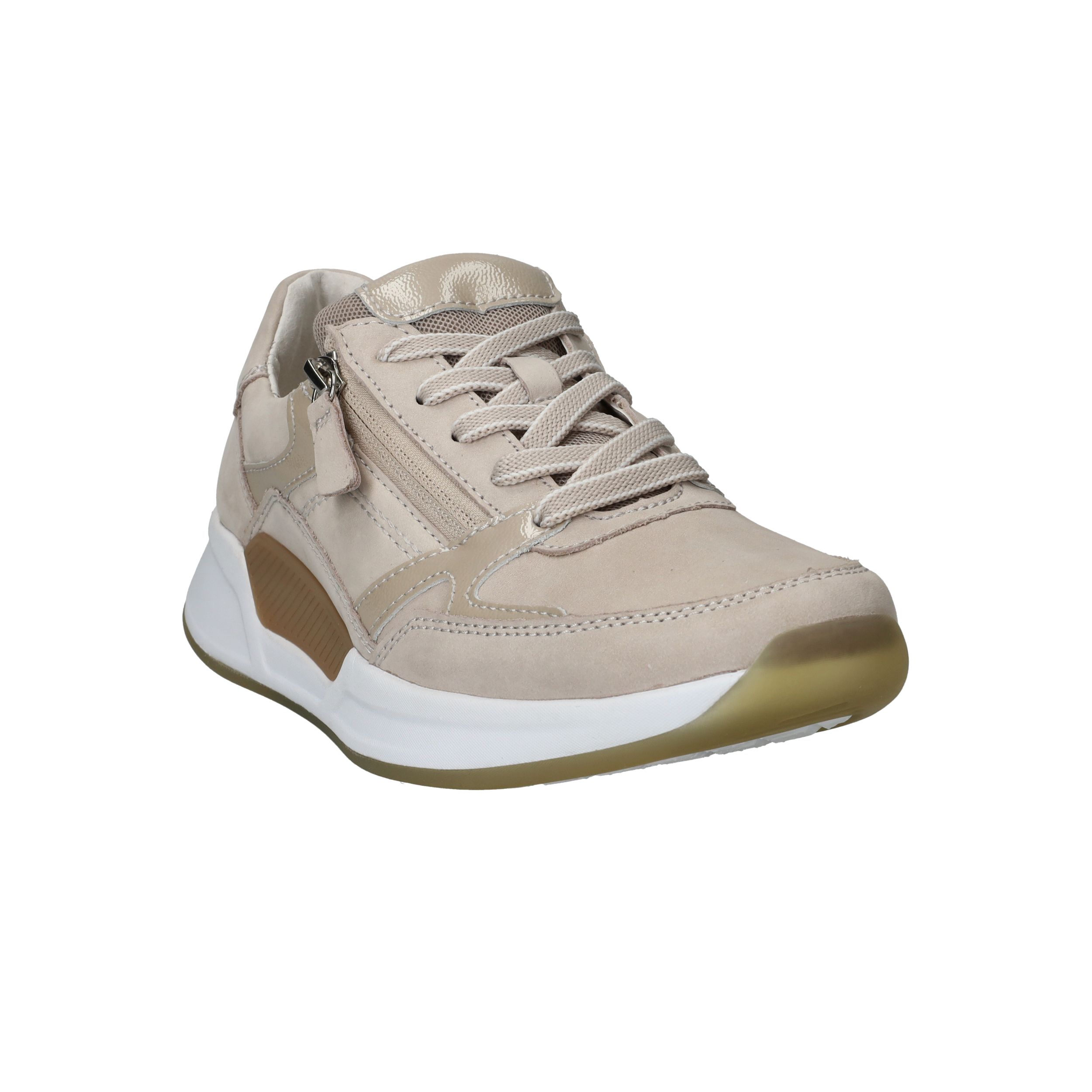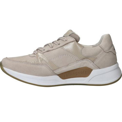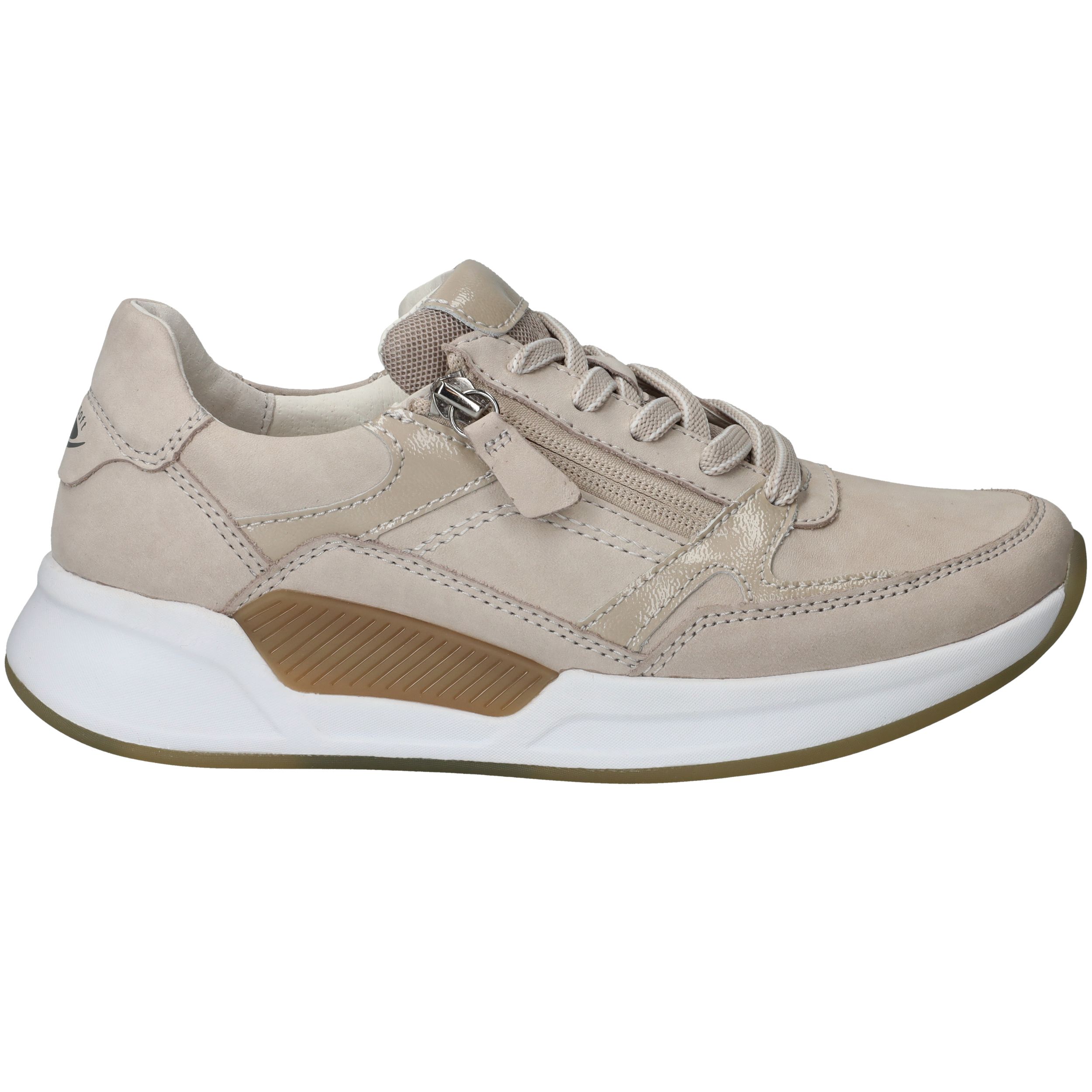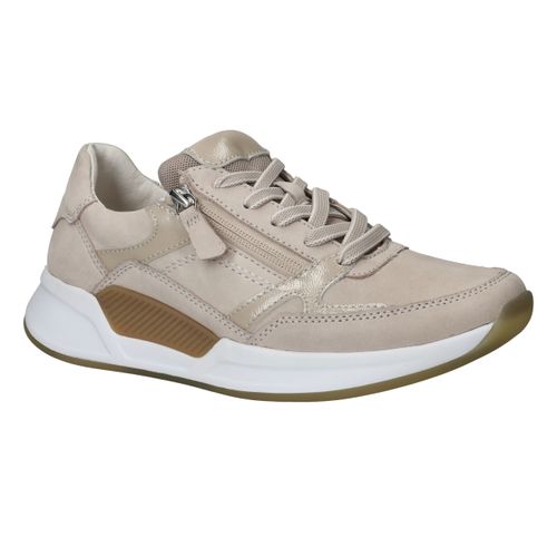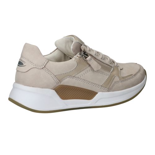 Comfortabele Gabor Rollingsoft sneaker in mooie beige tinten. Door de veter- en ritssluiting stap je makkelijk in de schoen.