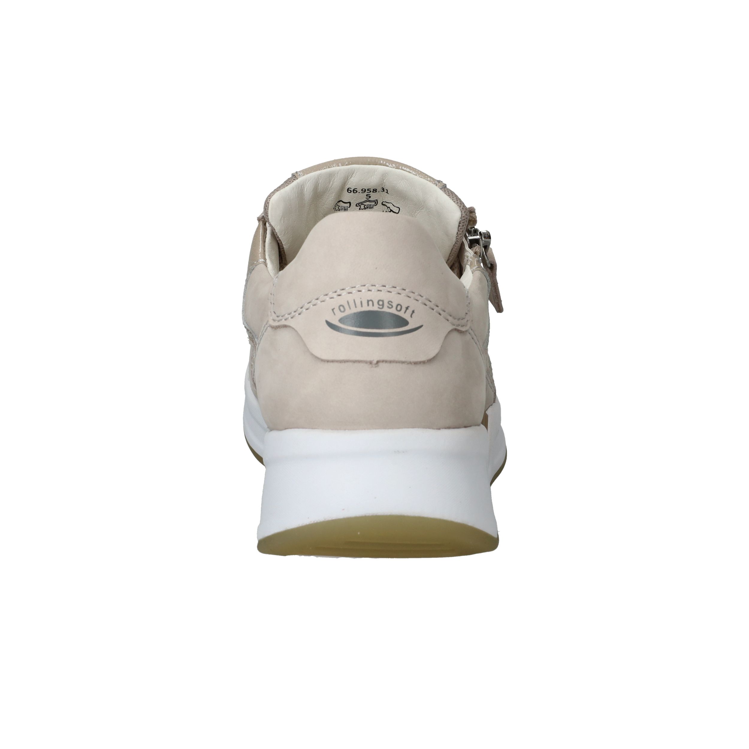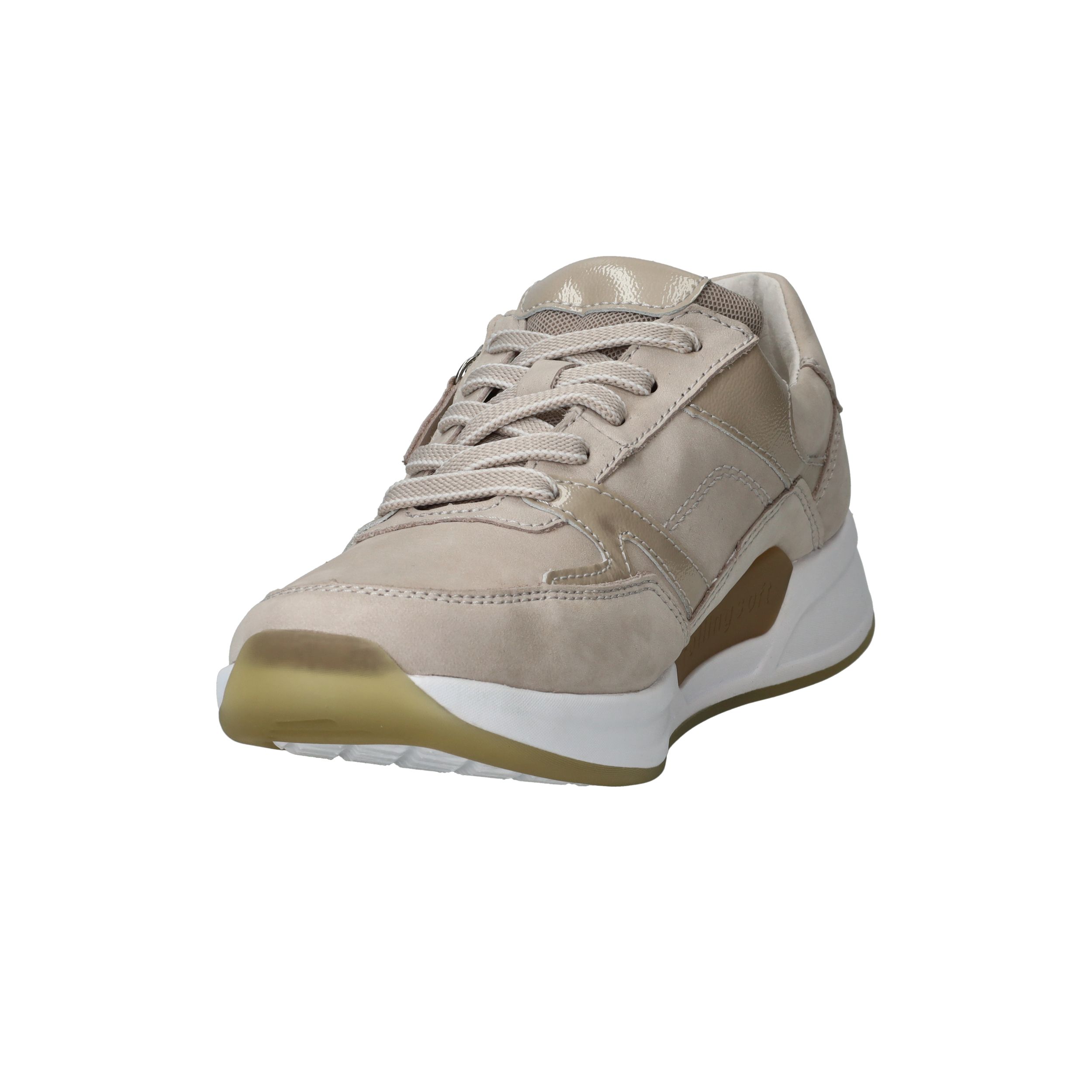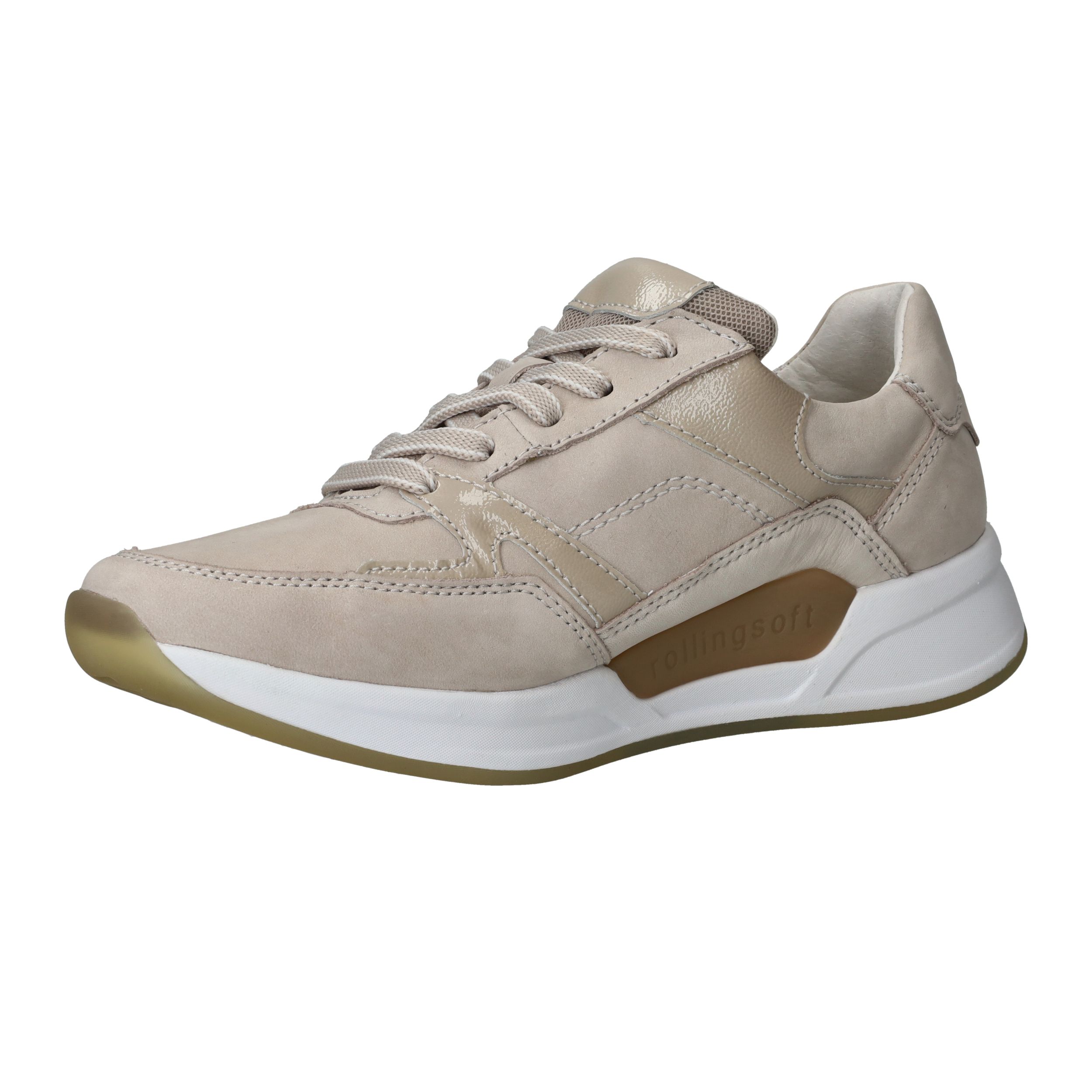Comfortabele Gabor Rollingsoft sneaker in mooie beige tinten. Door de veter- en ritssluiting stap je makkelijk in de schoen.