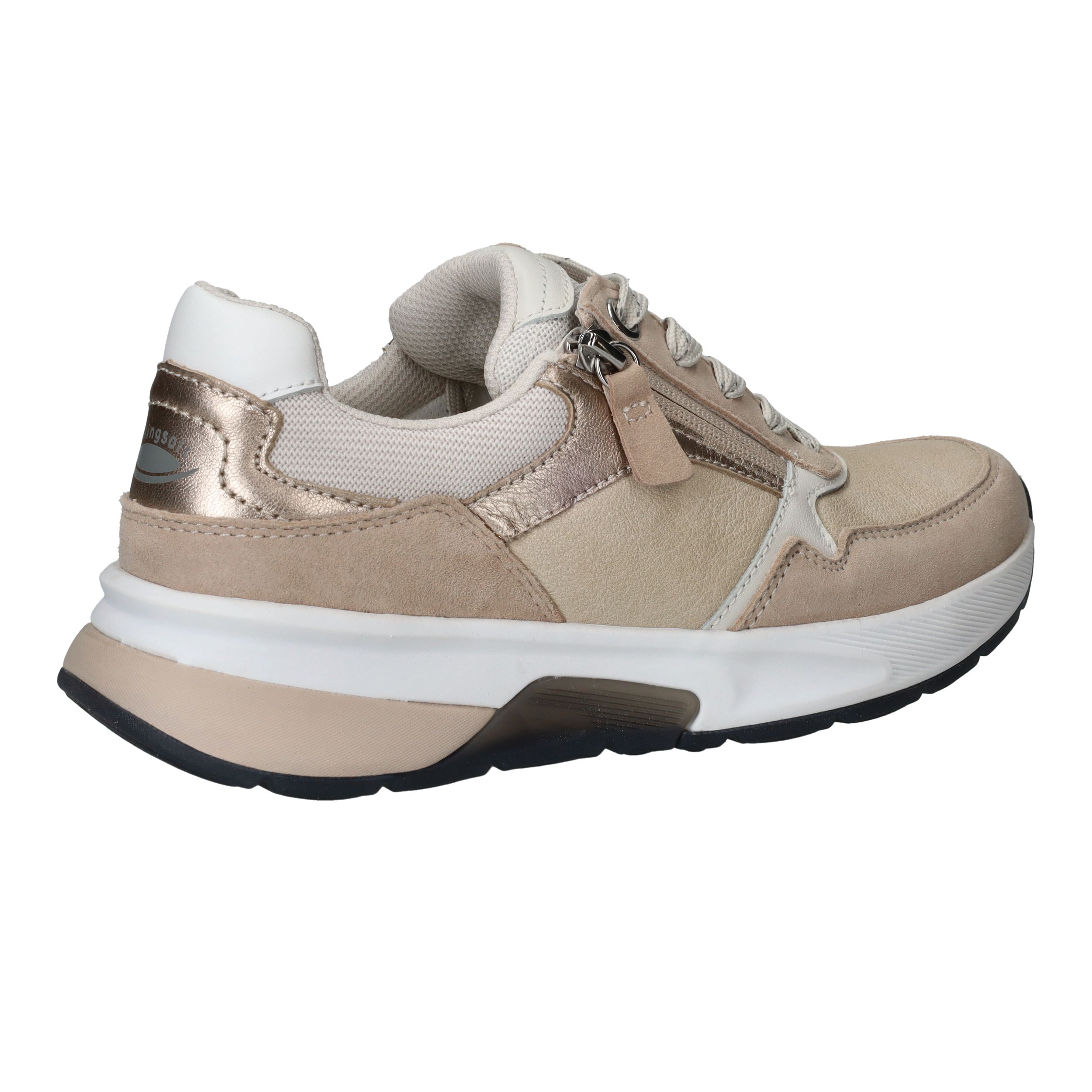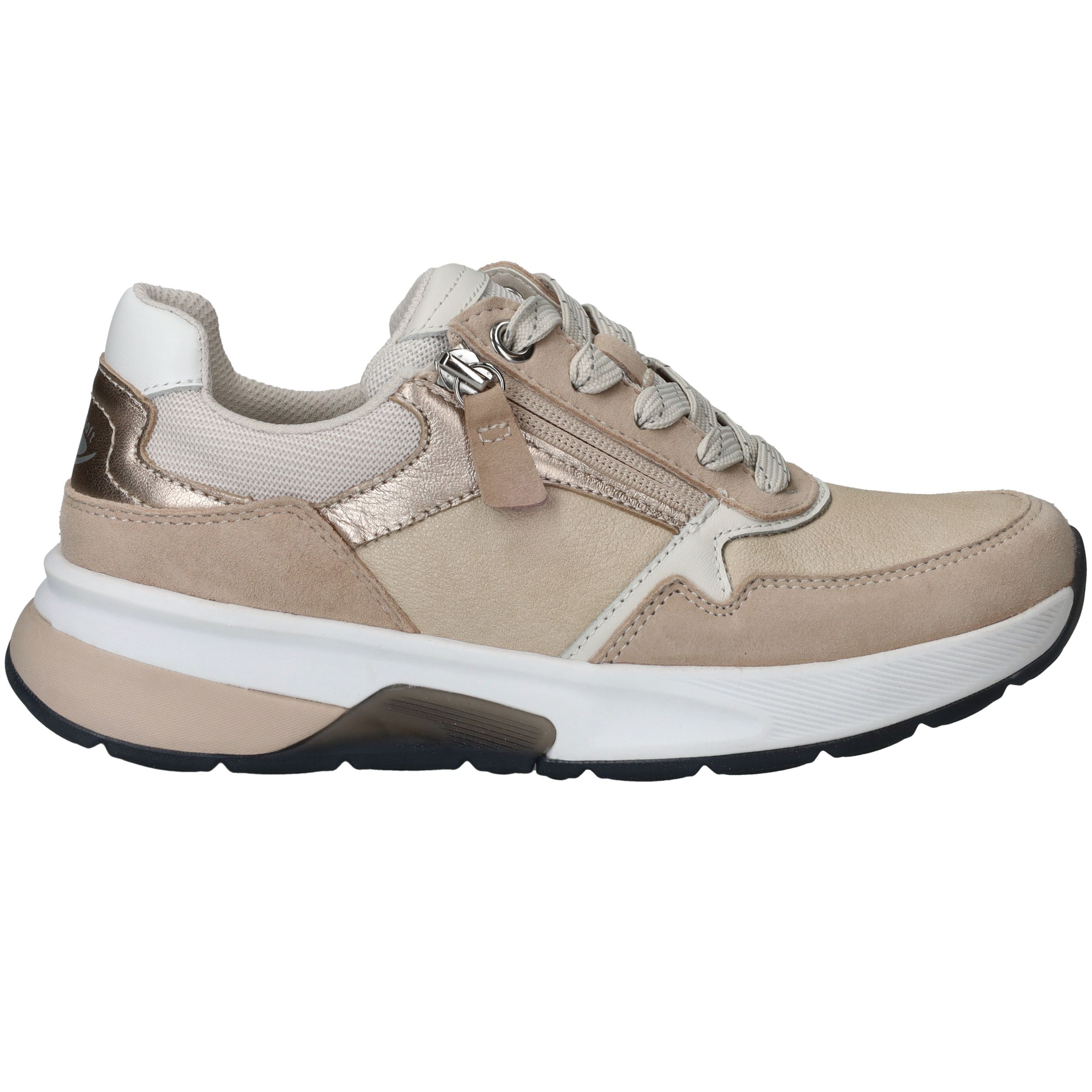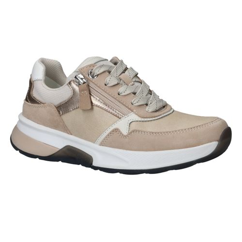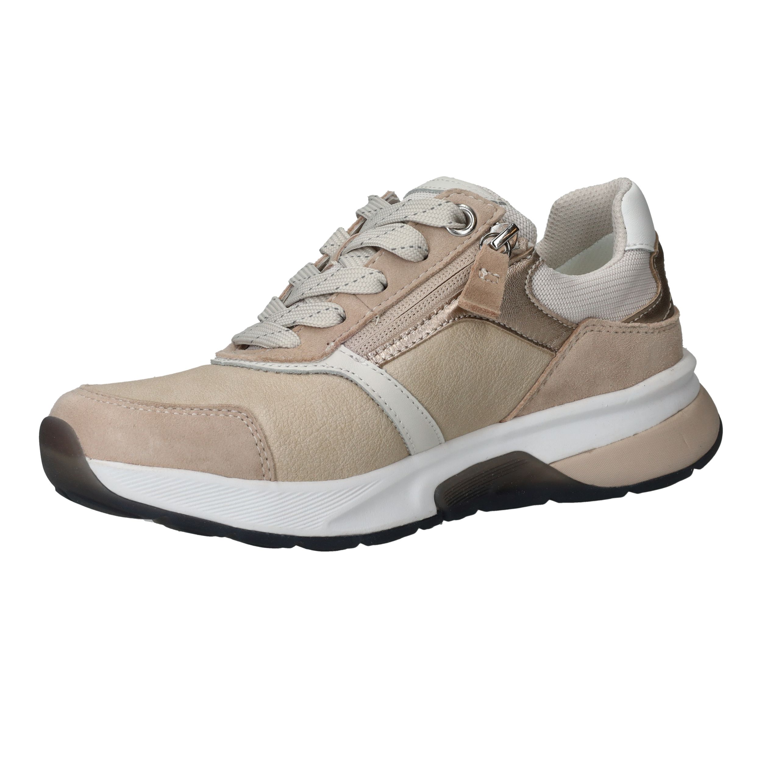 Deze comfortabele beige Gabor Rollingsoft sneaker mag niet ontbreken in je schoenencollectie! De Rolling Soft techniek zorgt voor optimale afwikkeling van de voet en betere stabiliteit en de veter- en ritssluiting zorgt voor een makkelijke instap.