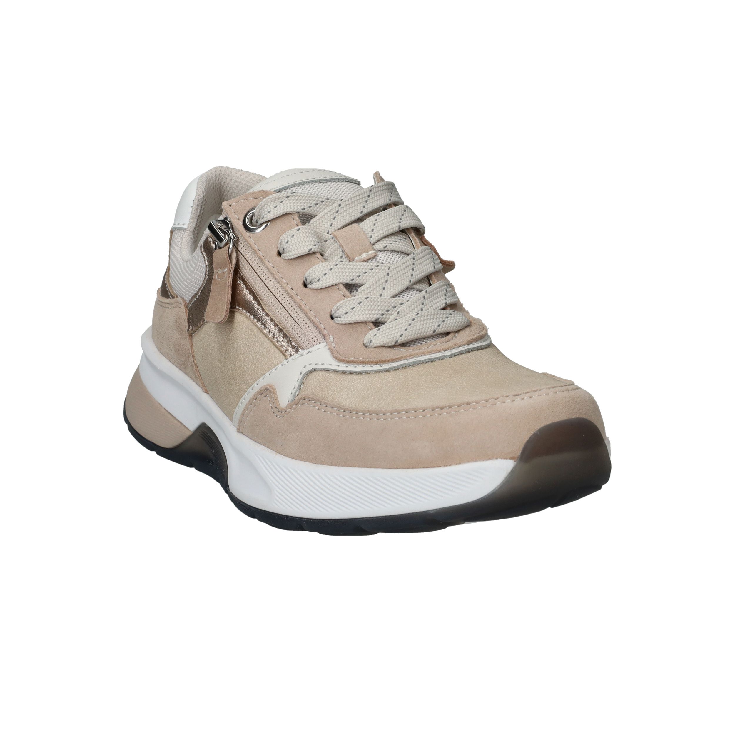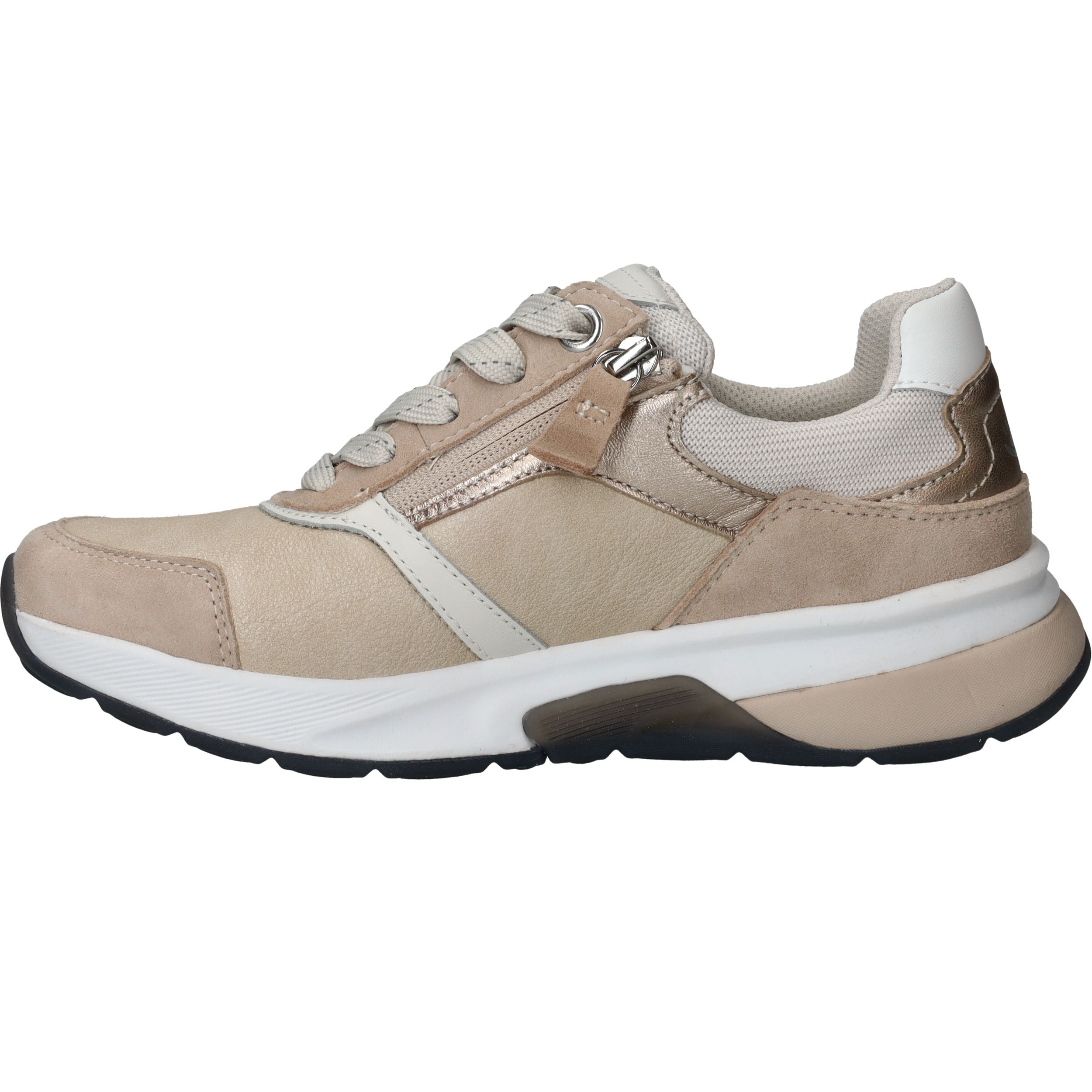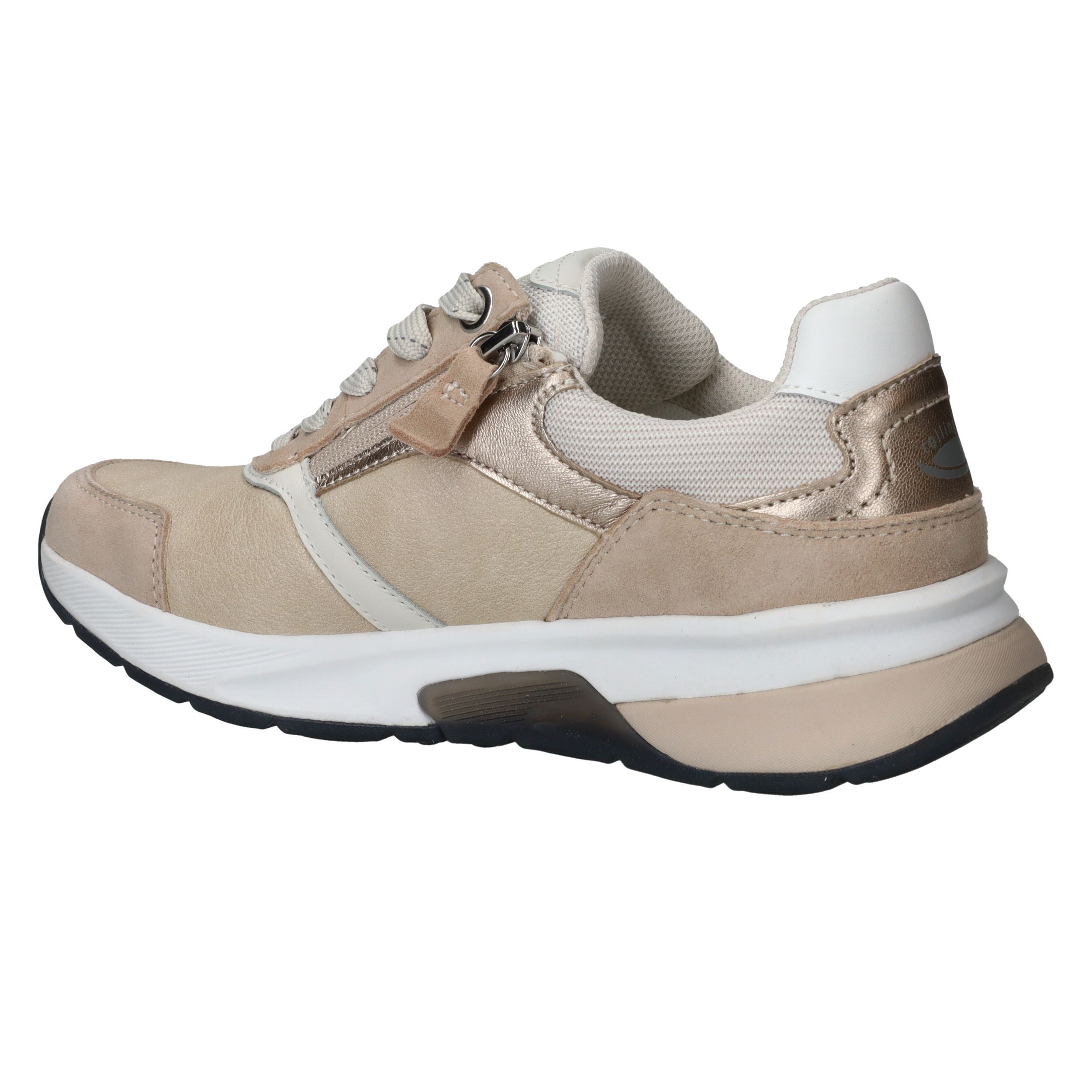 Deze comfortabele beige Gabor Rollingsoft sneaker mag niet ontbreken in je schoenencollectie! De Rolling Soft techniek zorgt voor optimale afwikkeling van de voet en betere stabiliteit en de veter- en ritssluiting zorgt voor een makkelijke instap.